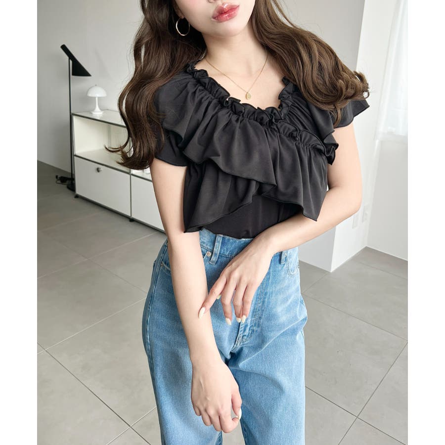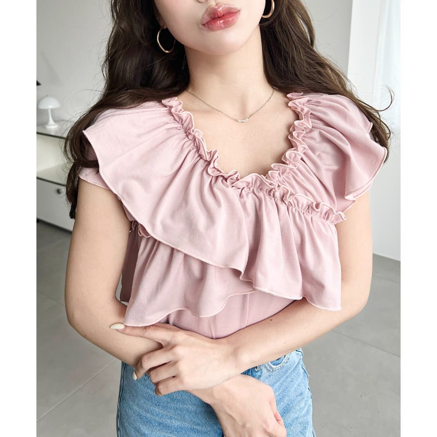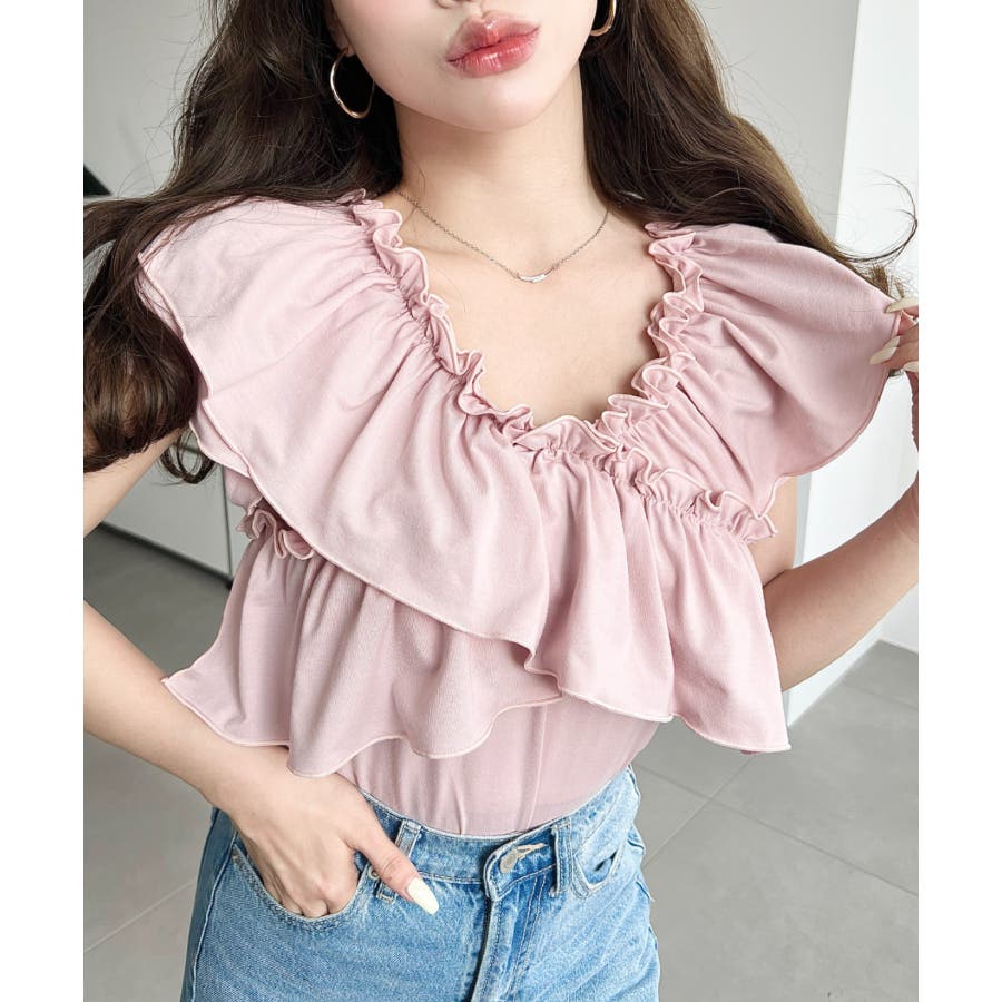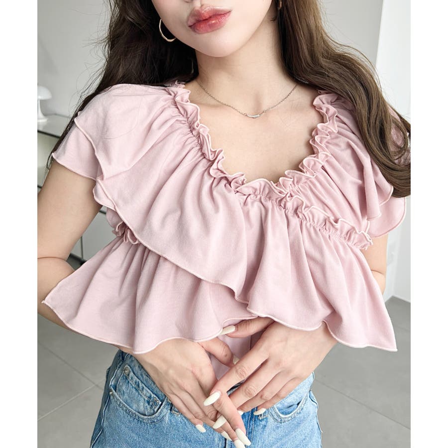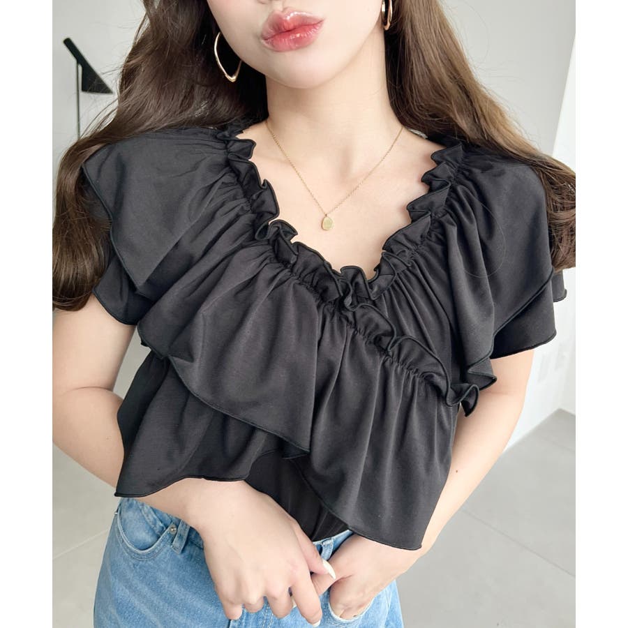 全体的に大きめのフリルがあしらわれていて、1枚でしっかり映えるアイテムです!