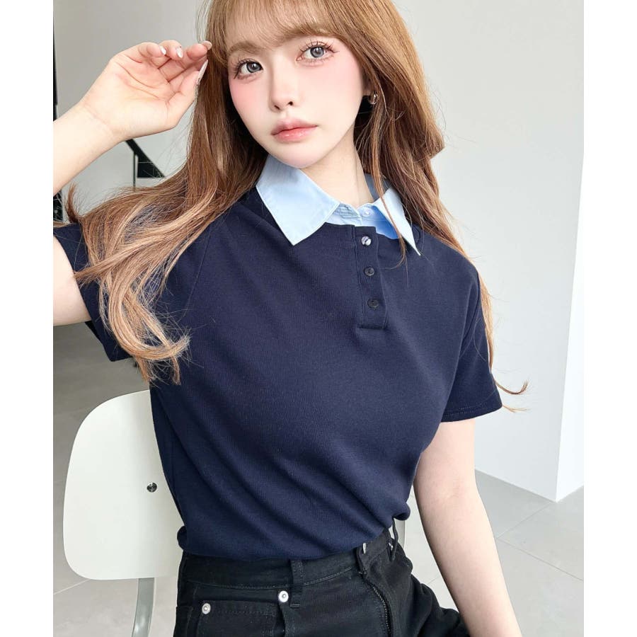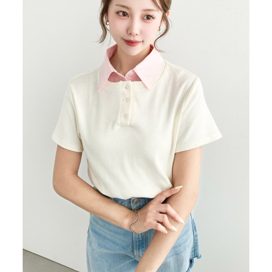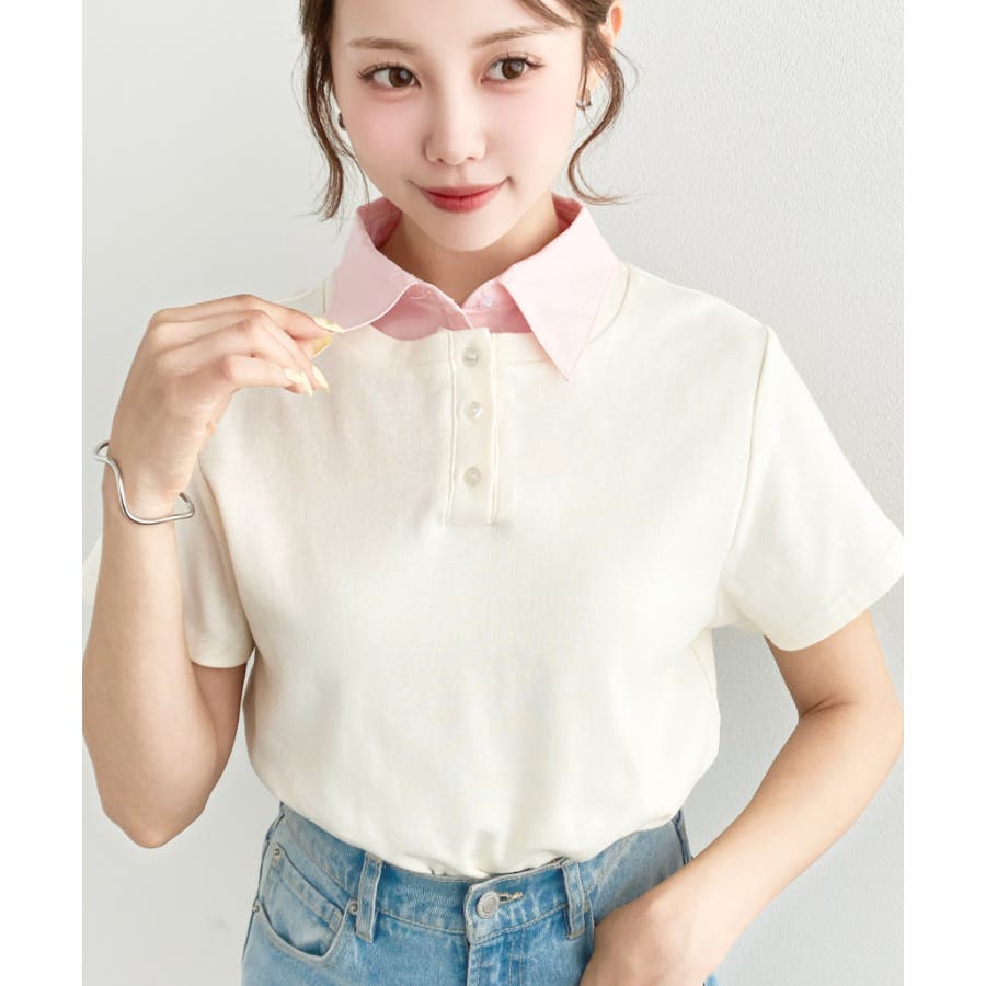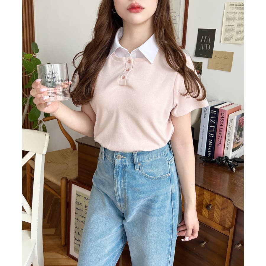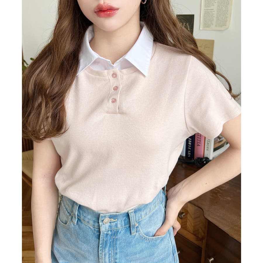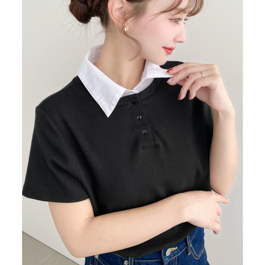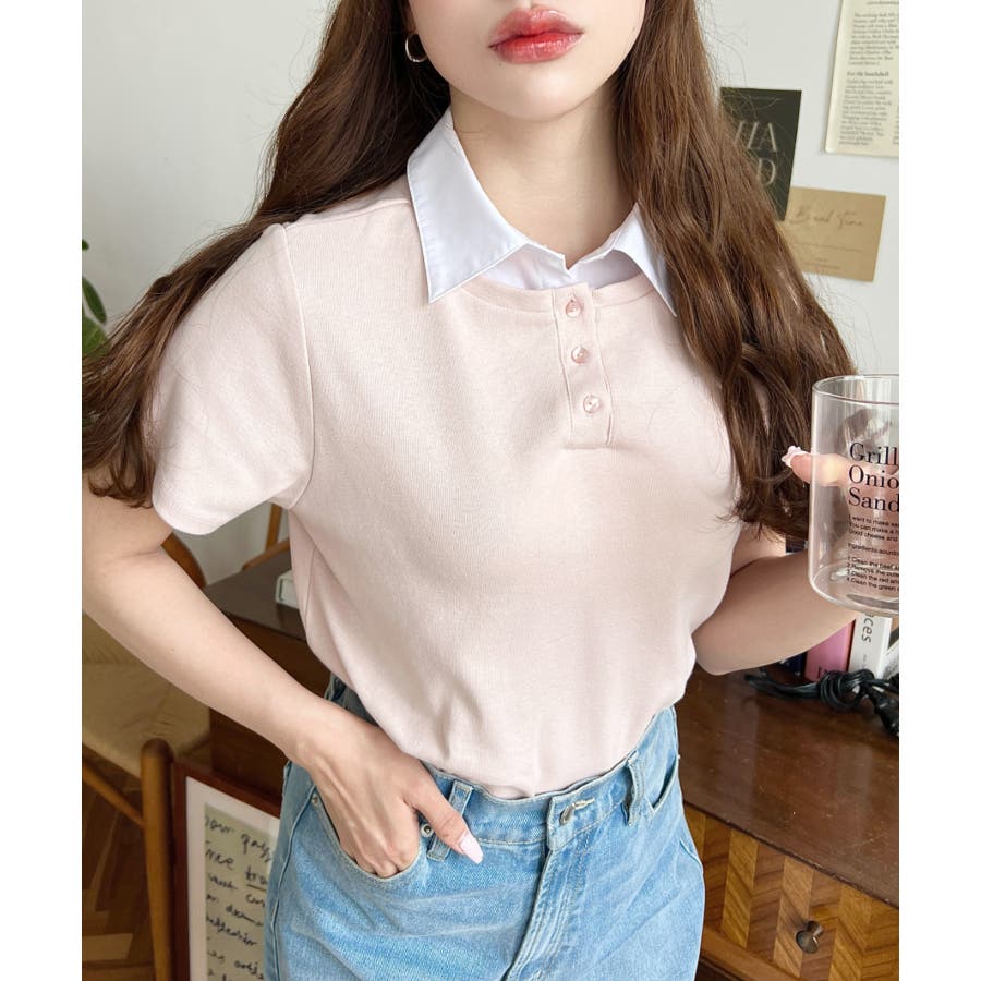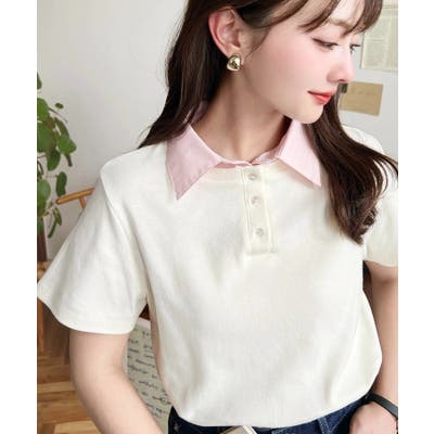 ・コーデのアクセントに首元のボタンを開けることで抜け感をプラス◎韓国系ファッションにもハマるポロカットソーです。