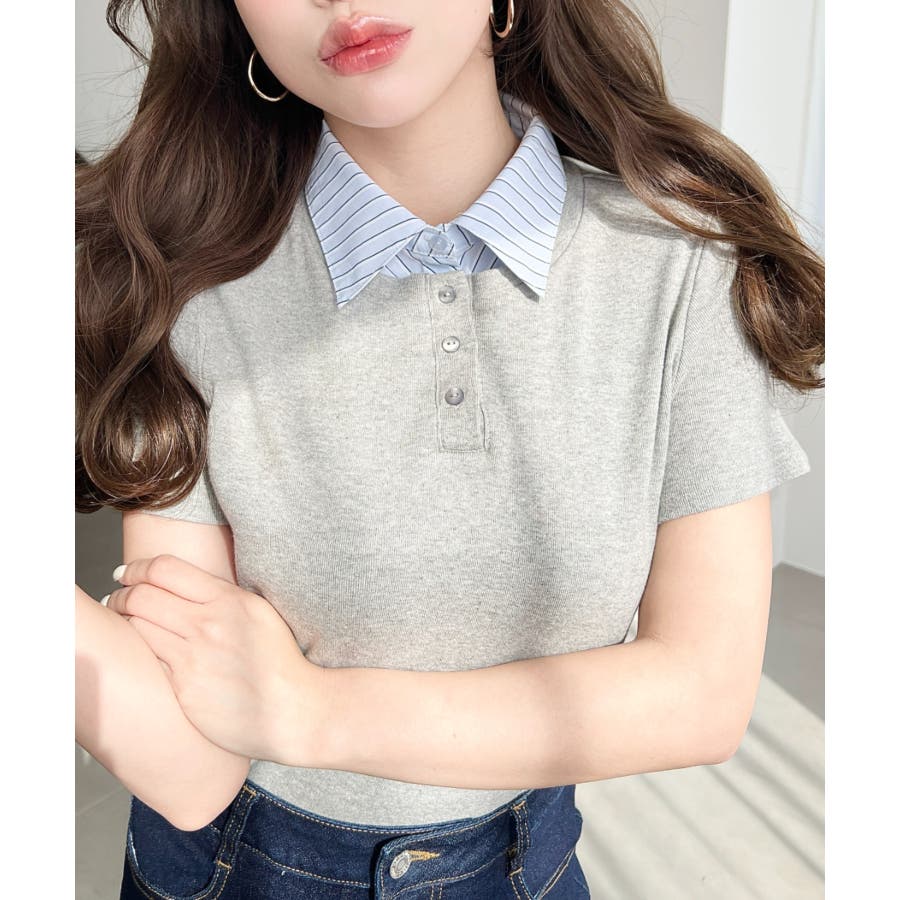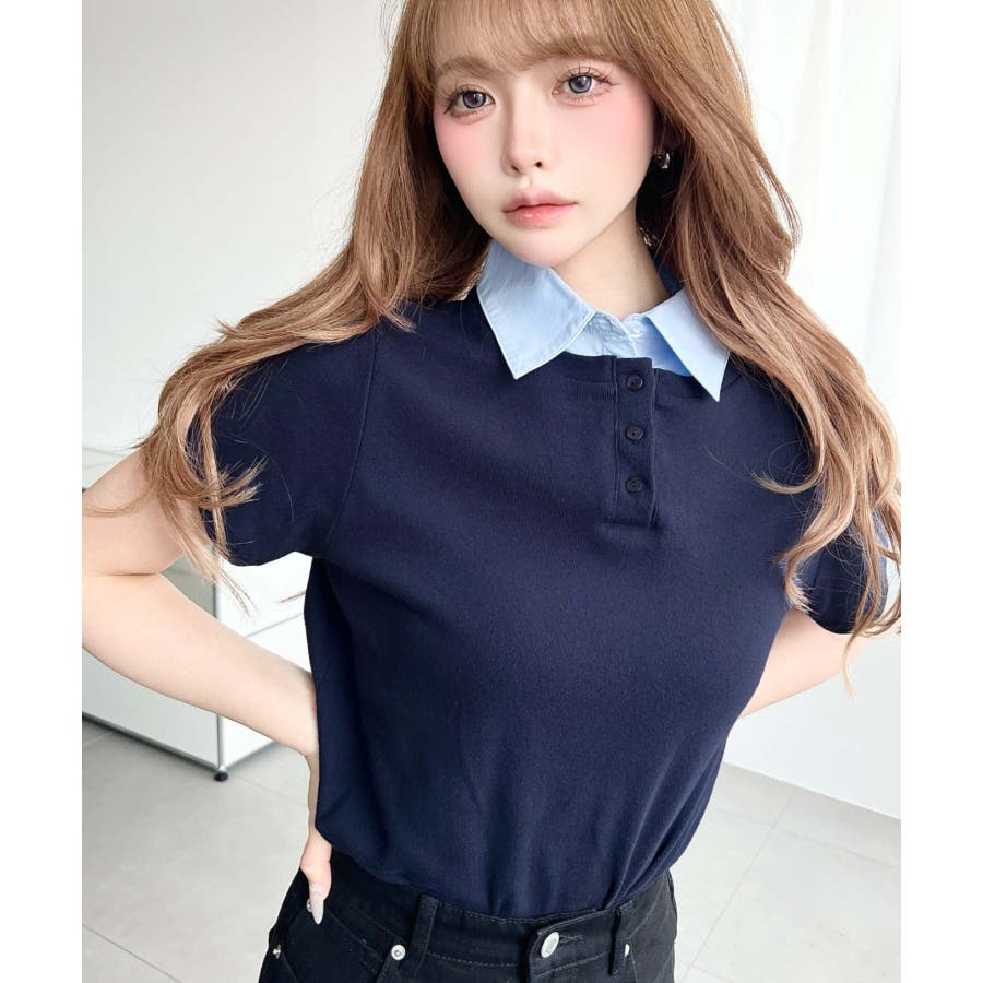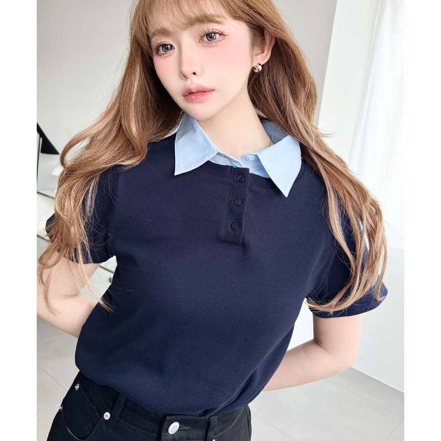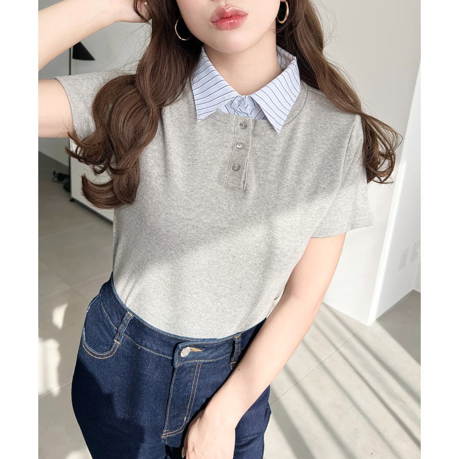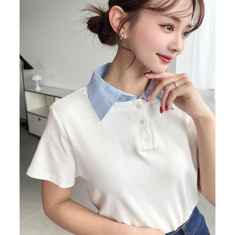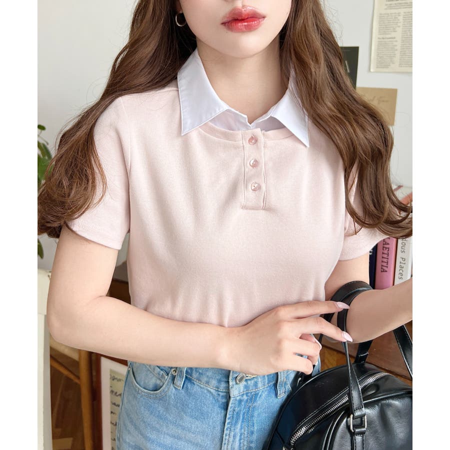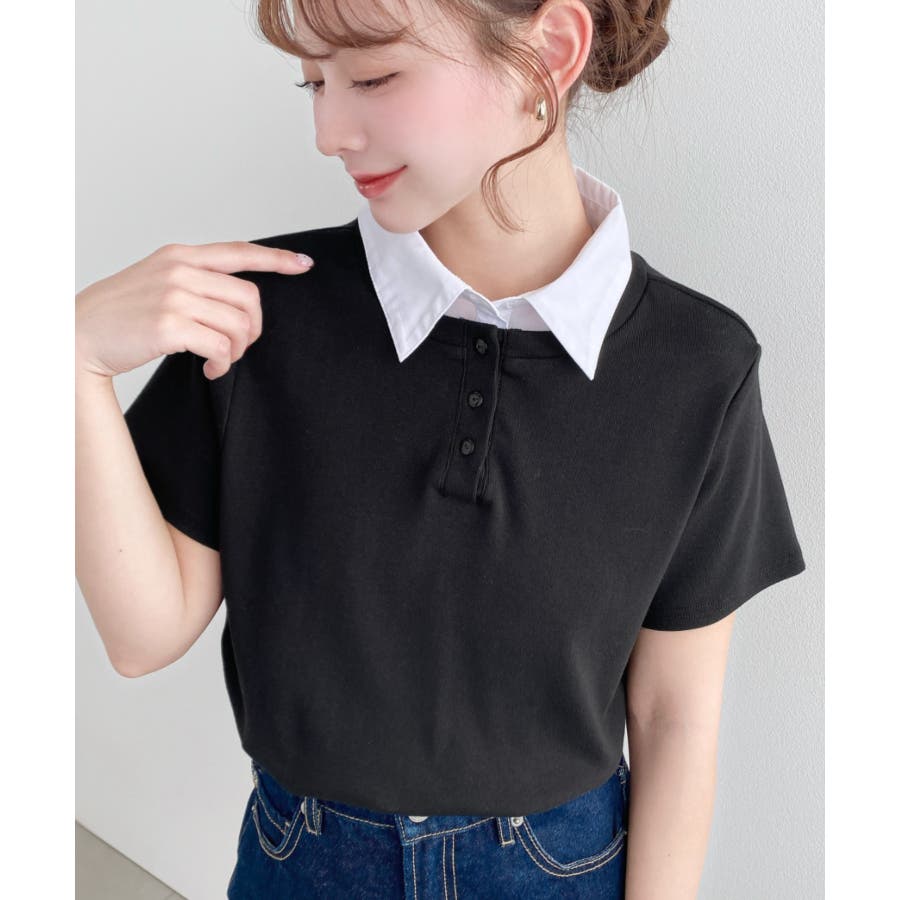 ・コーデのアクセントに首元のボタンを開けることで抜け感をプラス◎韓国系ファッションにもハマるポロカットソーです。