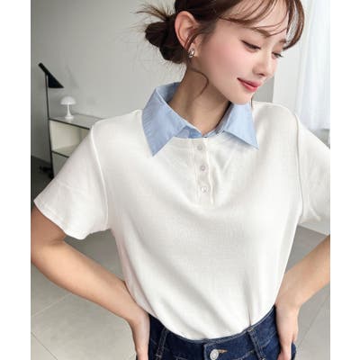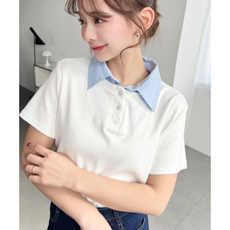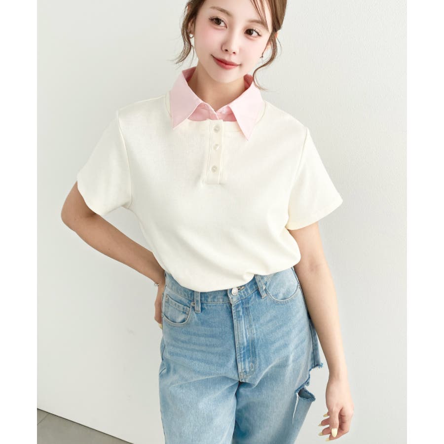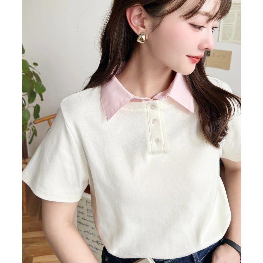 バイカラーデザイン半袖ポロカットソー
