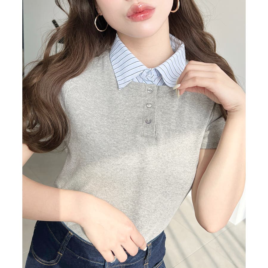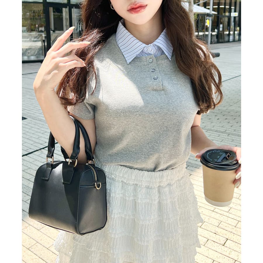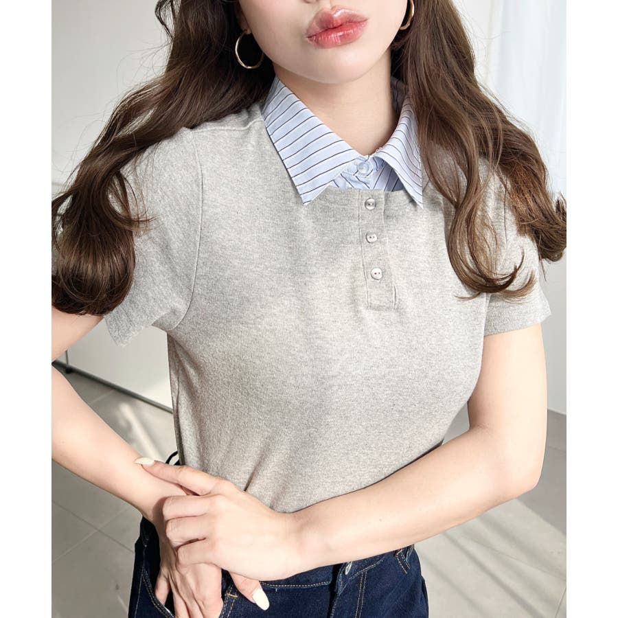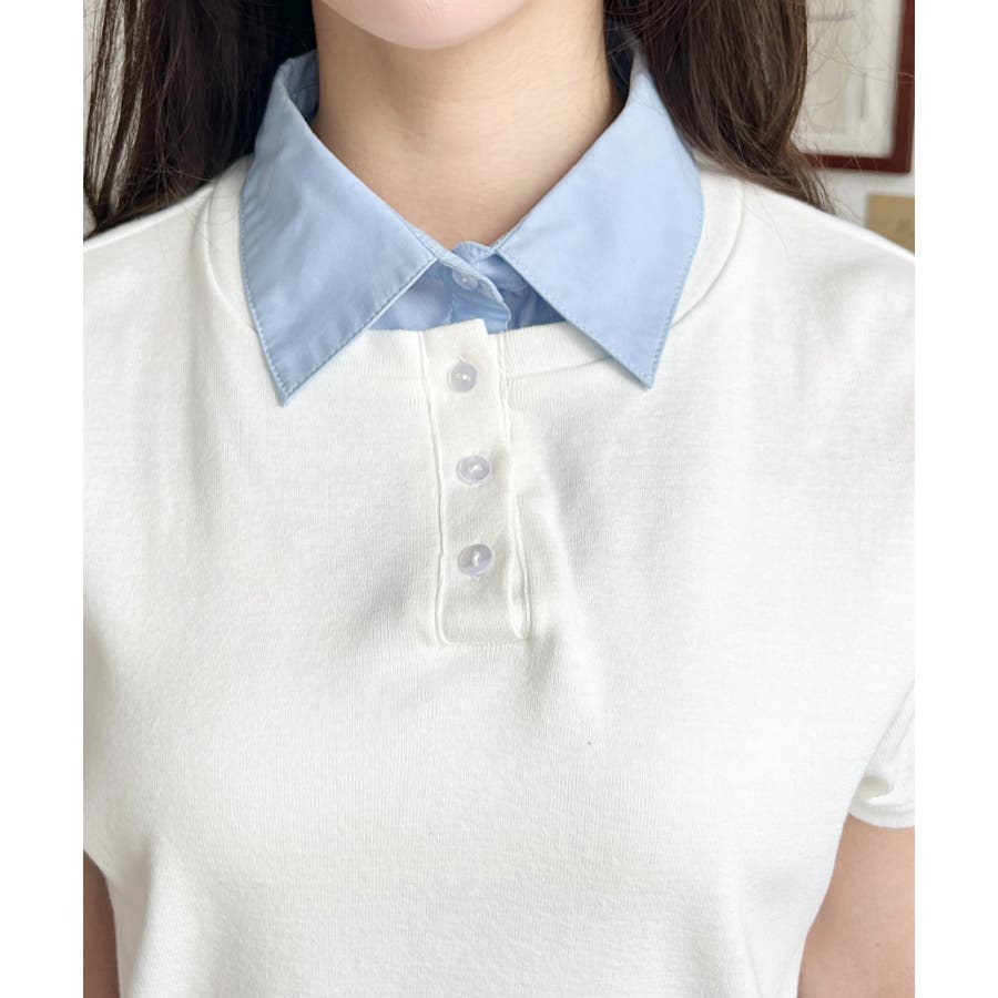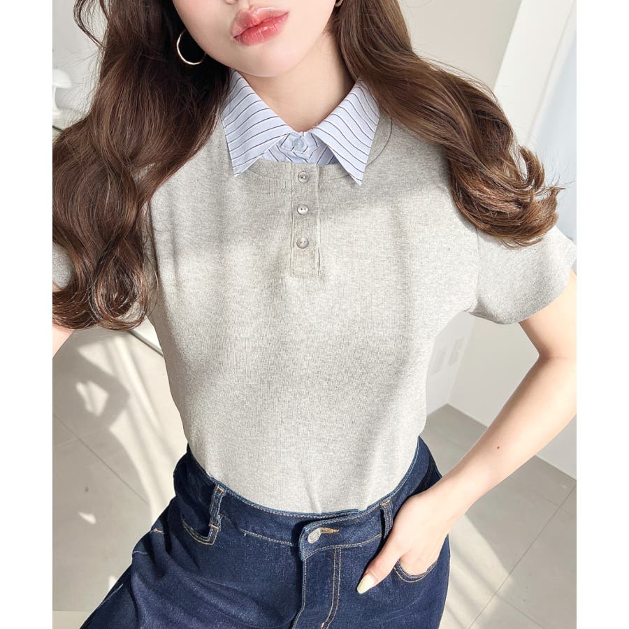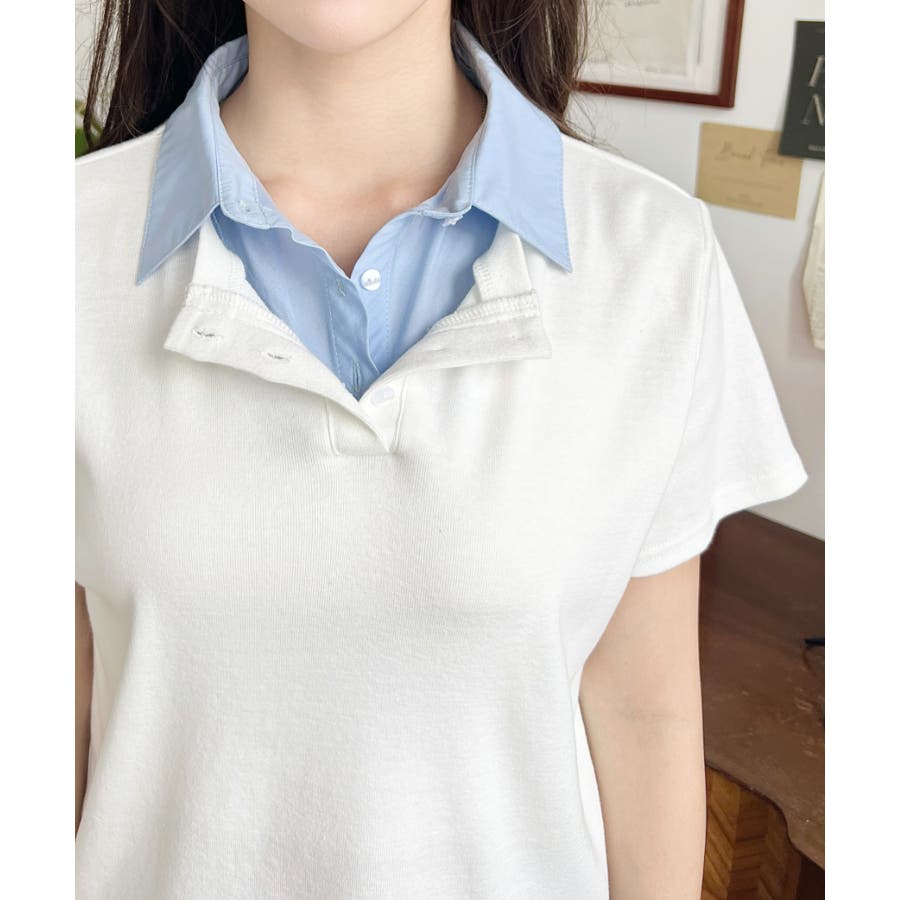 【シャツを重ねたようなレイヤードスタイルがこの一枚で完成!異なる素材感でお洒落上級者に】