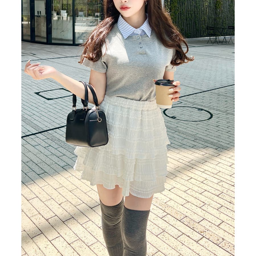 重ね着してるみたいに見えるデザインが可愛くて、1枚なのに手が込んで見えるのが嬉しいです。