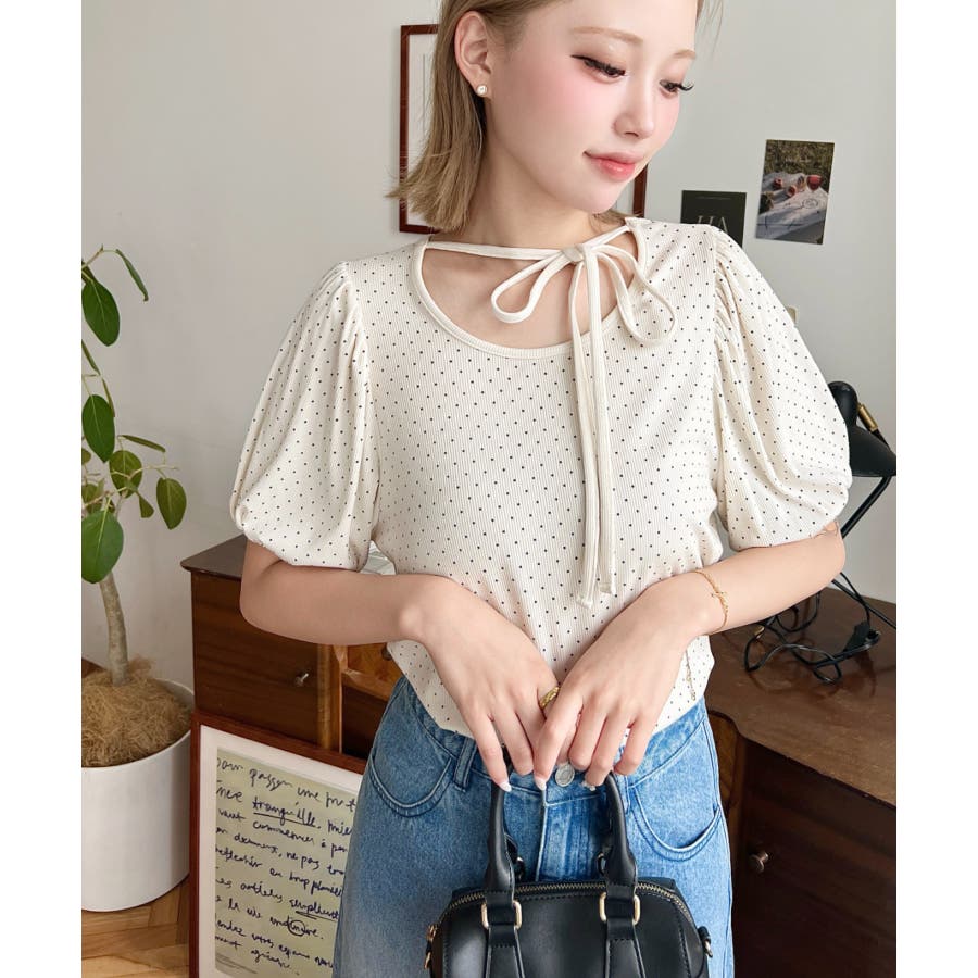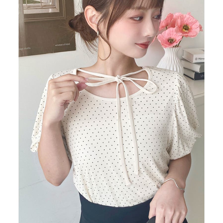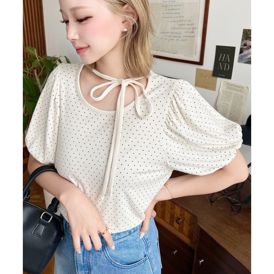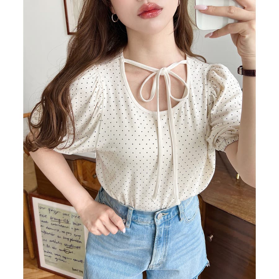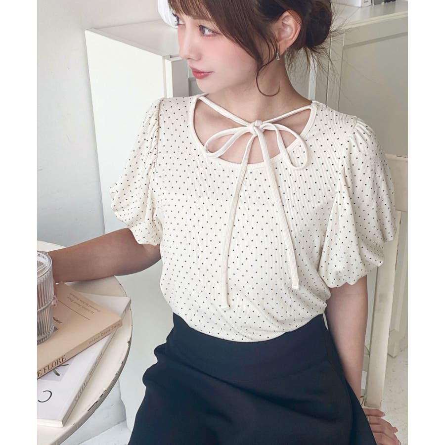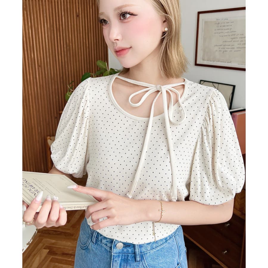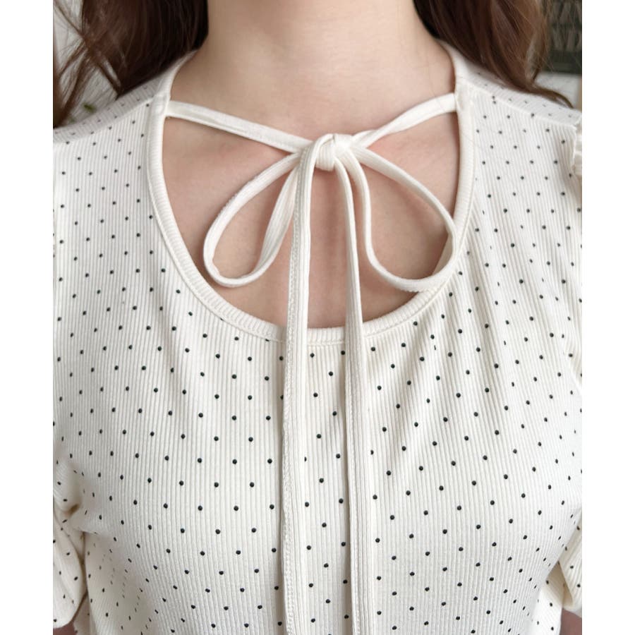 【ガーリー好きさん必見♪好みの形にリボンが結べるドットトップスが登場◎】