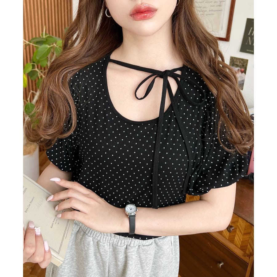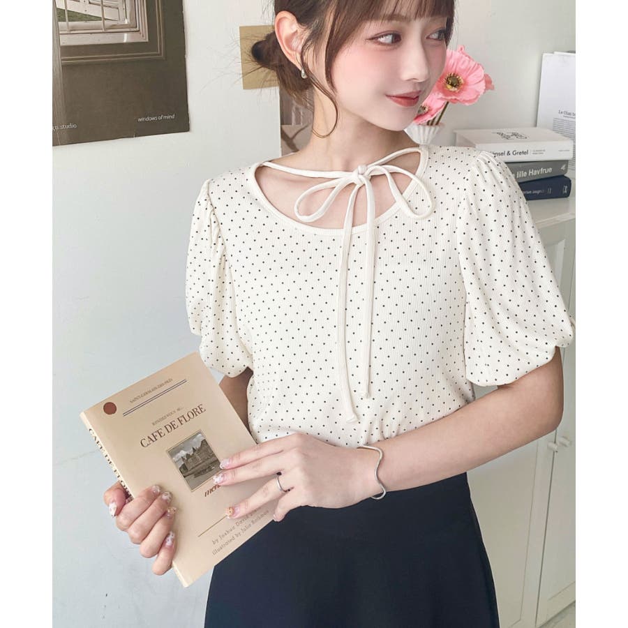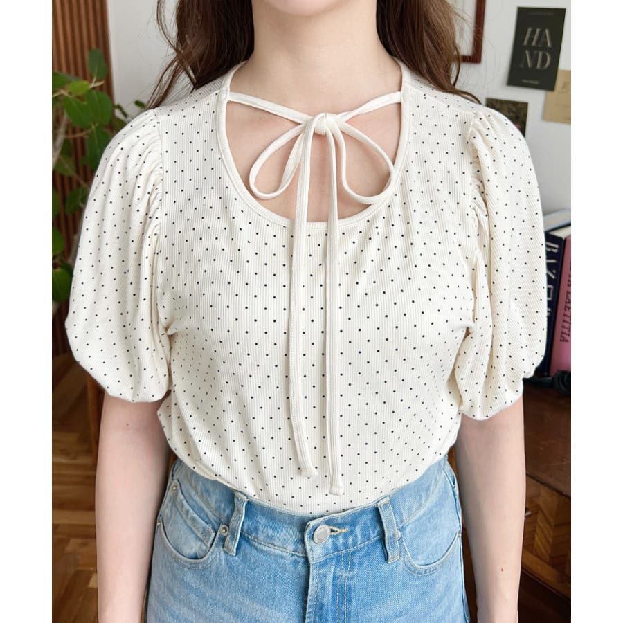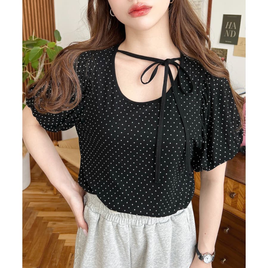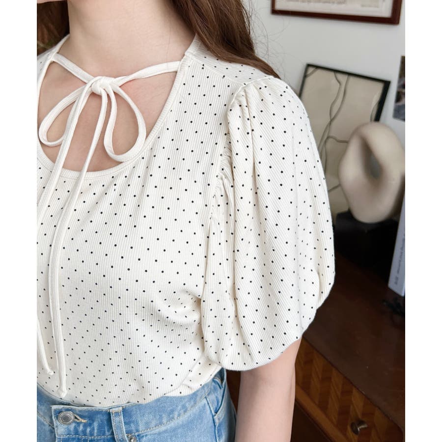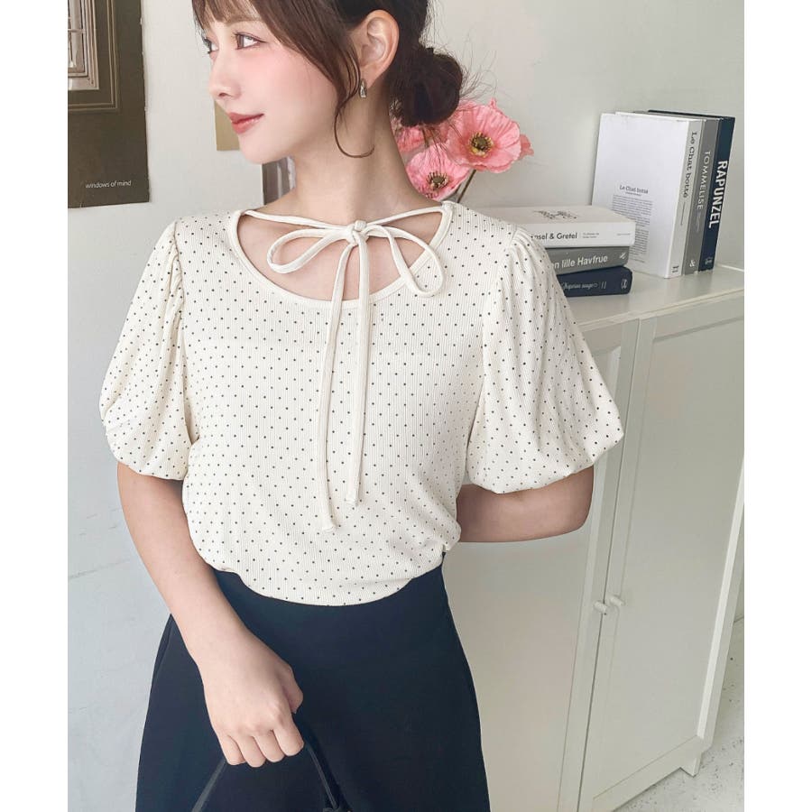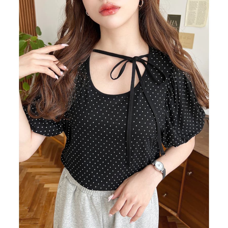 【ガーリー好きさん必見♪好みの形にリボンが結べるドットトップスが登場◎】