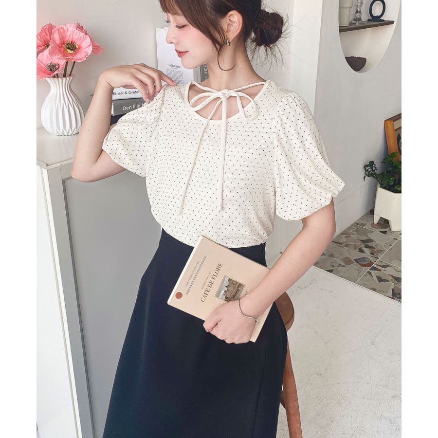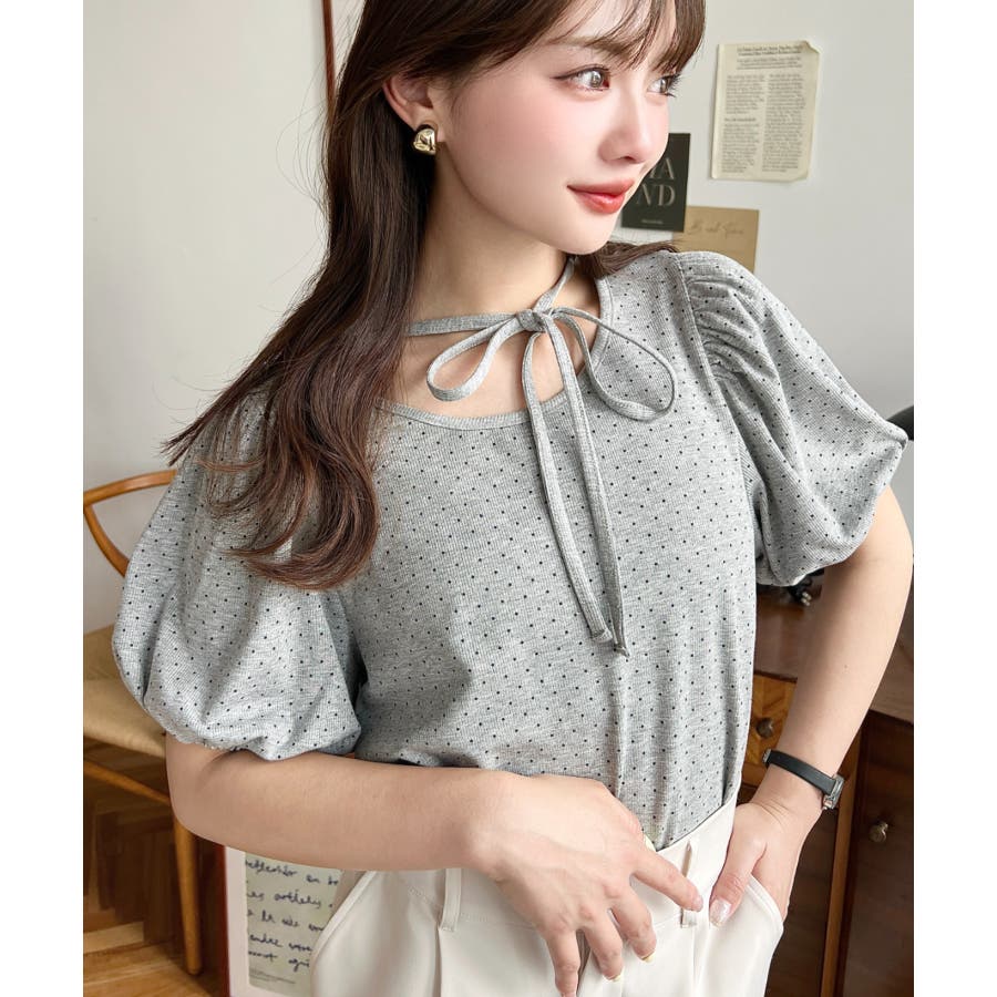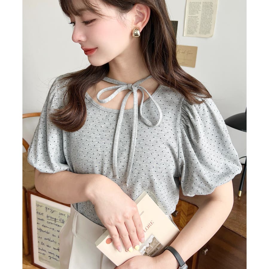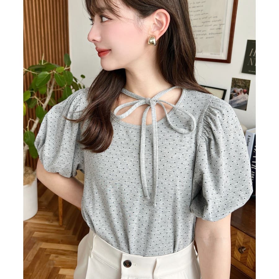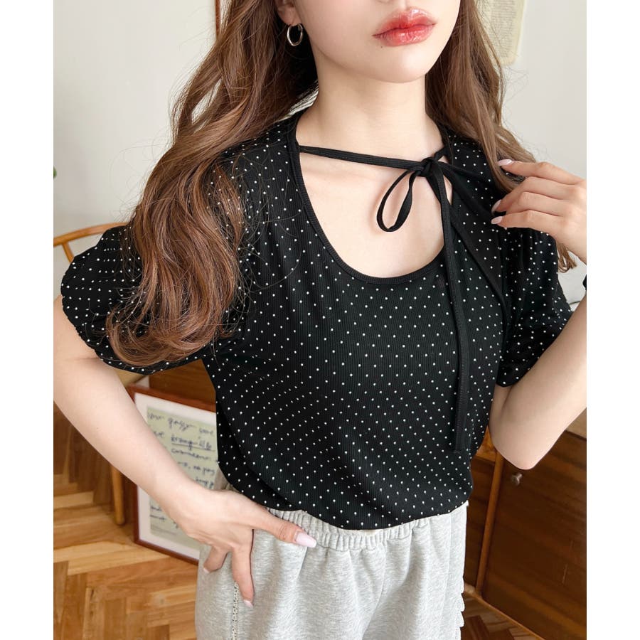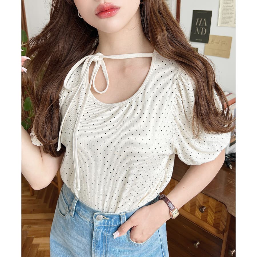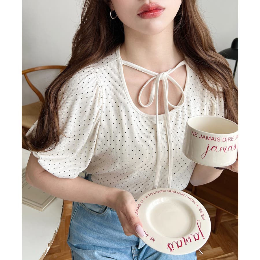 【ガーリー好きさん必見♪好みの形にリボンが結べるドットトップスが登場◎】