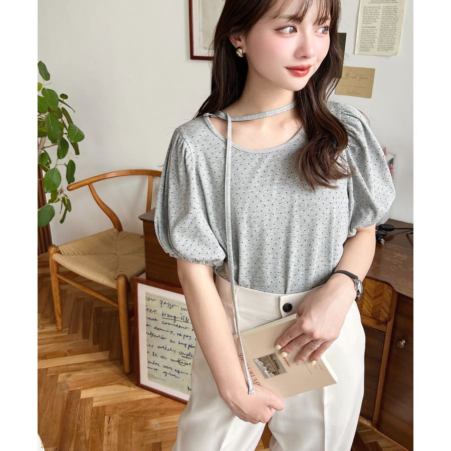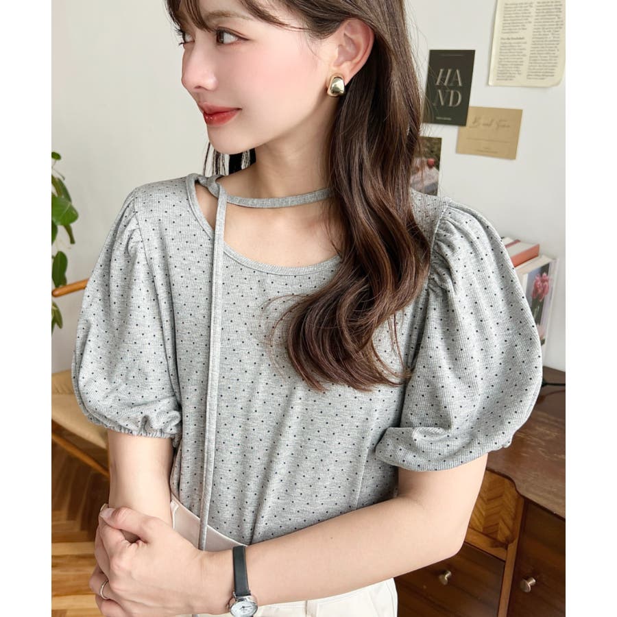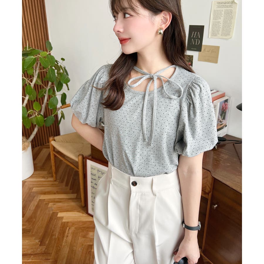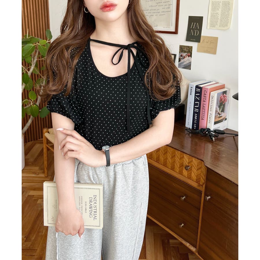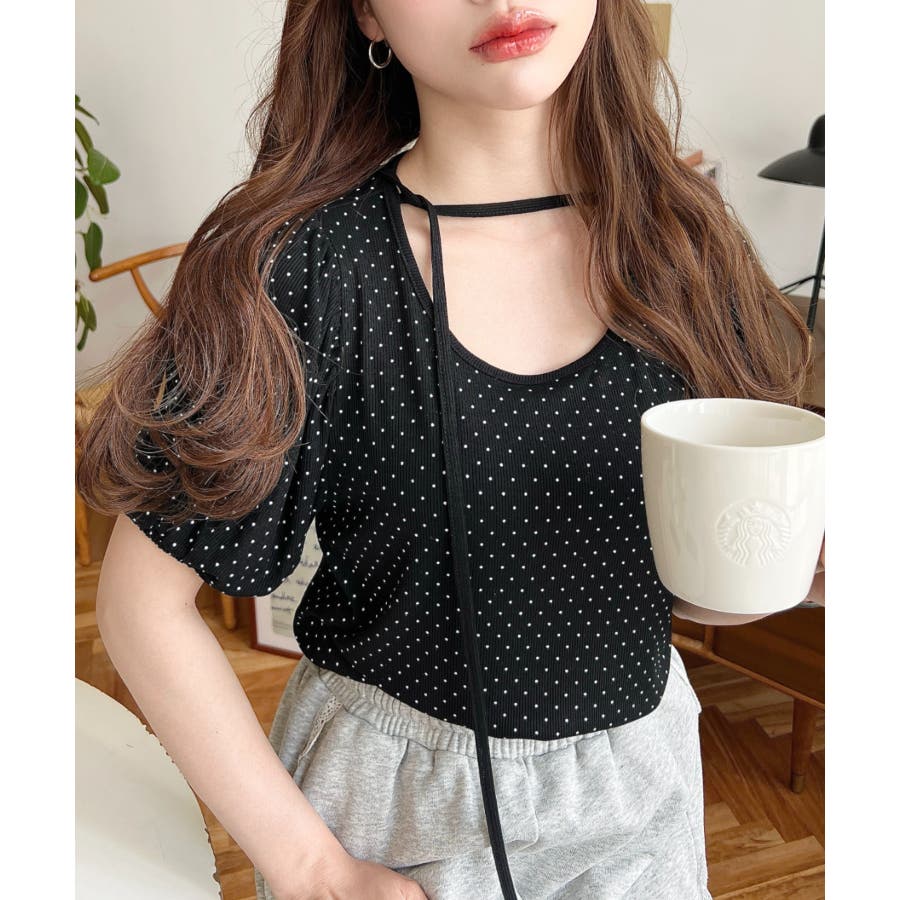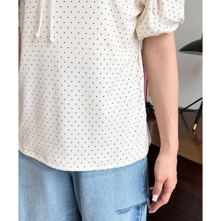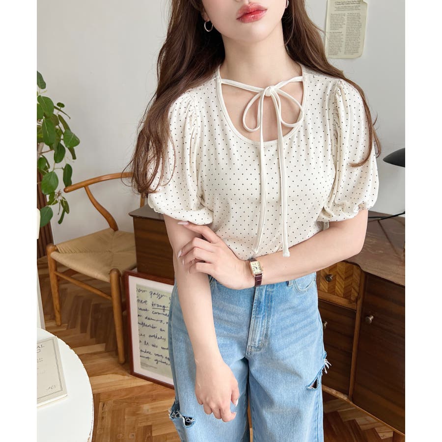 【ガーリー好きさん必見♪好みの形にリボンが結べるドットトップスが登場◎】