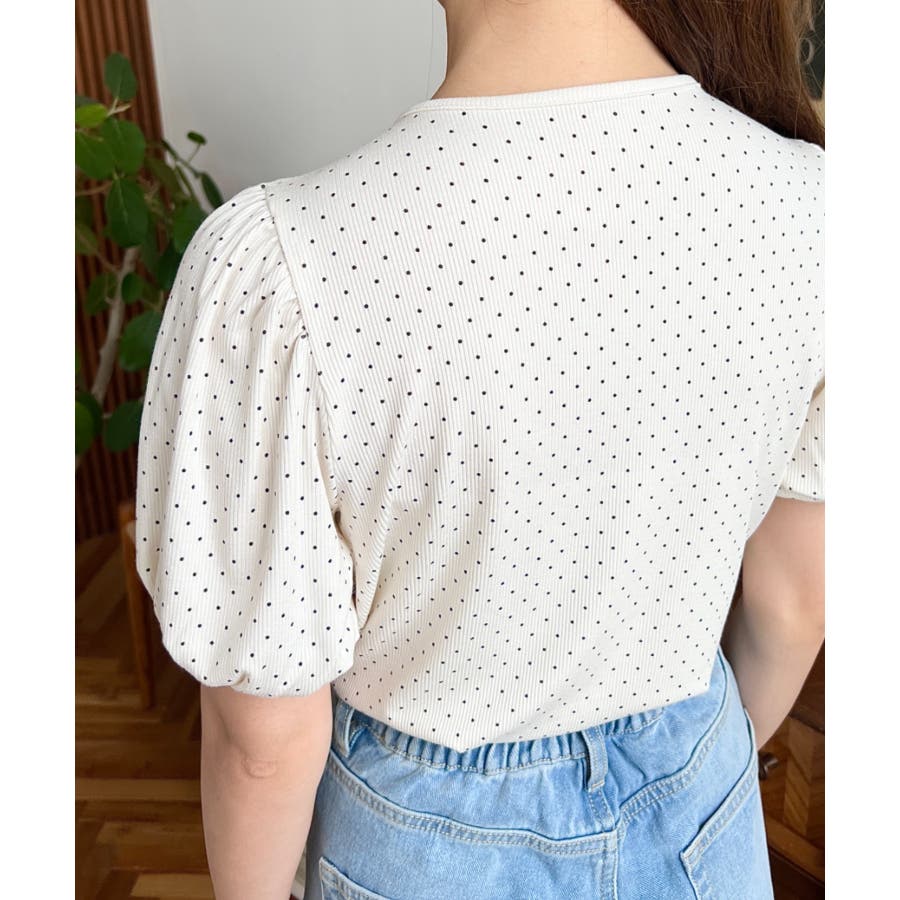 ドットプリントテレコリブバレエコアパフスリーブカットソー