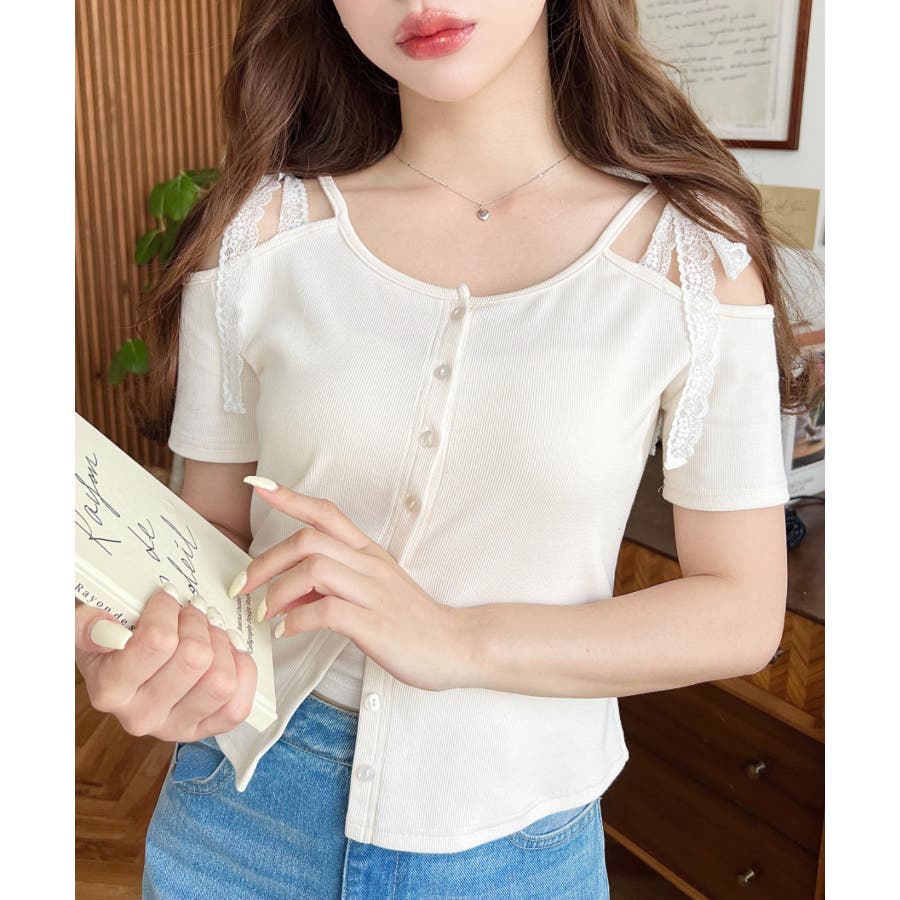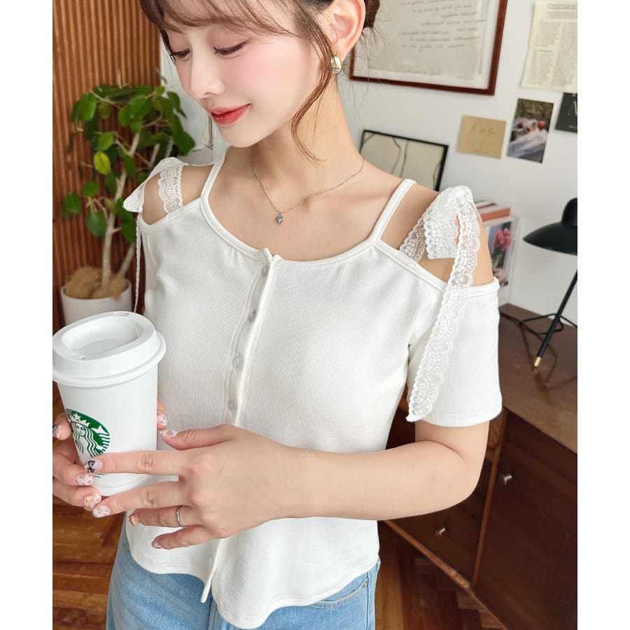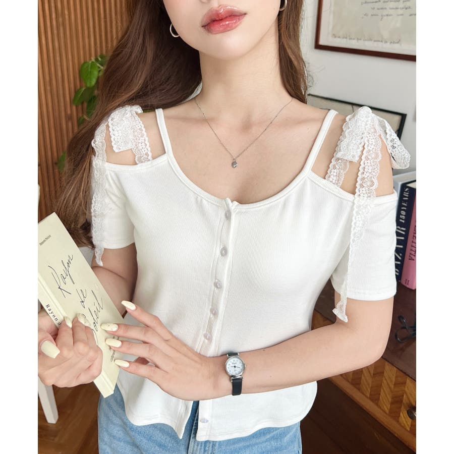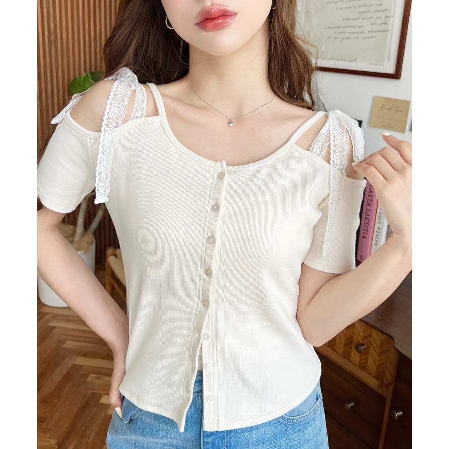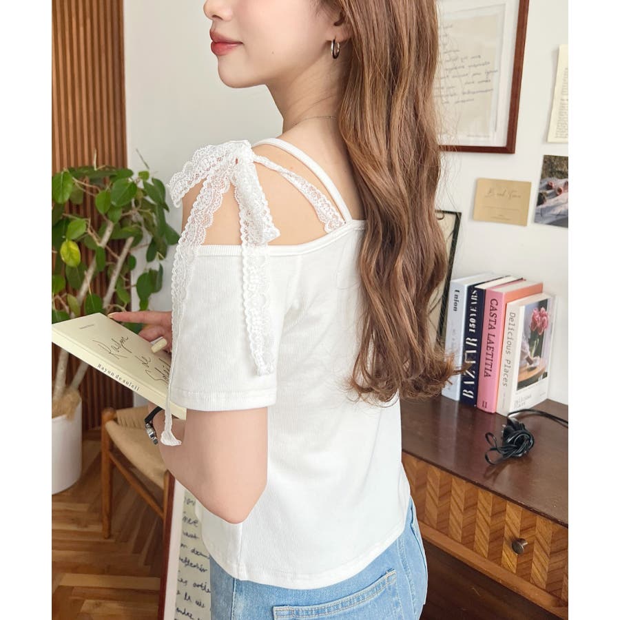 【オフショル×リボンレースがトレンド要素たっぷりで着るだけでお洒落見えするトップスが仲間入り♪】