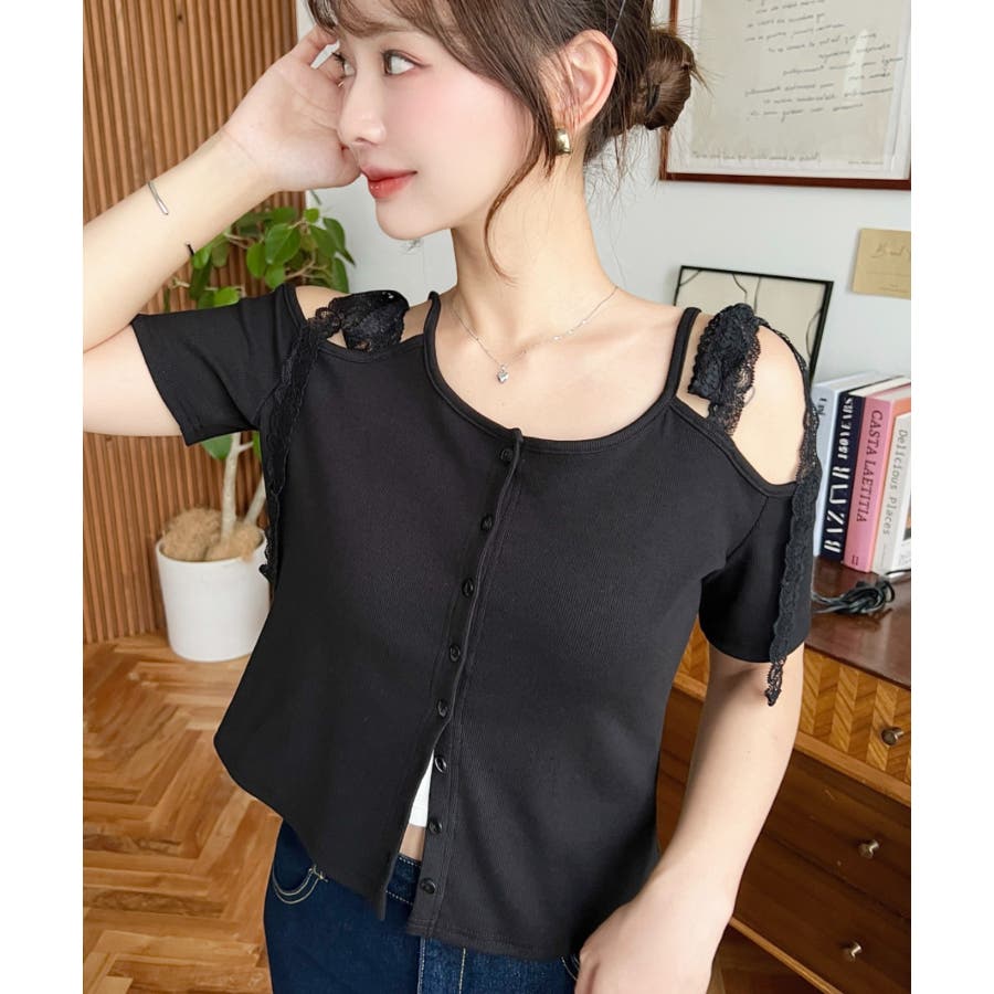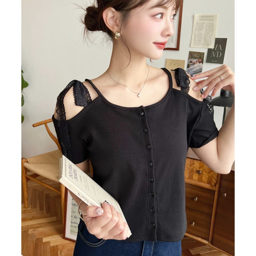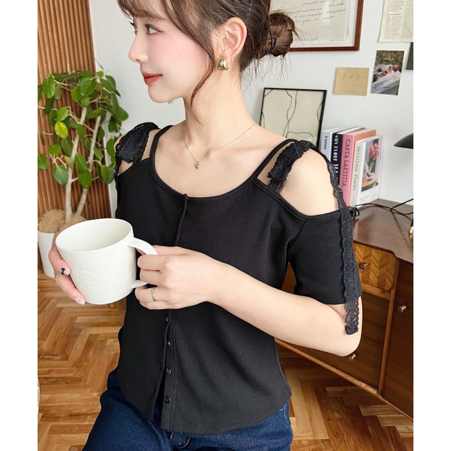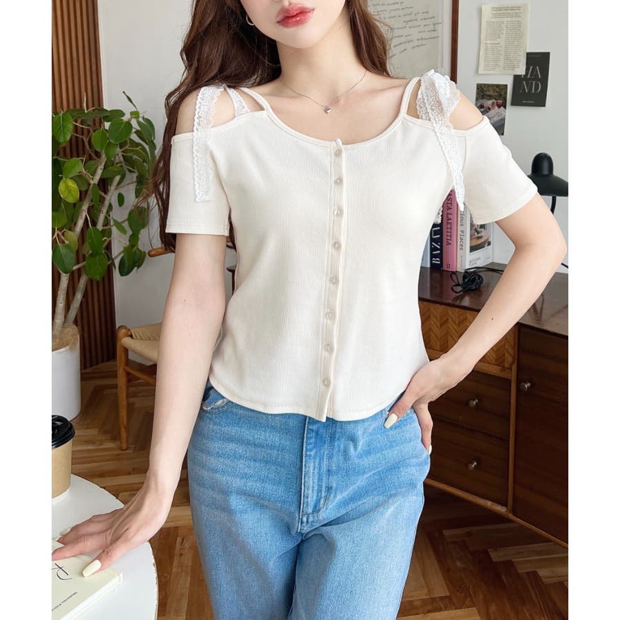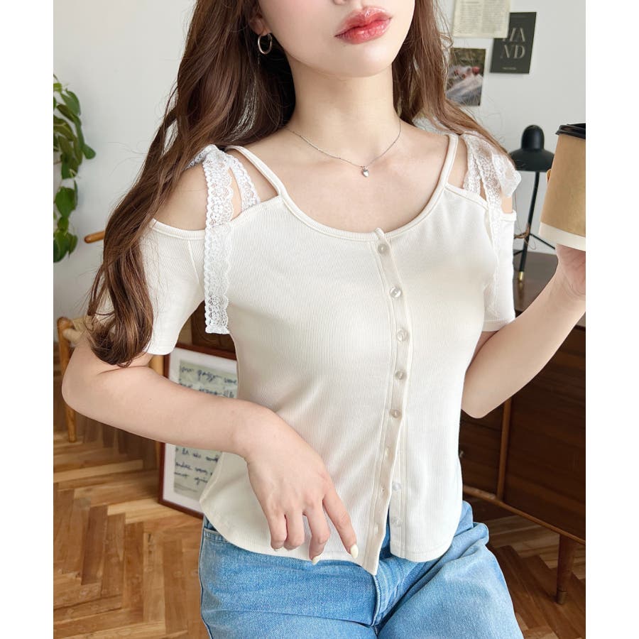 【オフショル×リボンレースがトレンド要素たっぷりで着るだけでお洒落見えするトップスが仲間入り♪】