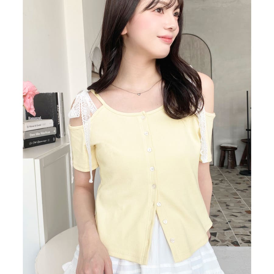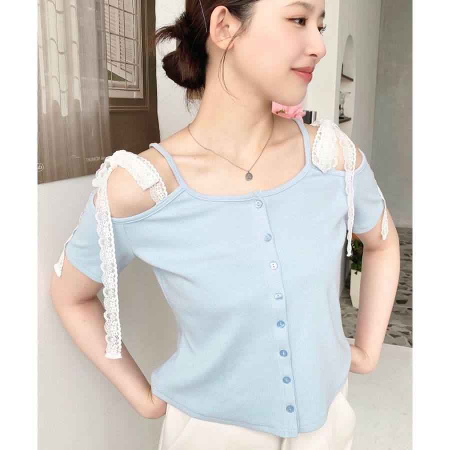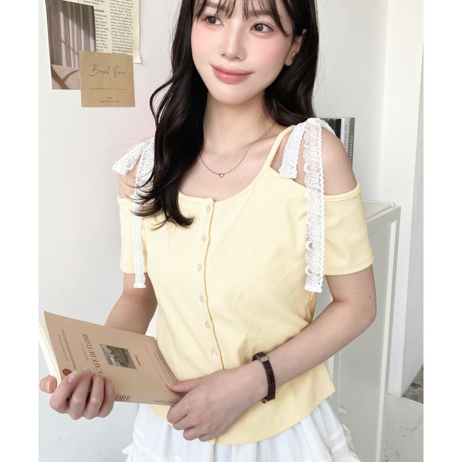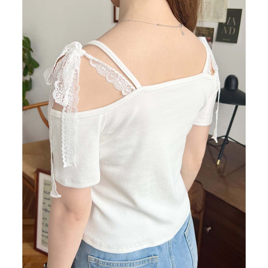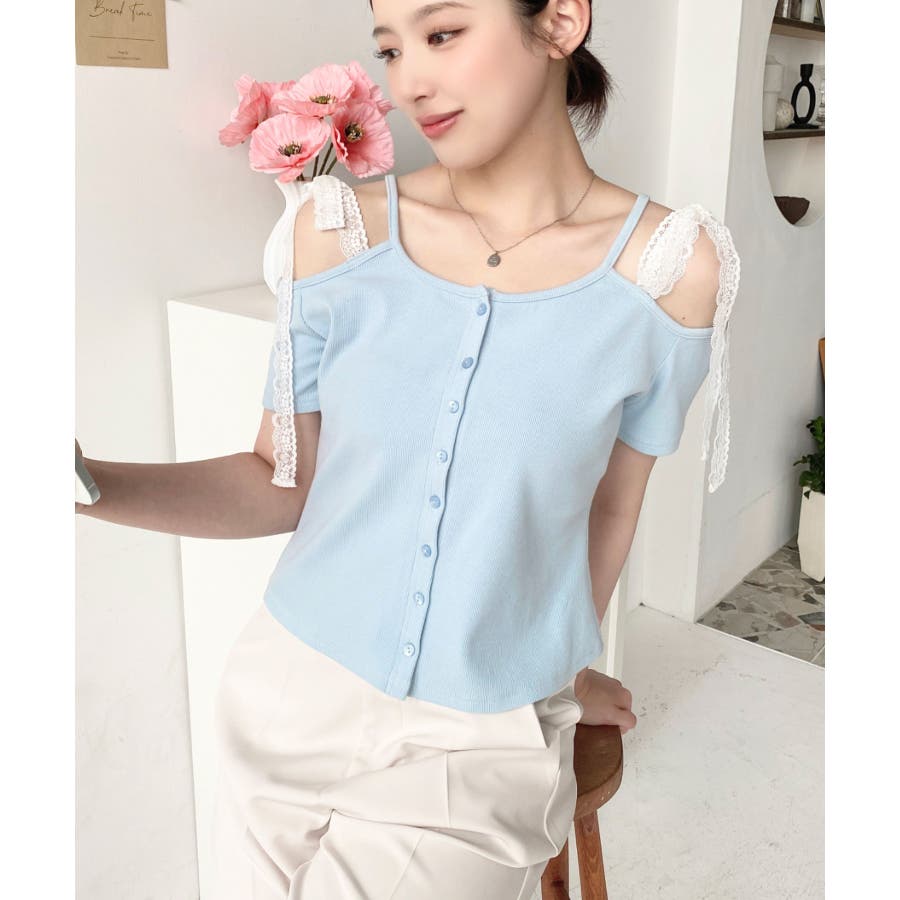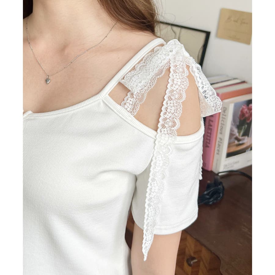 ・オフショルが苦手な方でも肩紐のレースリボンで可愛く肌見せできるのも嬉しいポイント♪