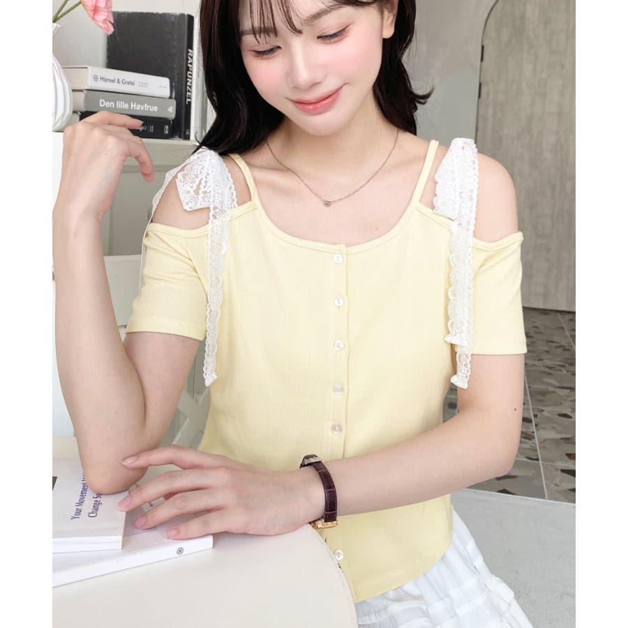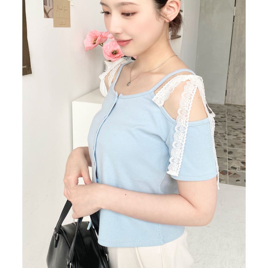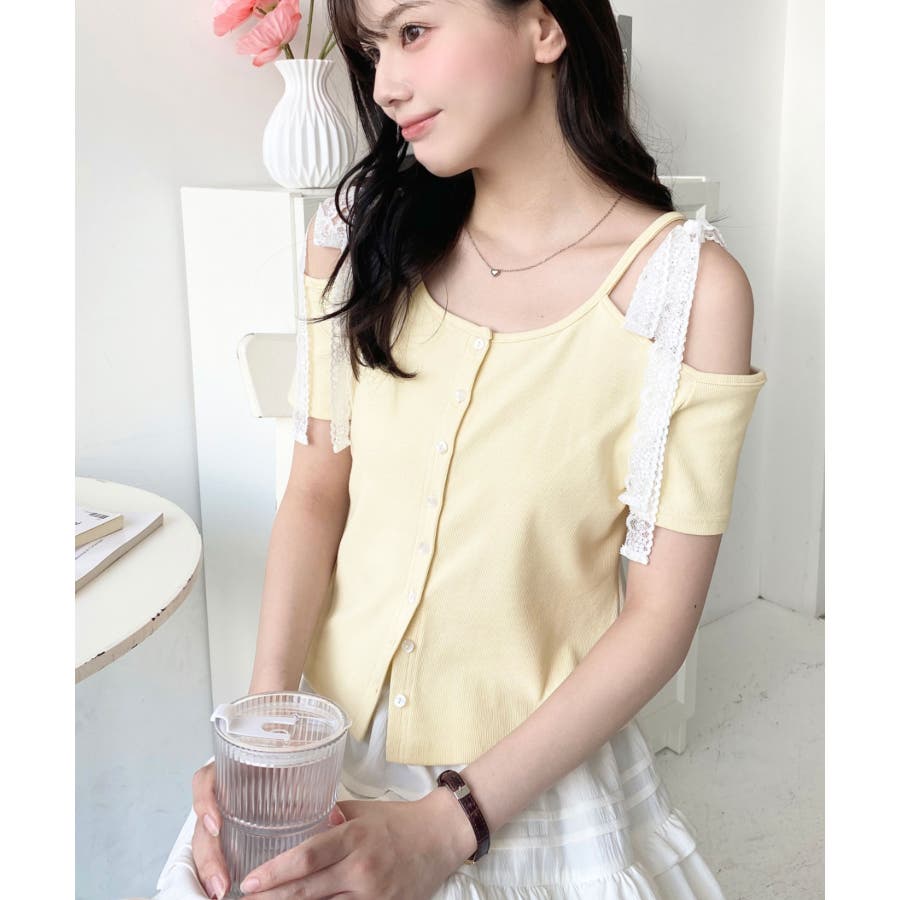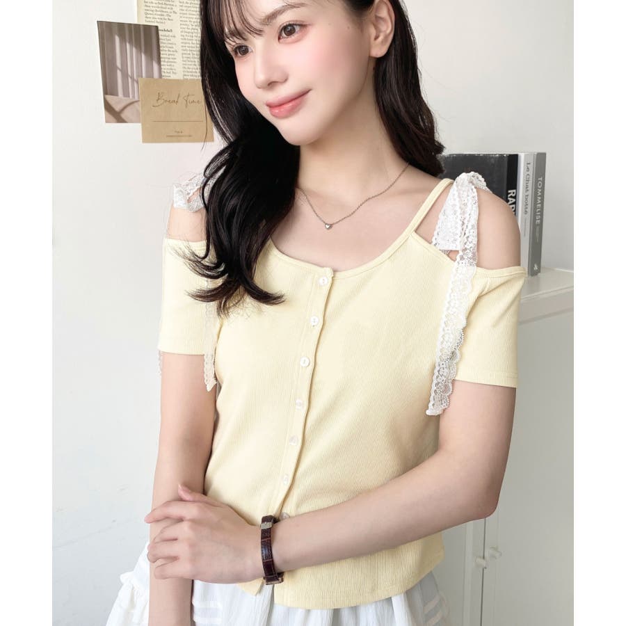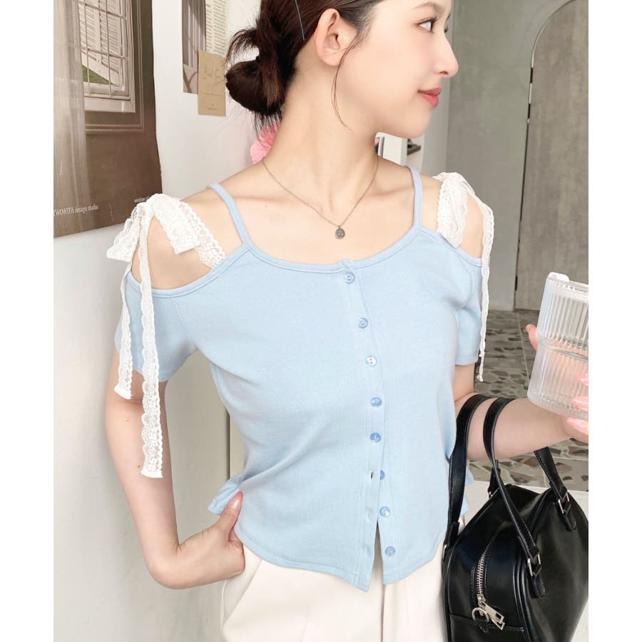 ・オフショルが苦手な方でも肩紐のレースリボンで可愛く肌見せできるのも嬉しいポイント♪