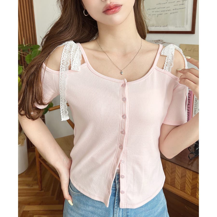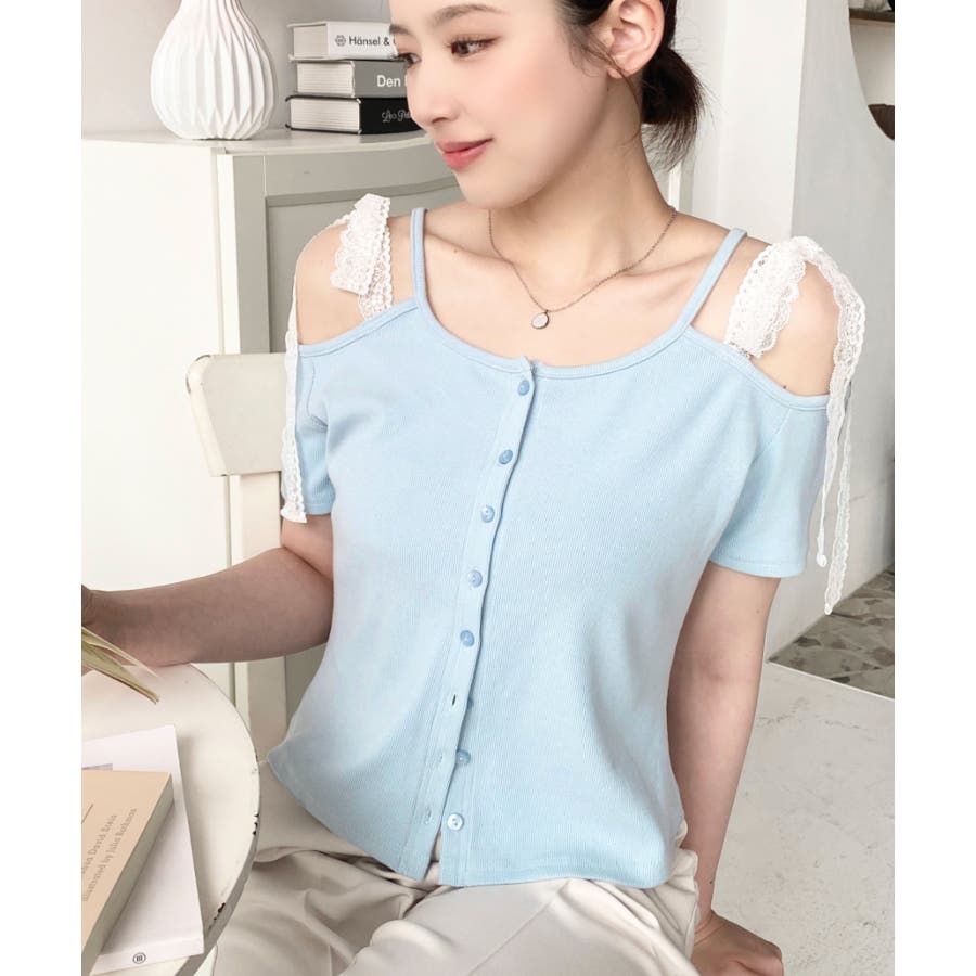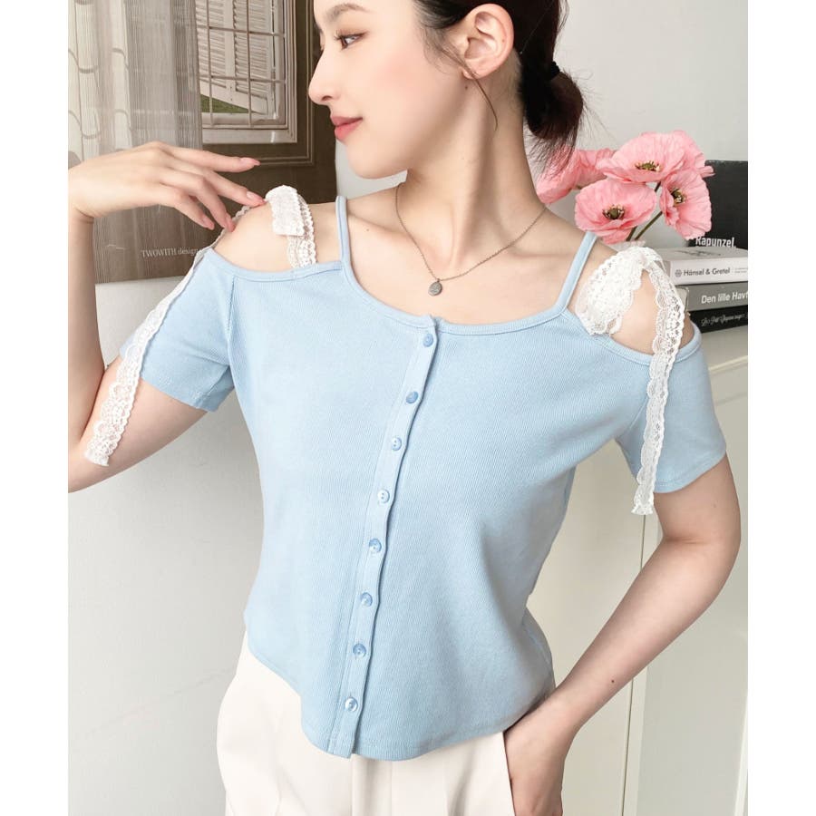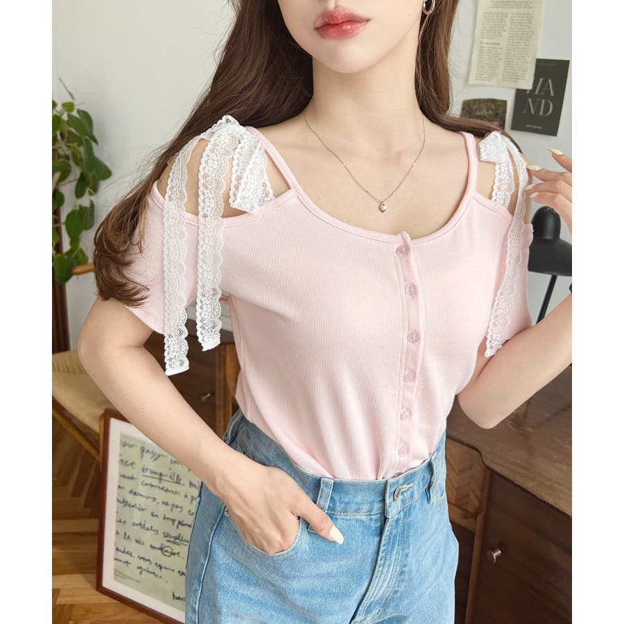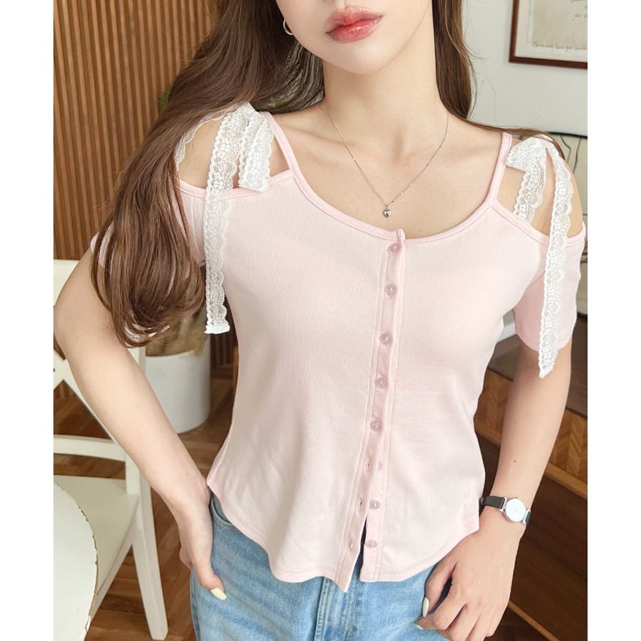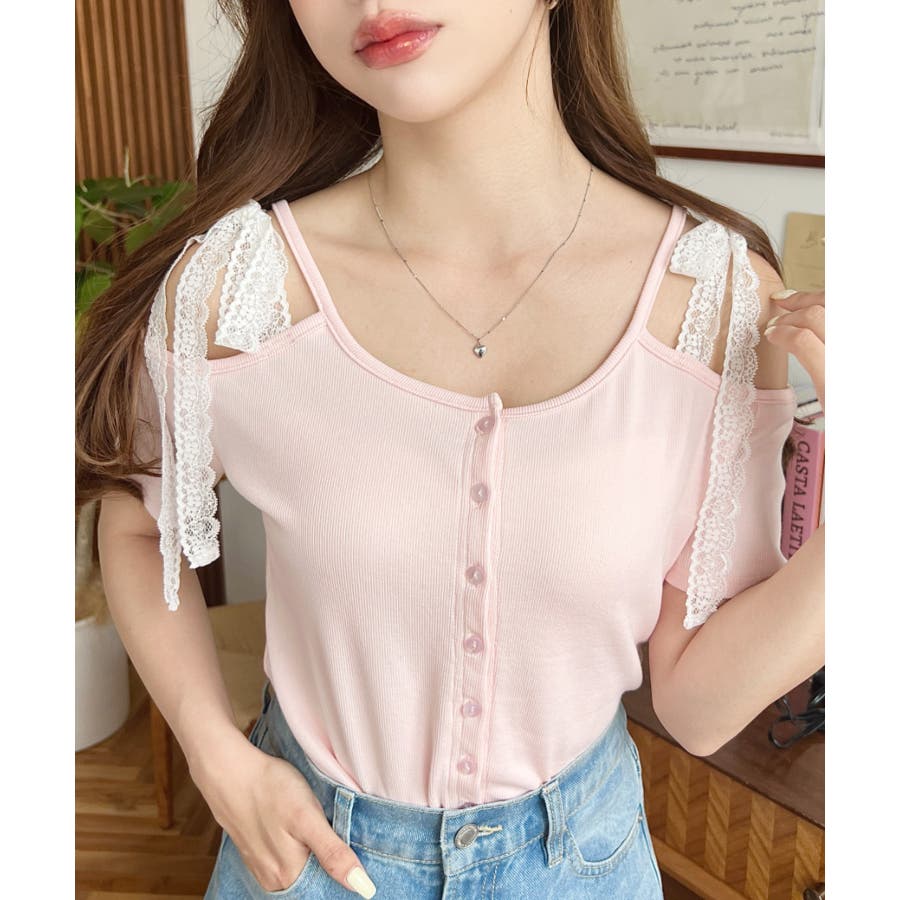 ・オフショルが苦手な方でも肩紐のレースリボンで可愛く肌見せできるのも嬉しいポイント♪