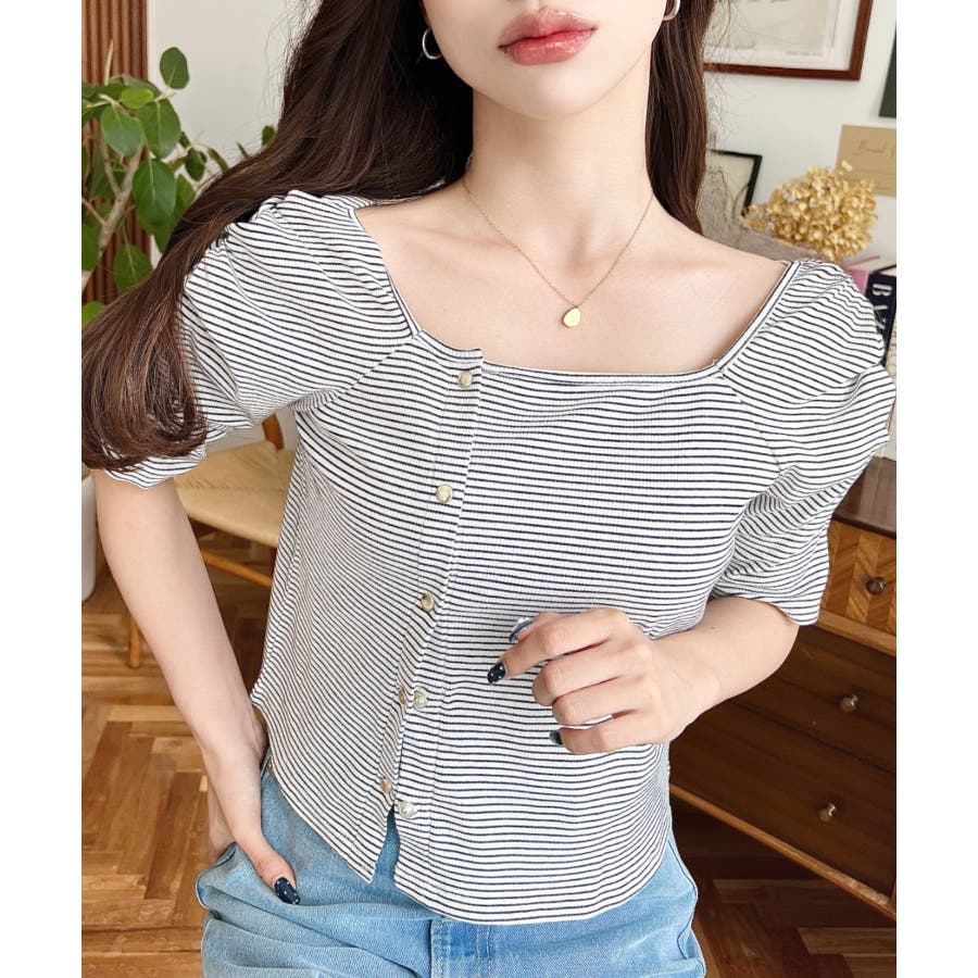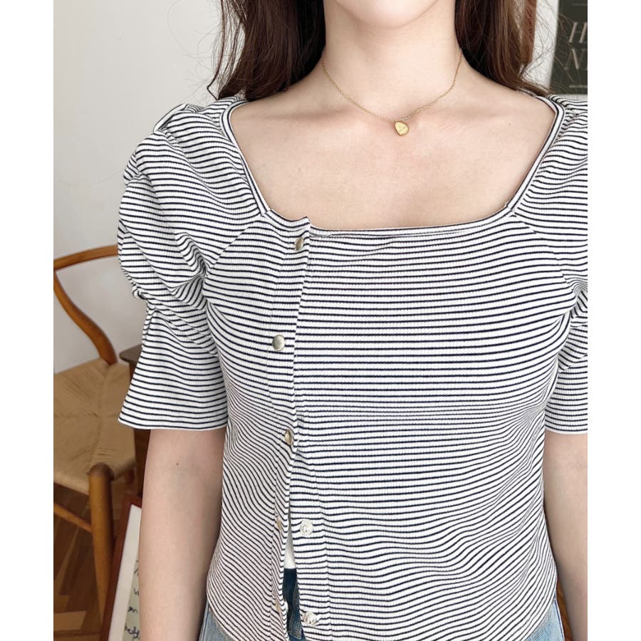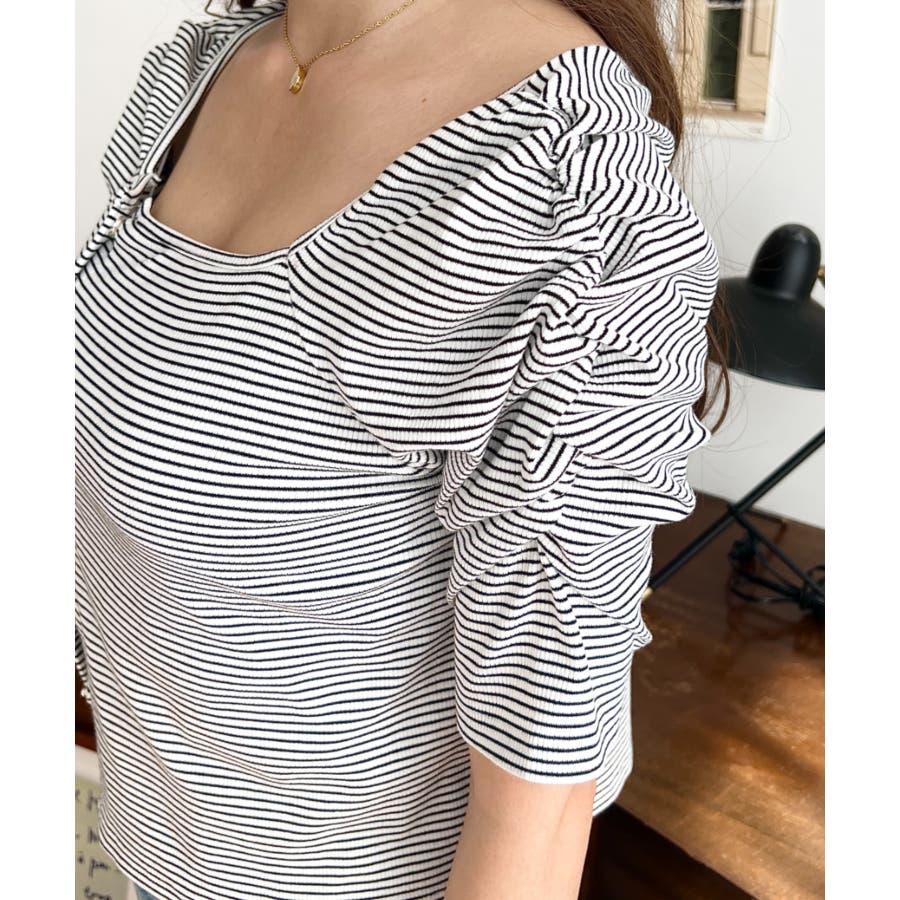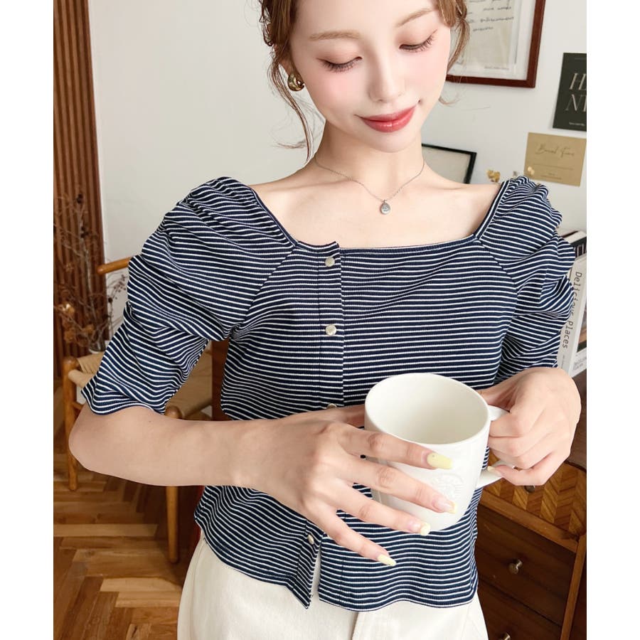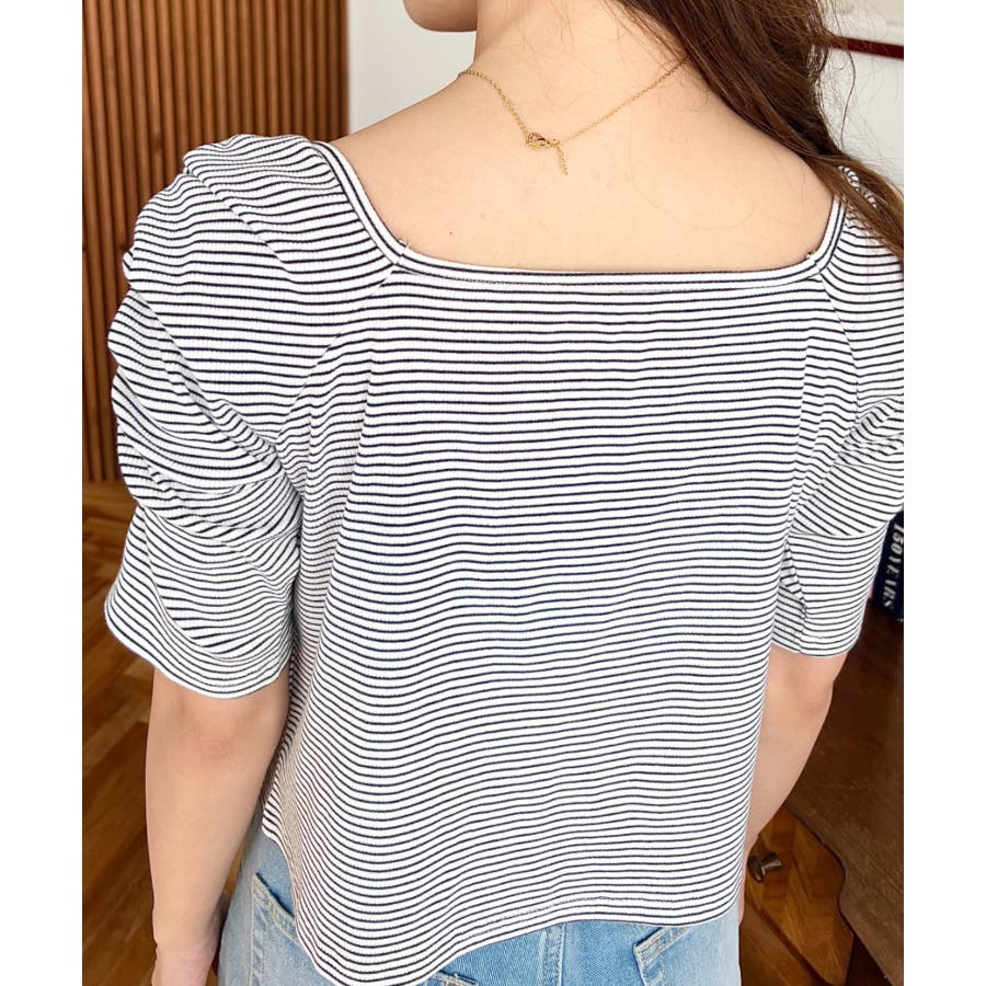 ・広めに開いたスクエアネックデザインが、顔周りをすっきり見せ小顔効果に!ヘアスタイルも選ばない着回しやすい1枚◎
