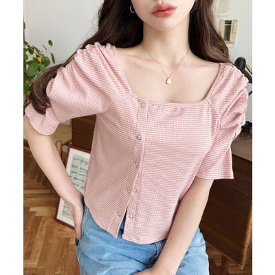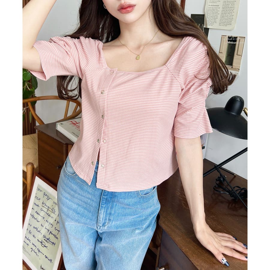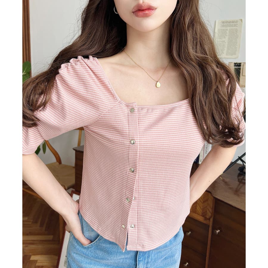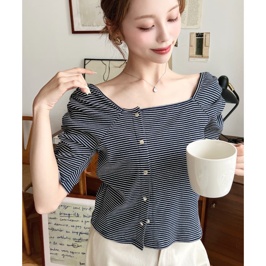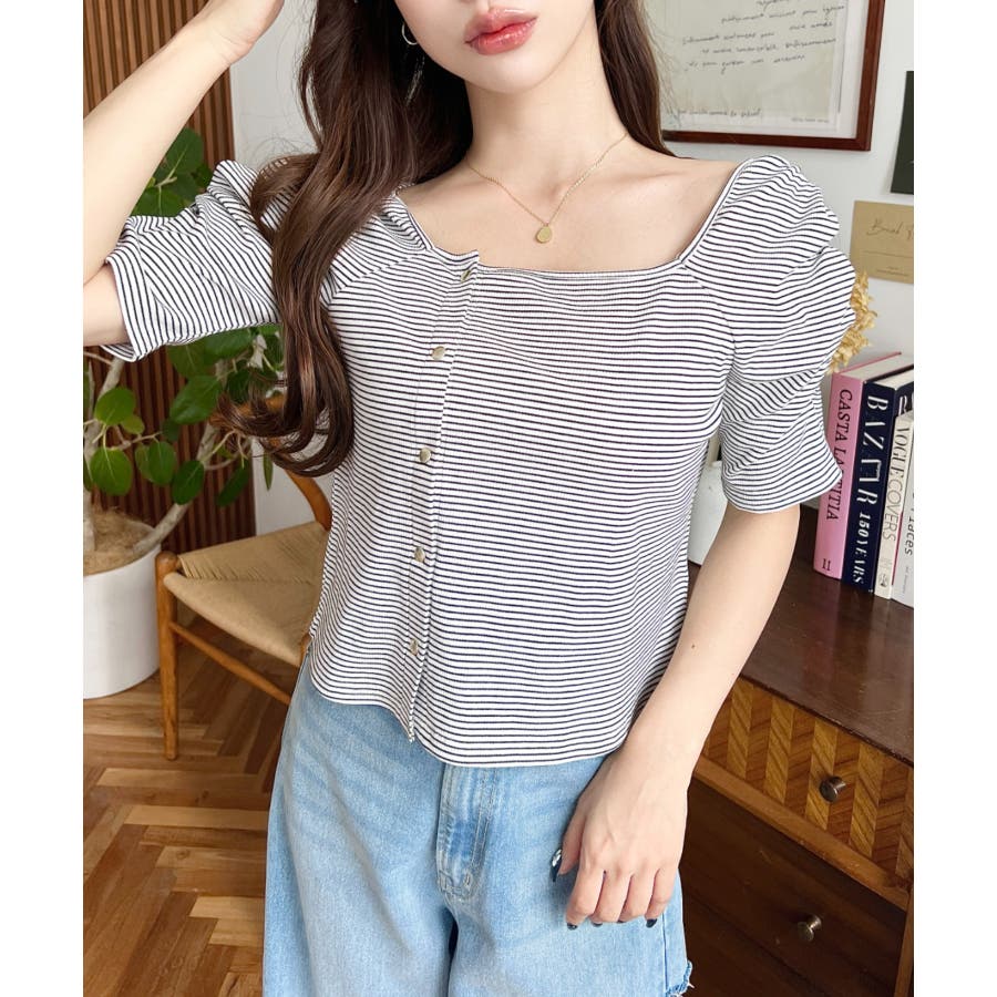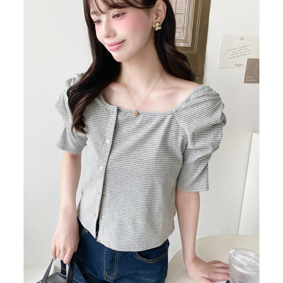 ・広めに開いたスクエアネックデザインが、顔周りをすっきり見せ小顔効果に!ヘアスタイルも選ばない着回しやすい1枚◎