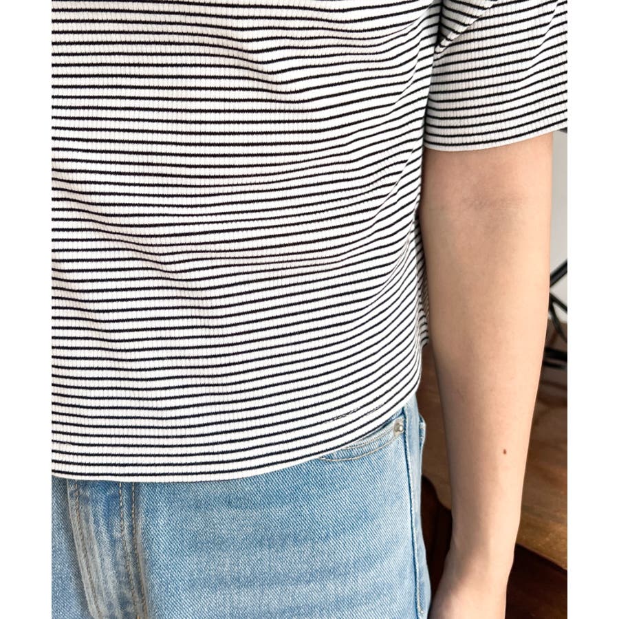 ・さりげない細かなリブやボーダー生地がカジュアルコーデにぴったり!ショート丈でバランスも取りやすく、女性らしさもプラスしてくれます。