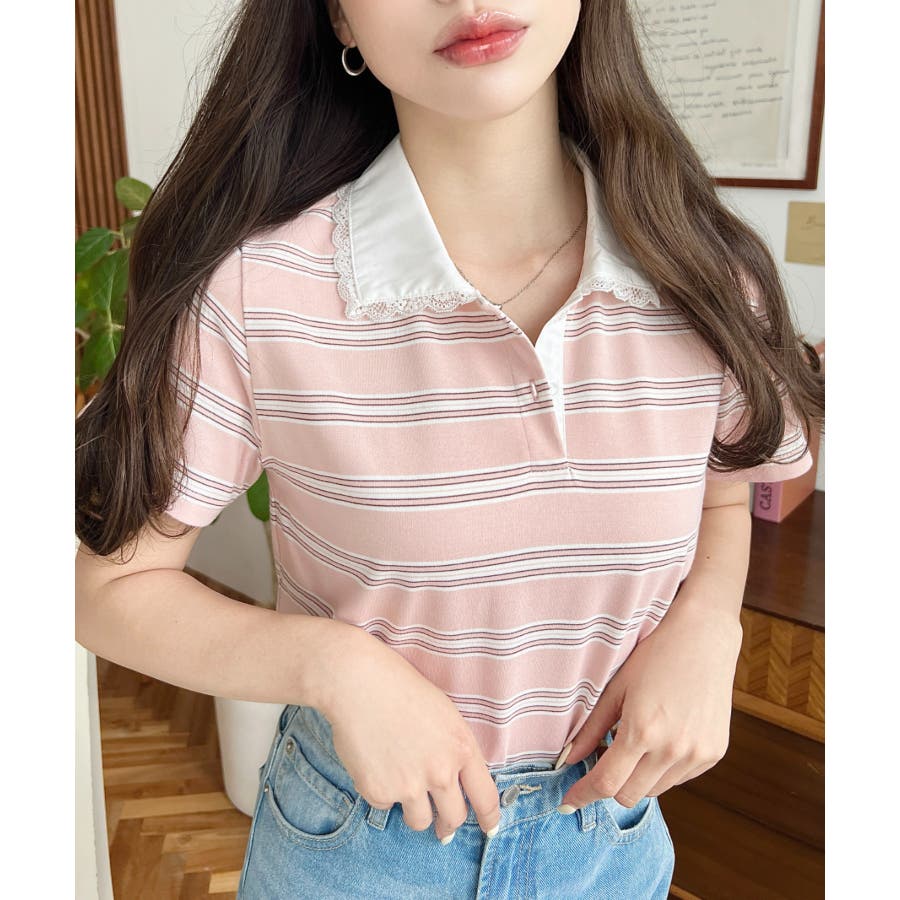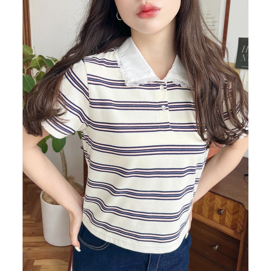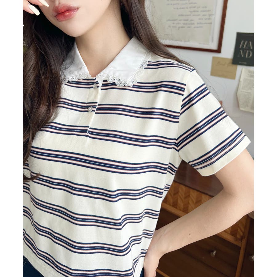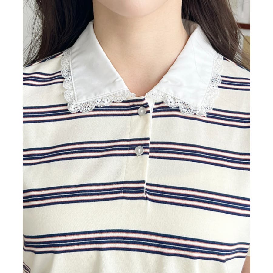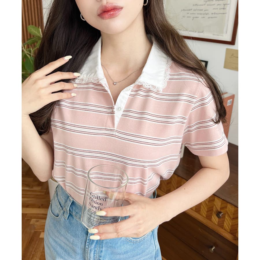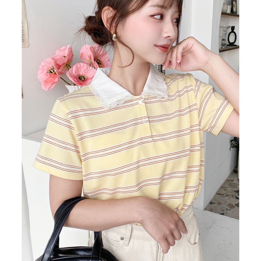 ・衿のみホワイトカラーのメリハリが可愛く、さらにレース仕様がトレンドコーデにぴったり!フェミニン要素をプラスした今っぽポロシャツです。