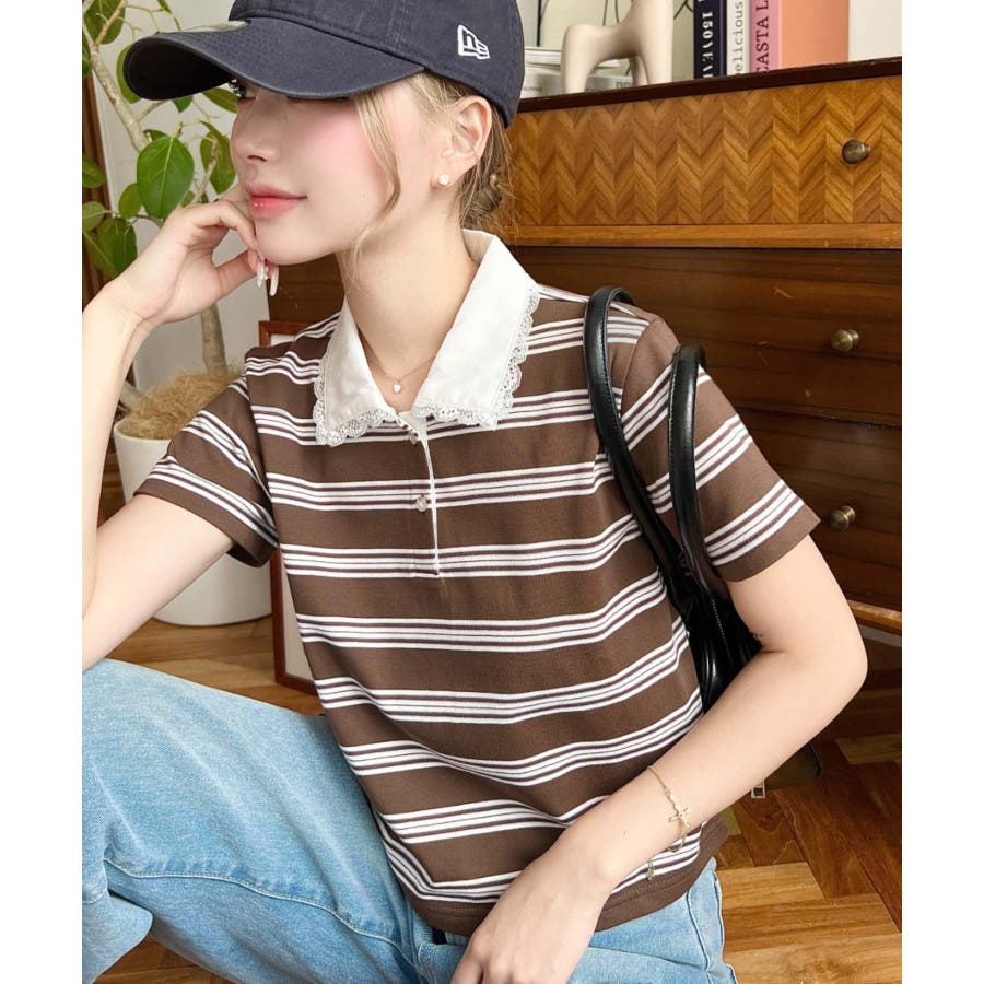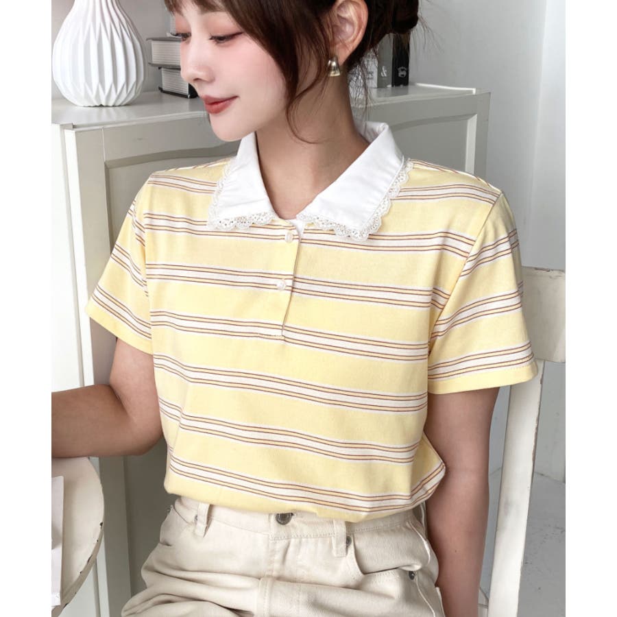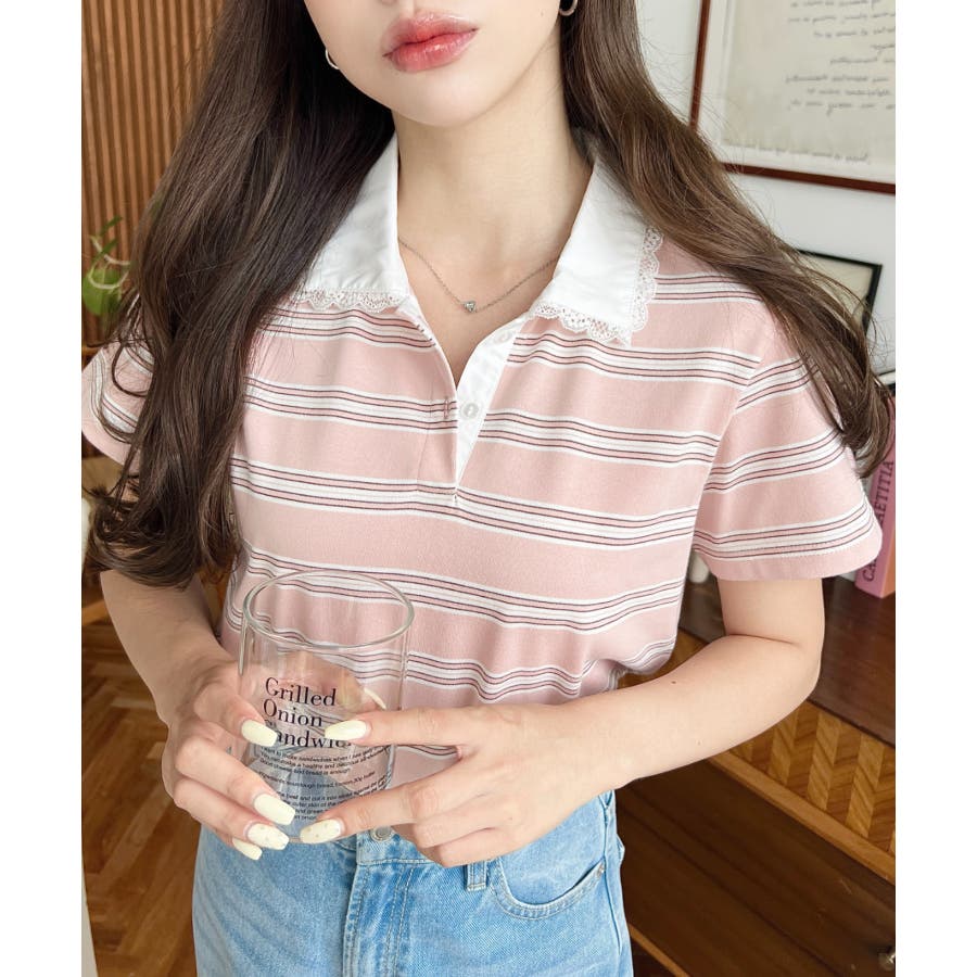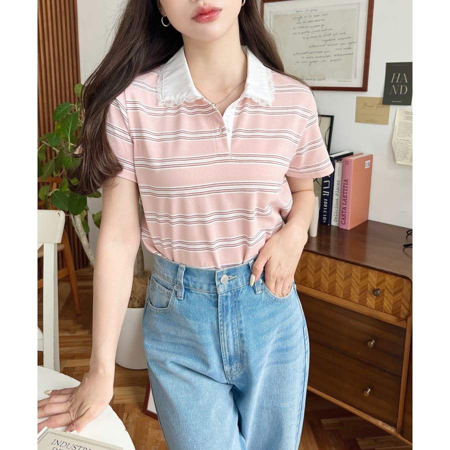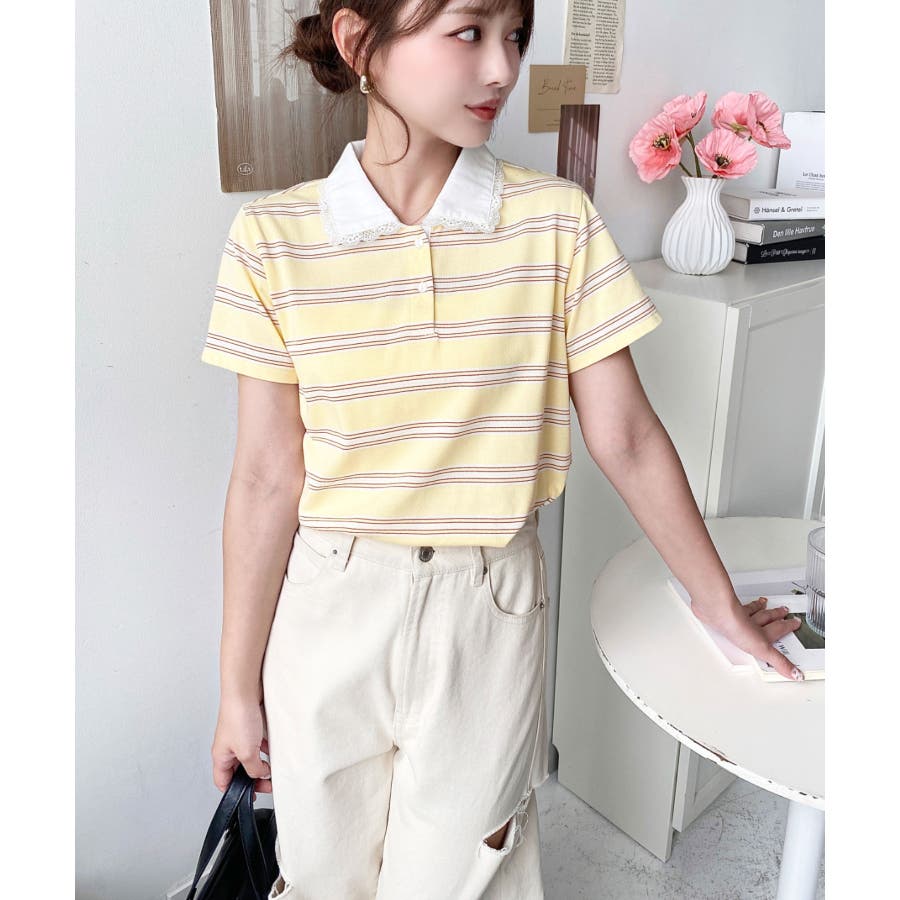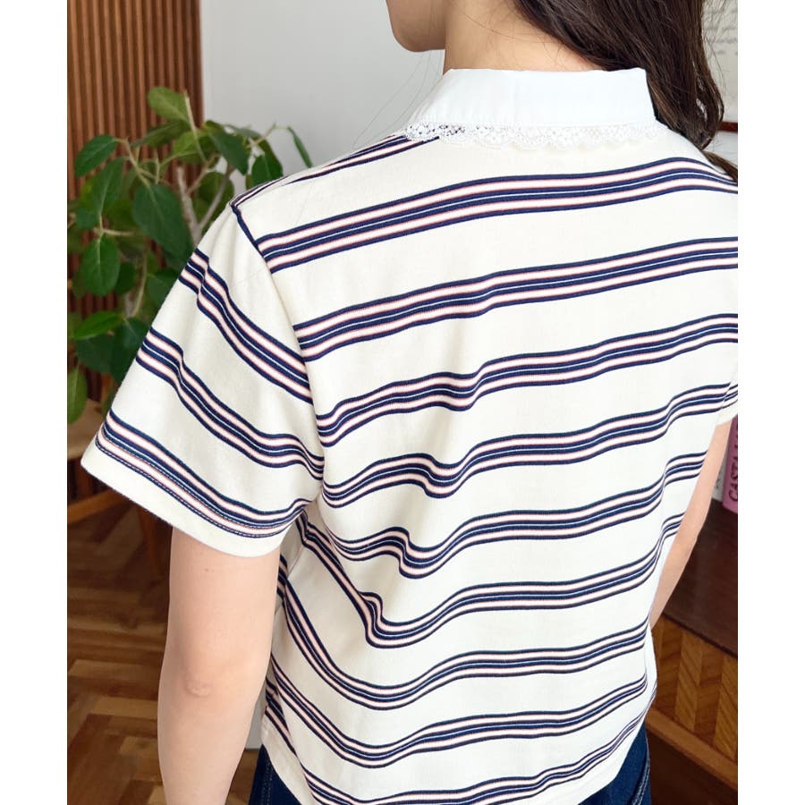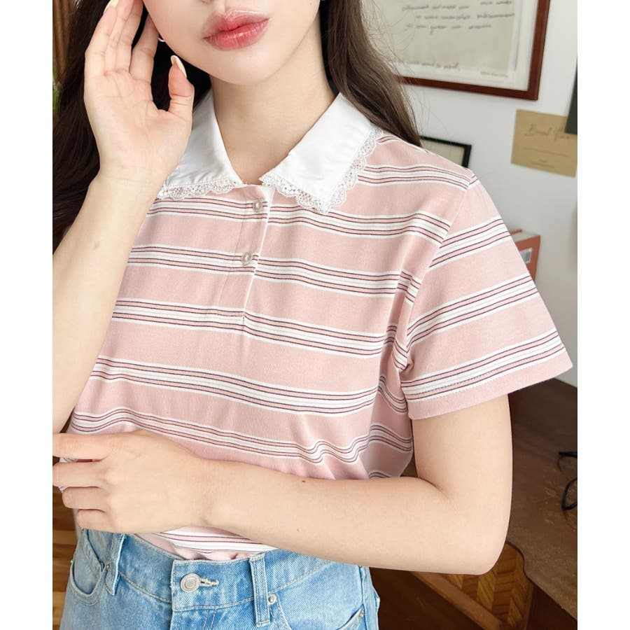 ・衿のみホワイトカラーのメリハリが可愛く、さらにレース仕様がトレンドコーデにぴったり!フェミニン要素をプラスした今っぽポロシャツです。
