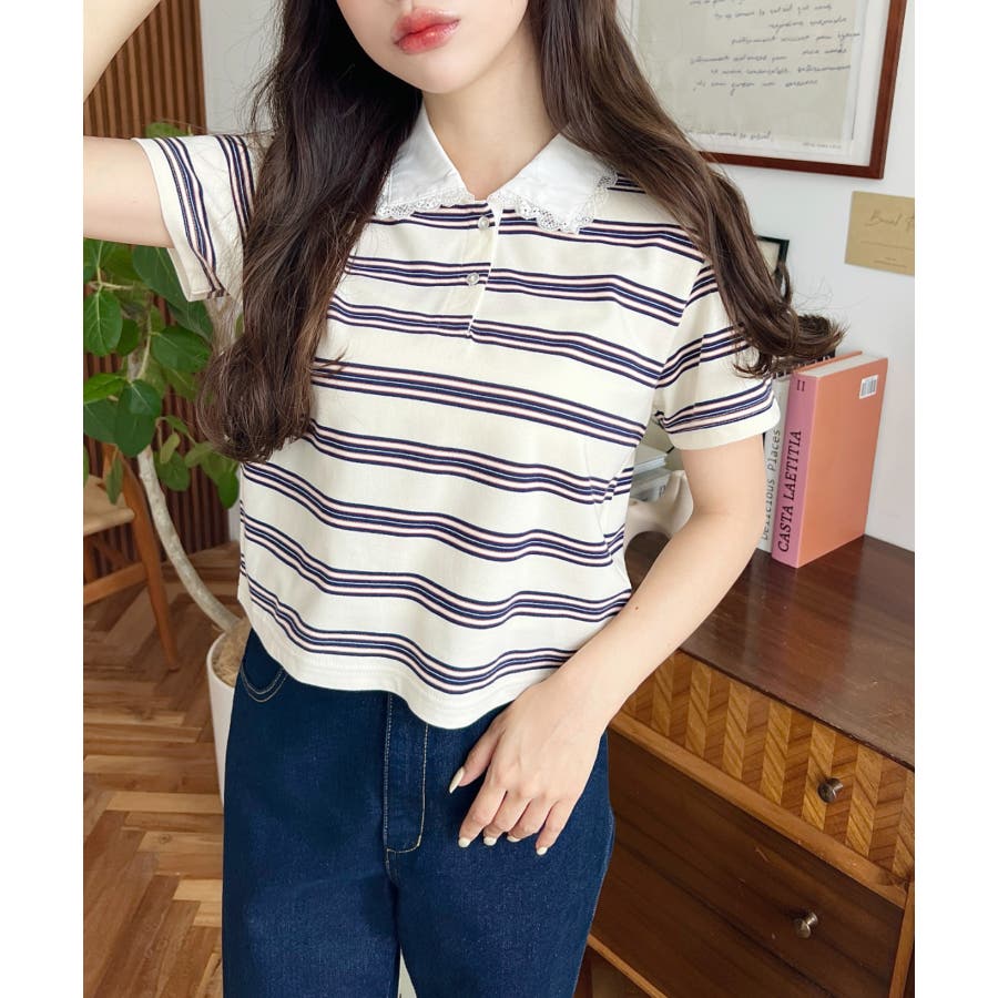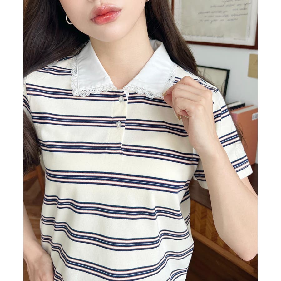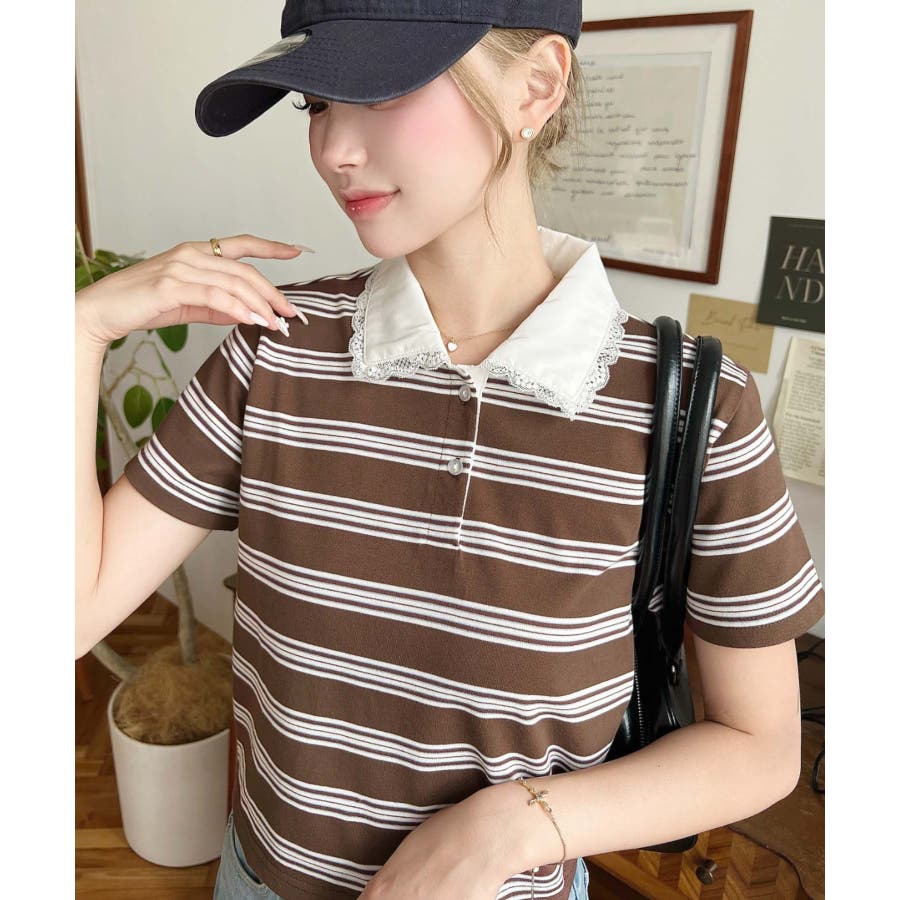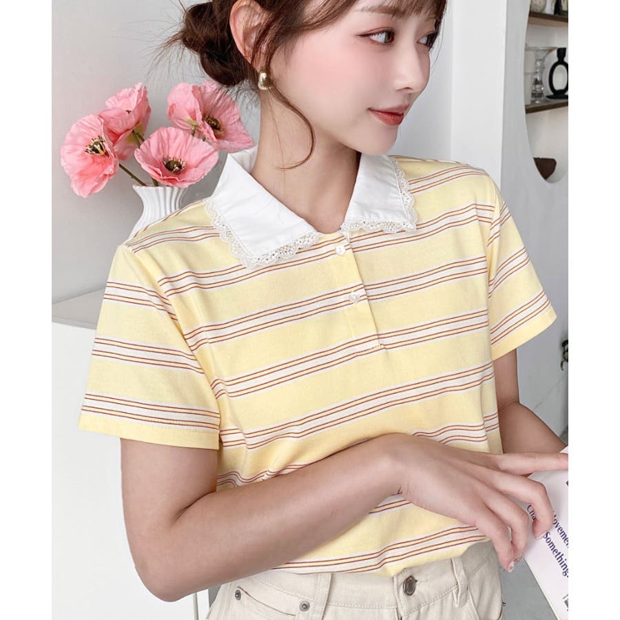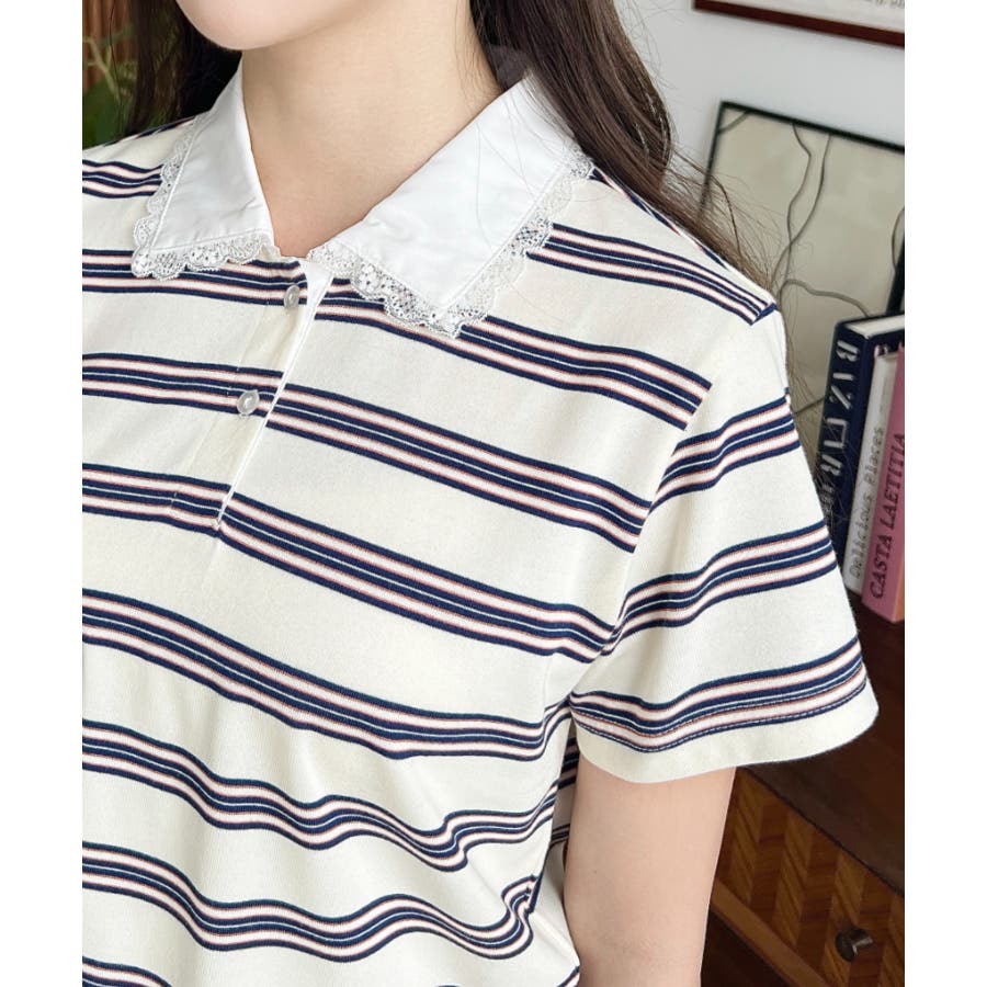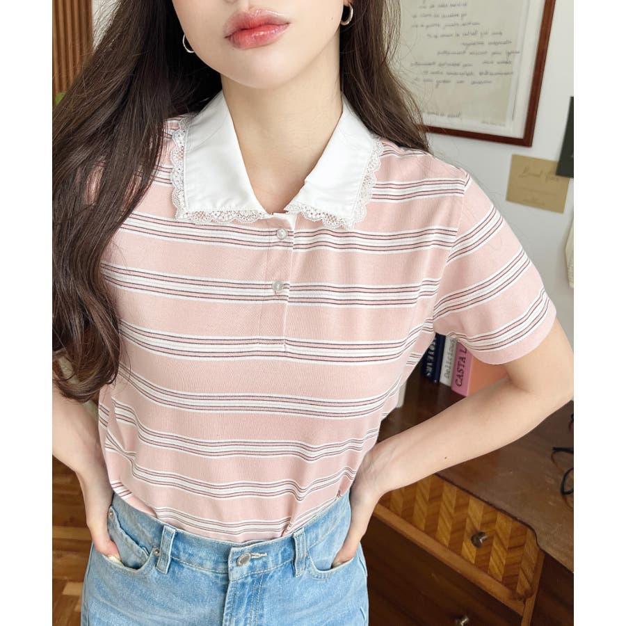 ・衿のみホワイトカラーのメリハリが可愛く、さらにレース仕様がトレンドコーデにぴったり!フェミニン要素をプラスした今っぽポロシャツです。