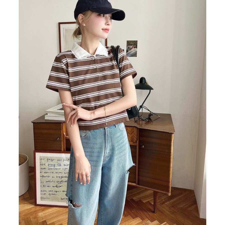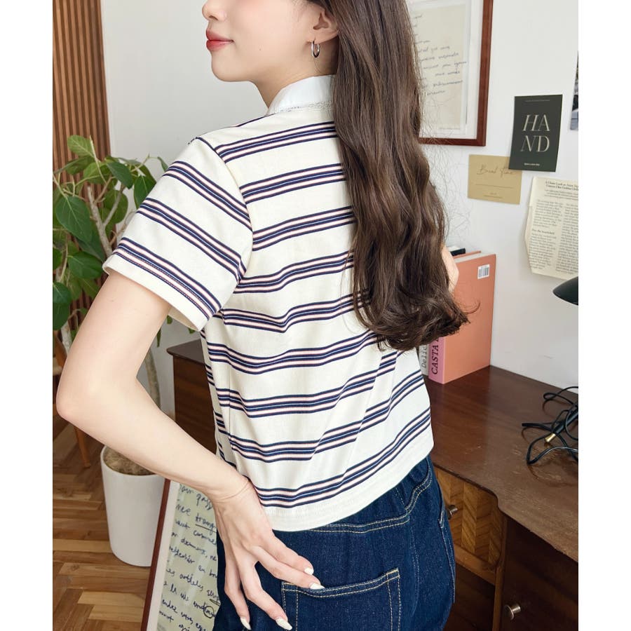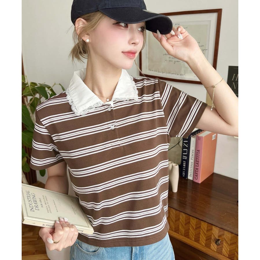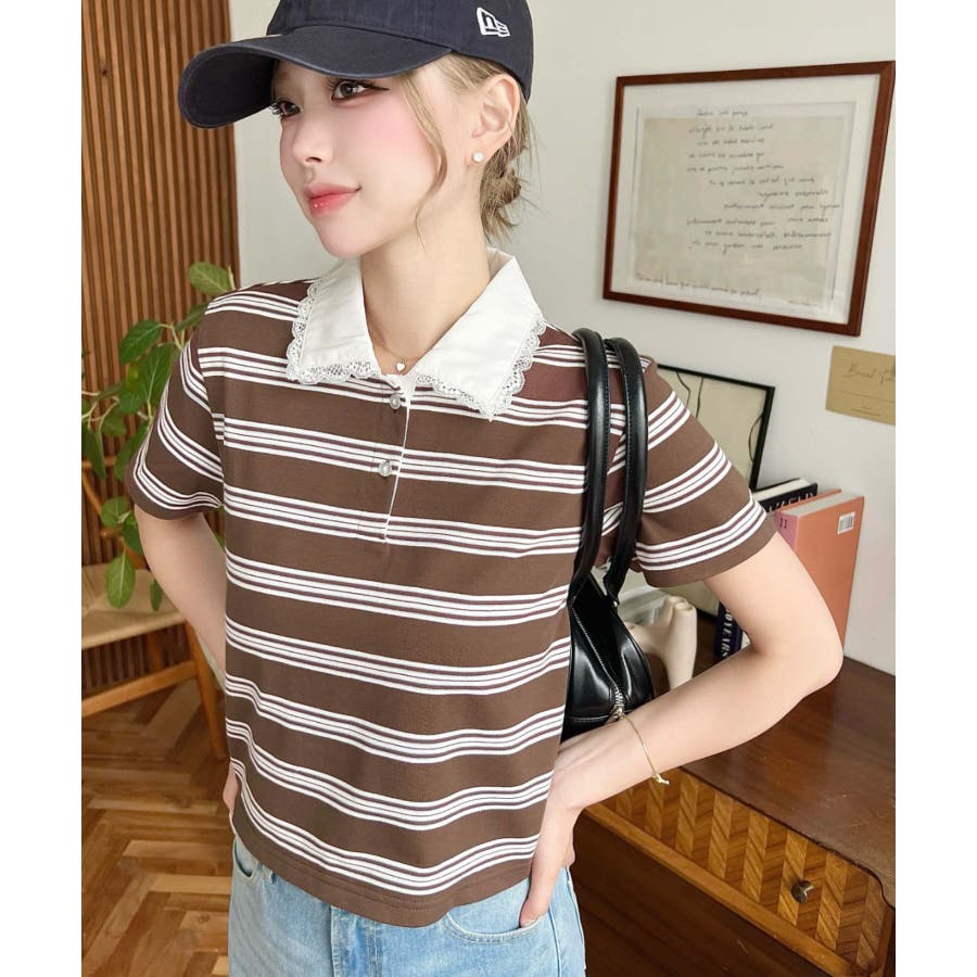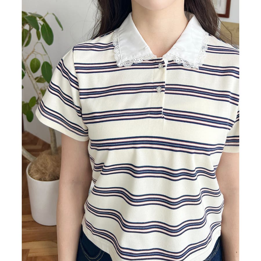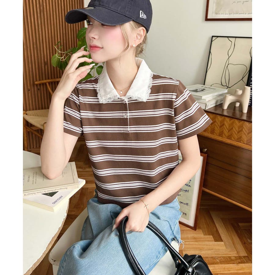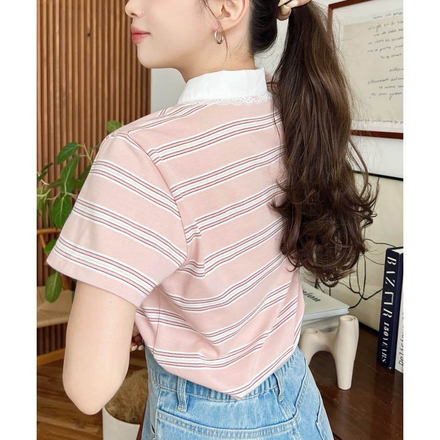 ・衿のみホワイトカラーのメリハリが可愛く、さらにレース仕様がトレンドコーデにぴったり!フェミニン要素をプラスした今っぽポロシャツです。