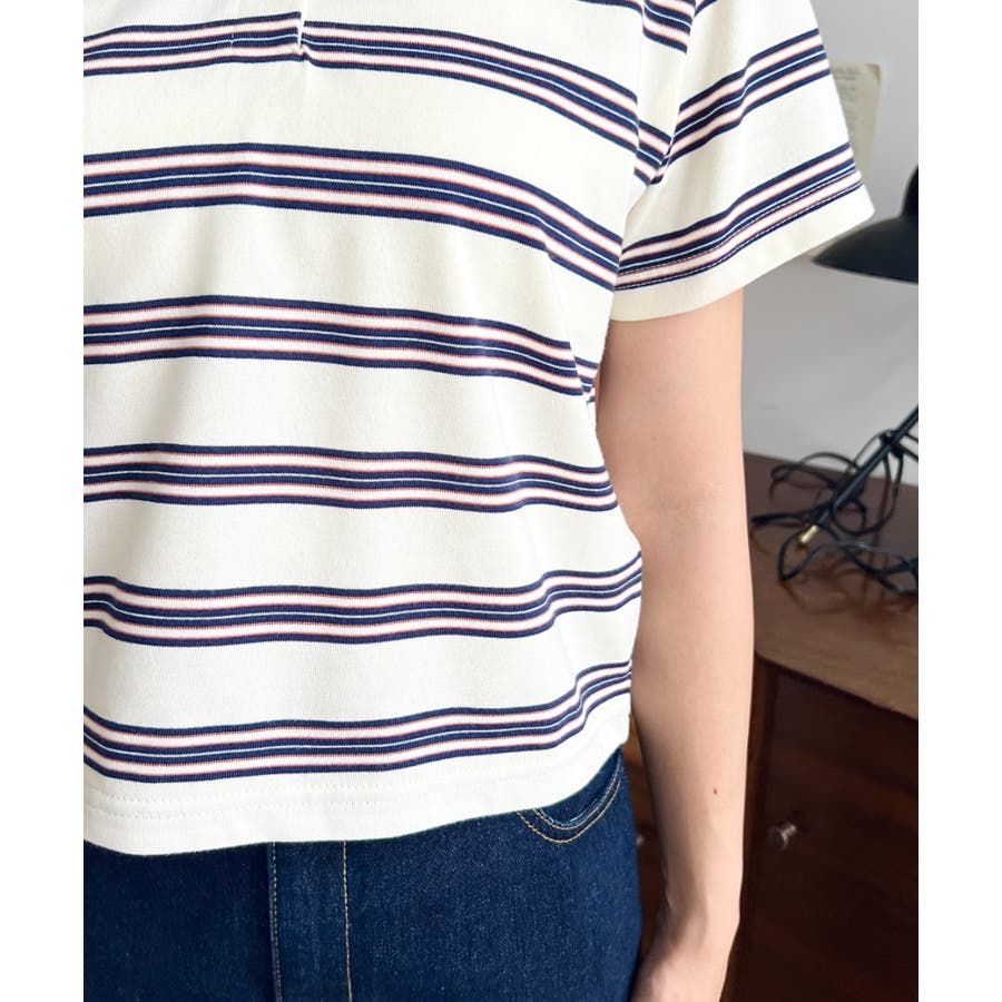 ・マルチな配色ボーダーが夏らしくカジュアルコーデにぴったり!ポロシャツデザインできちんと感もあるトップスです♪