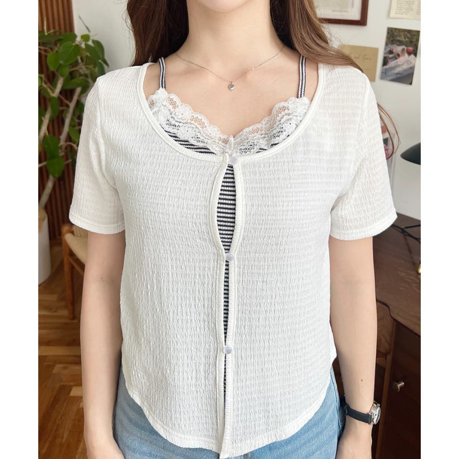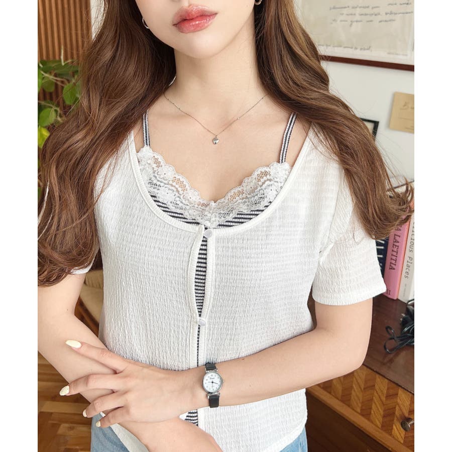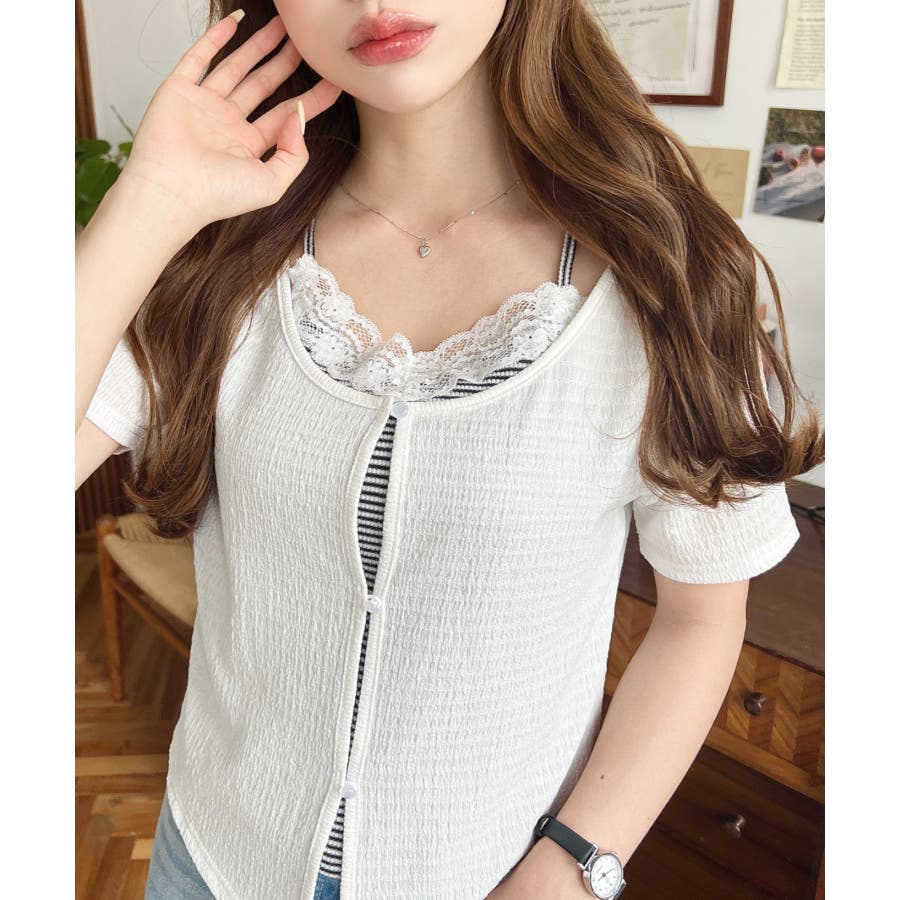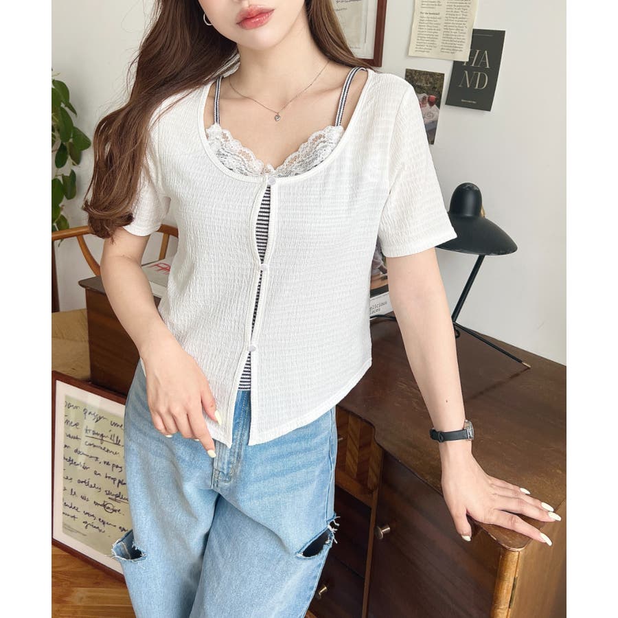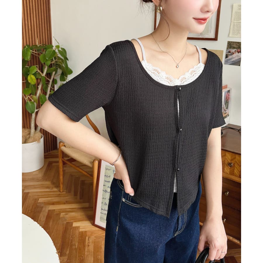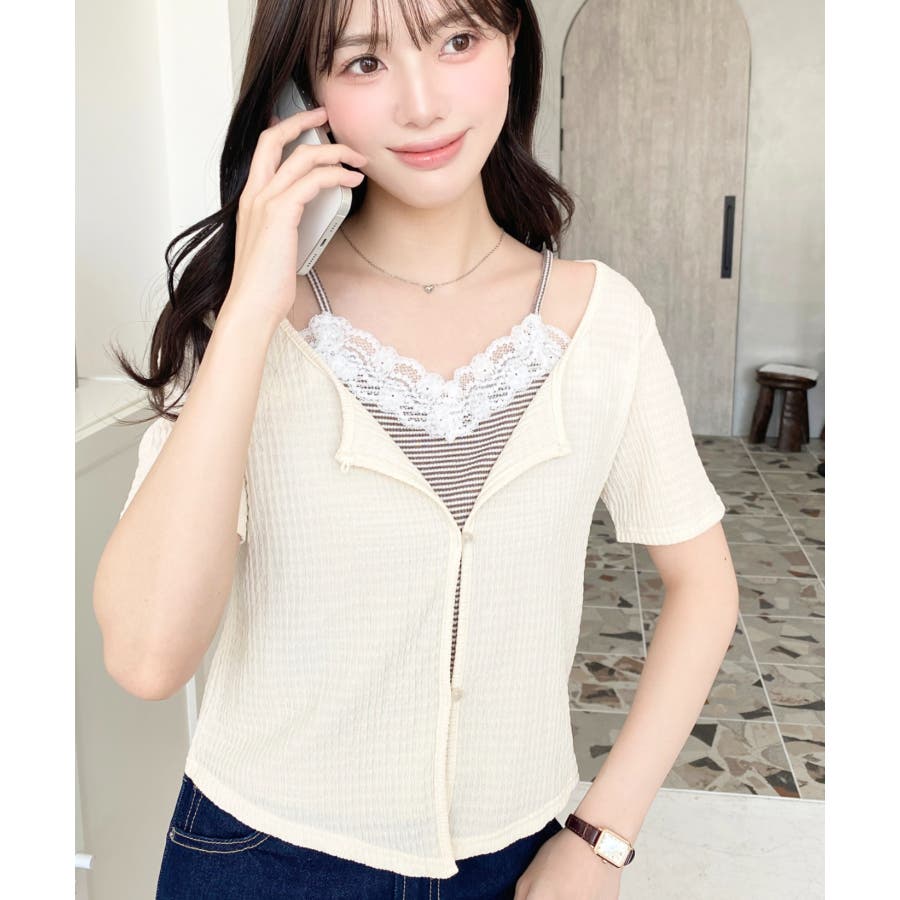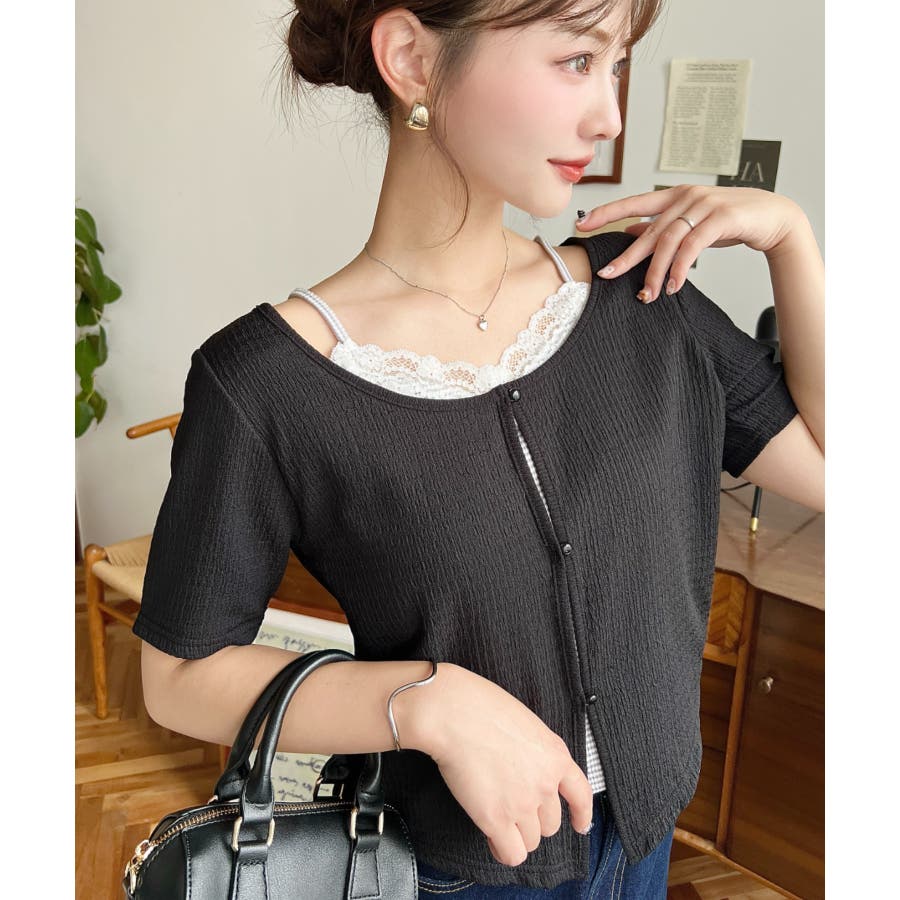 キャミレイヤード風半袖トップス