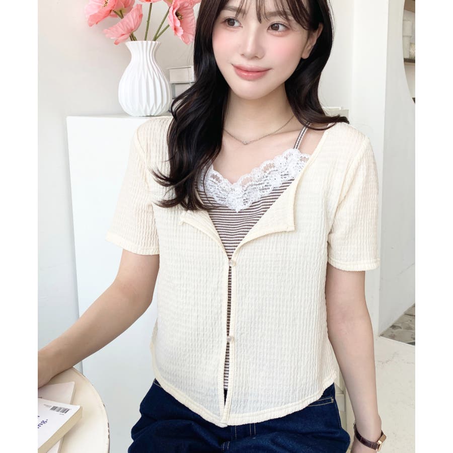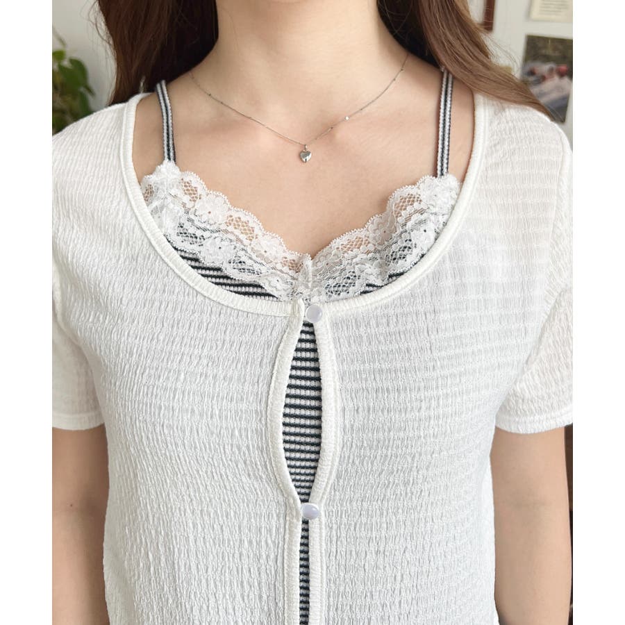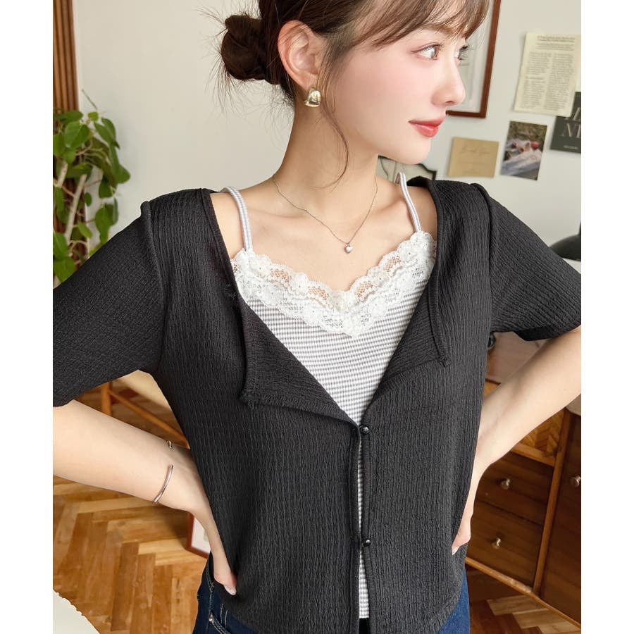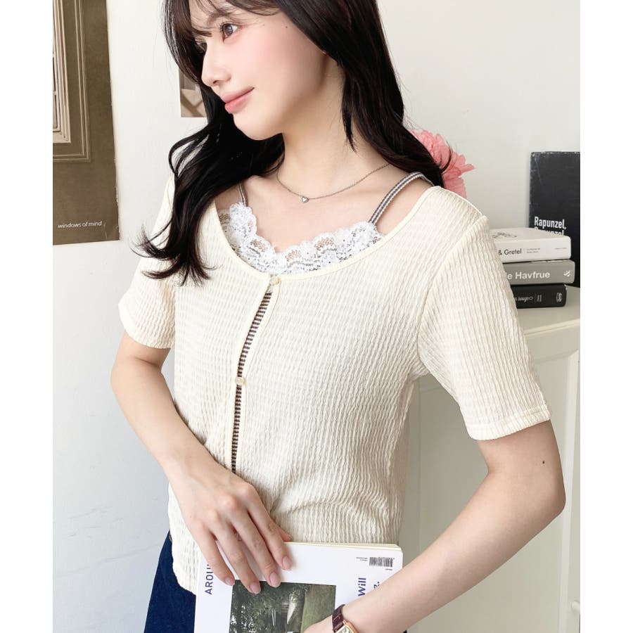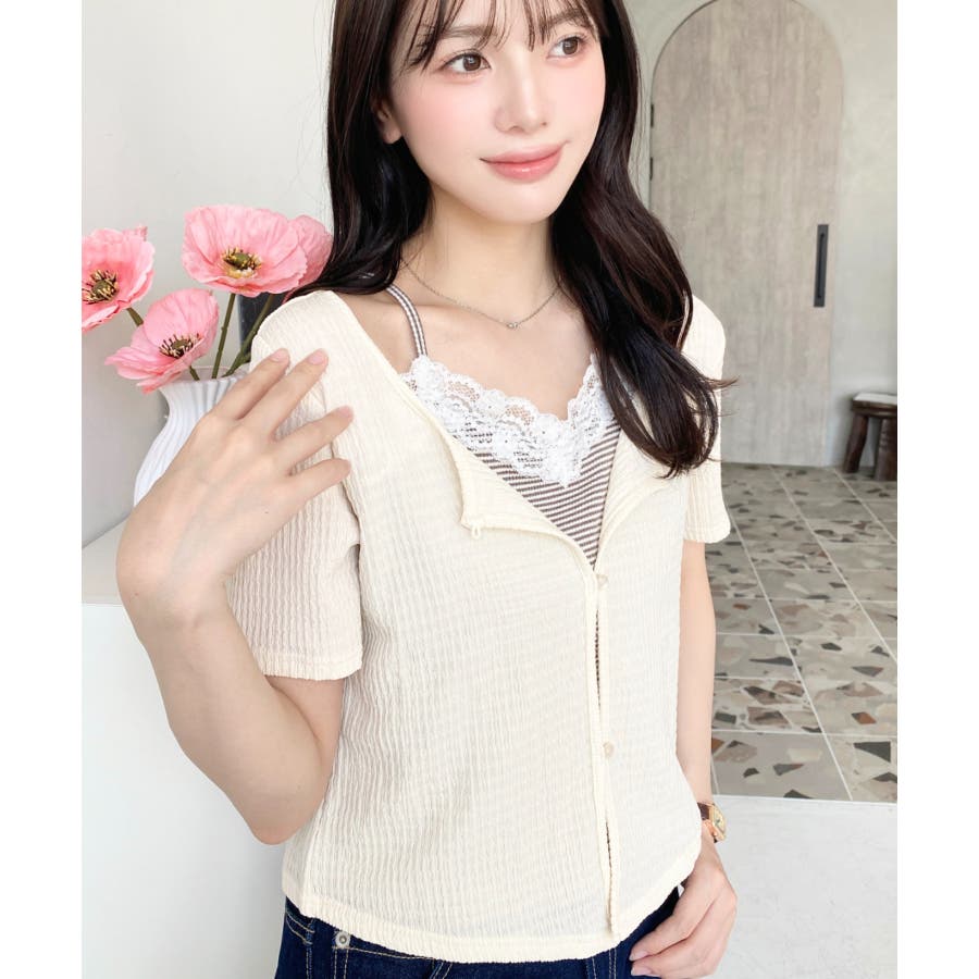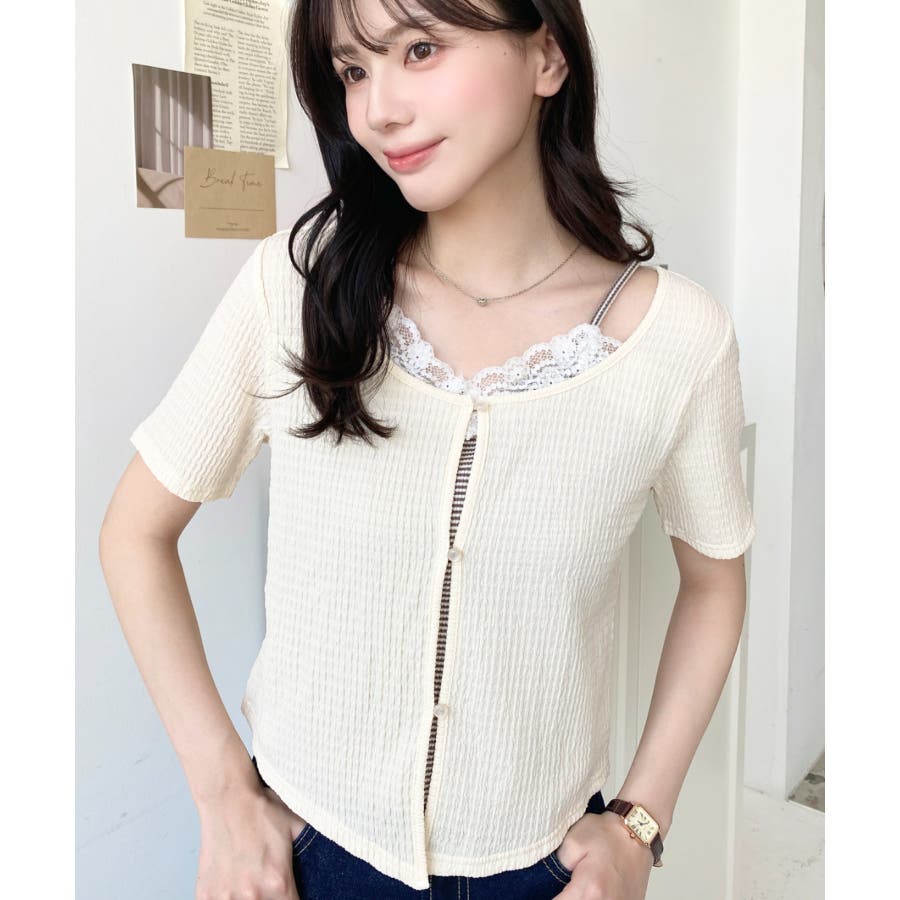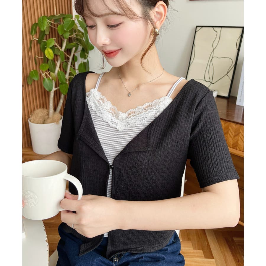キャミレイヤード風半袖トップス
