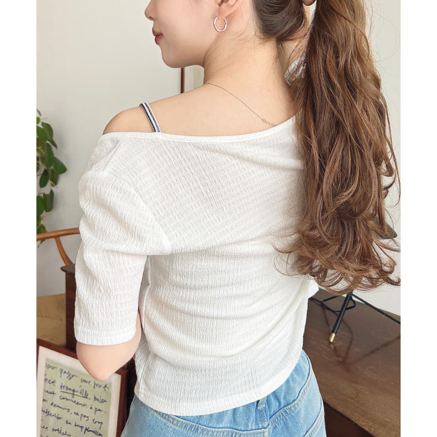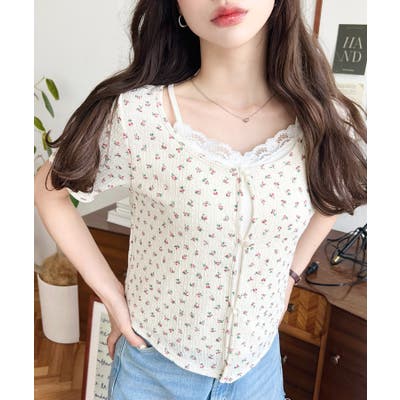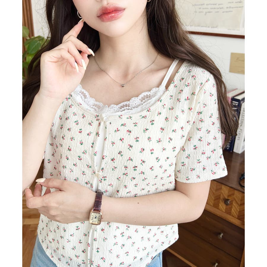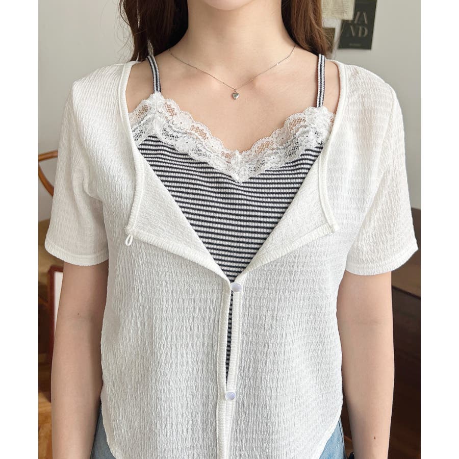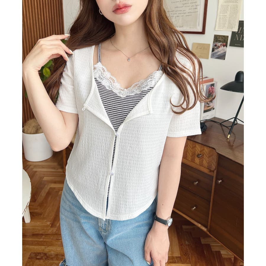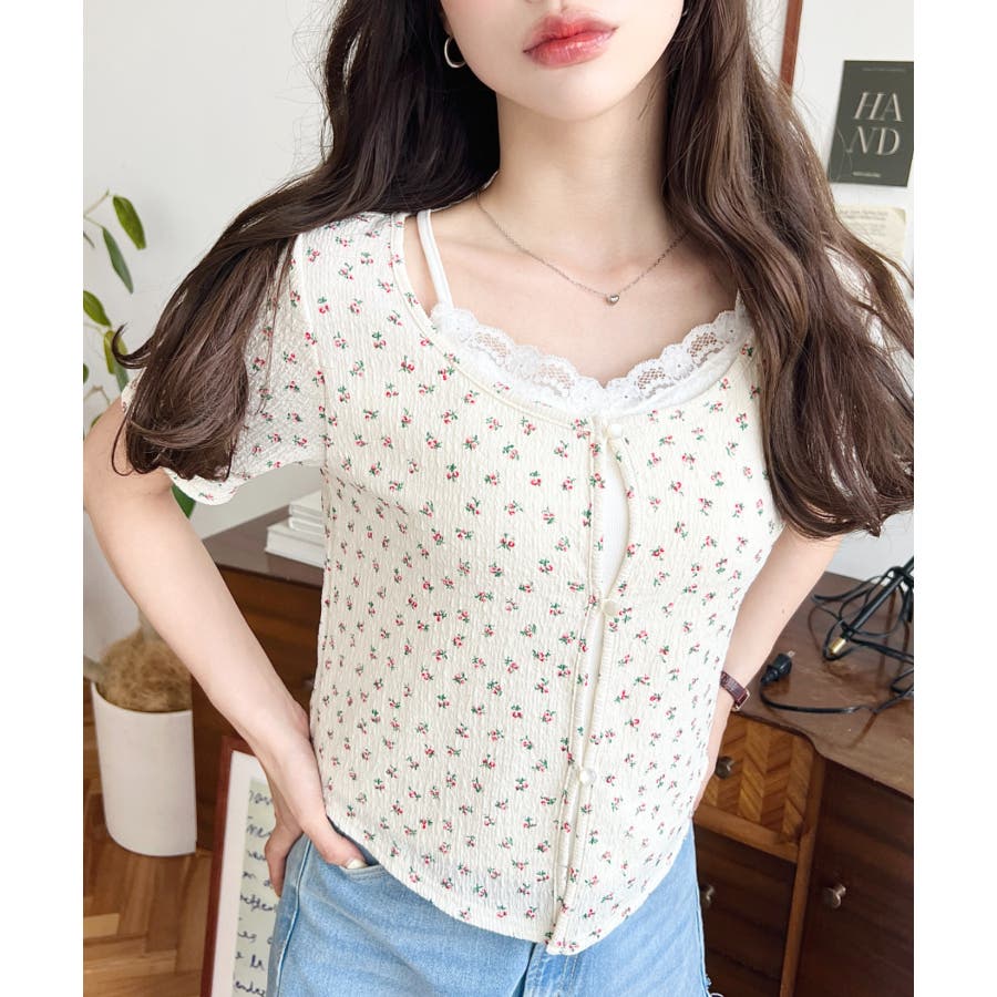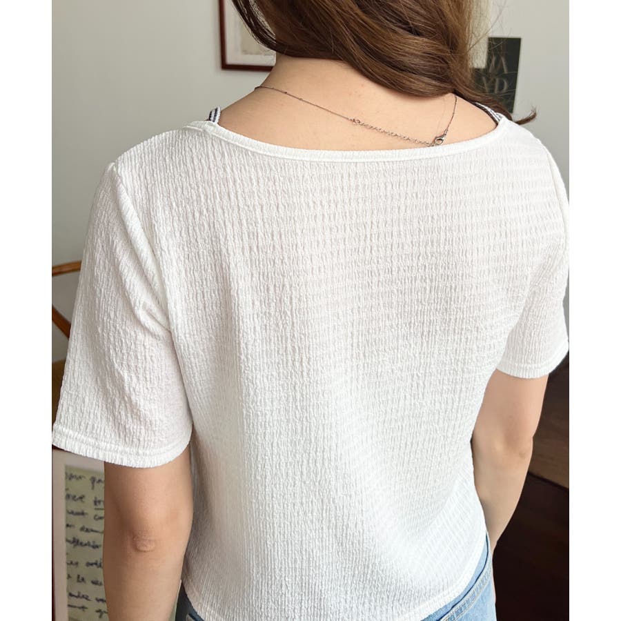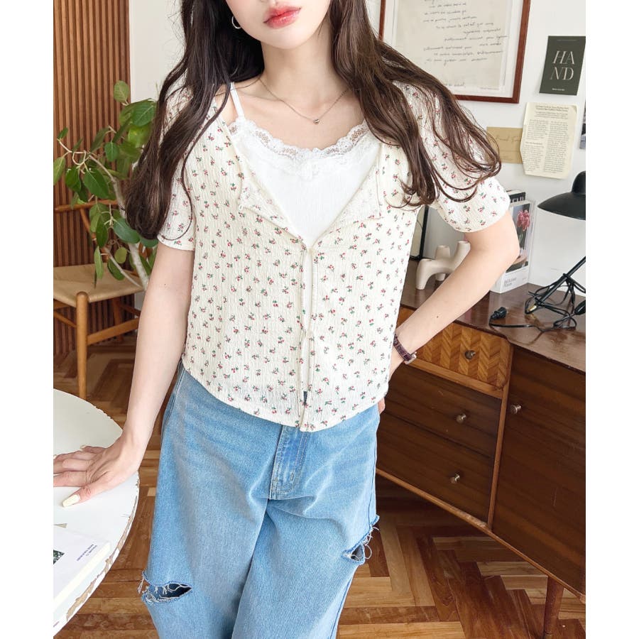 キャミレイヤード風半袖トップス