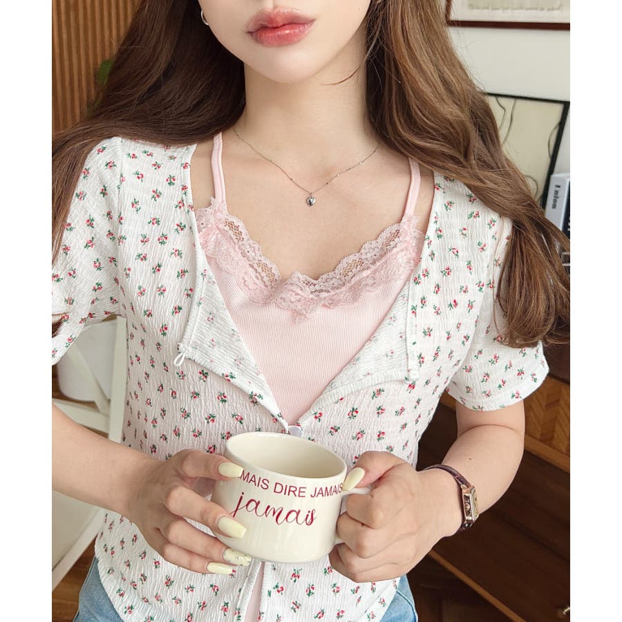 ※キャミソールは前身頃のみの仕様となり、重ね着風デザインです。取り外し不可。