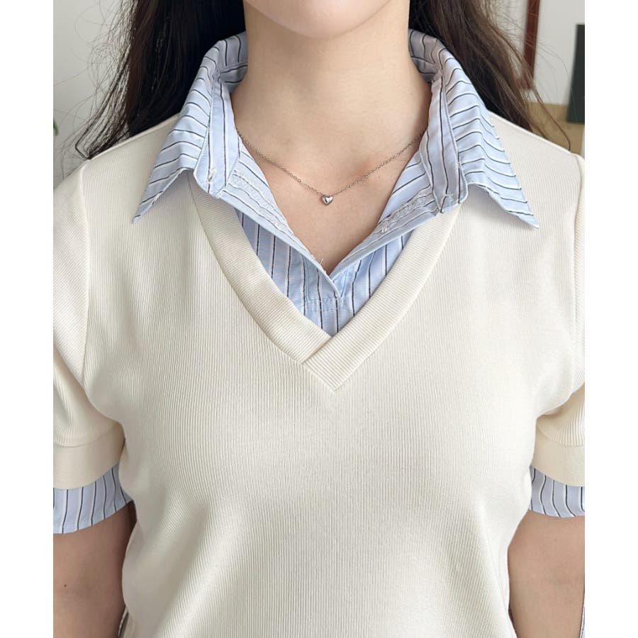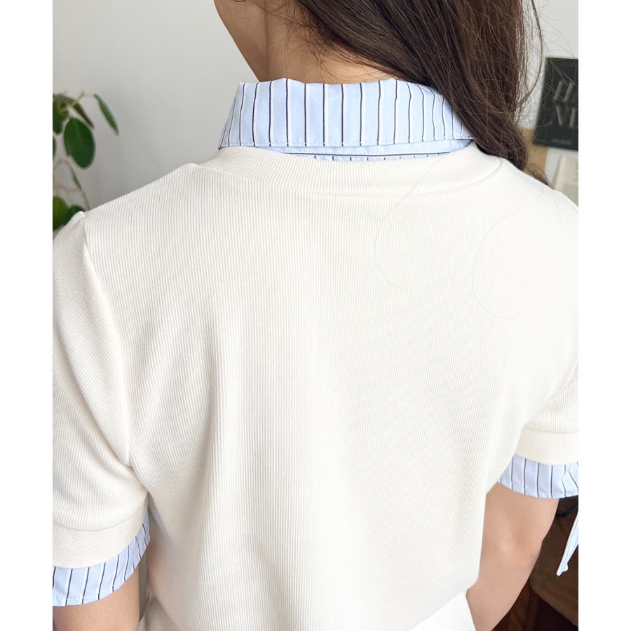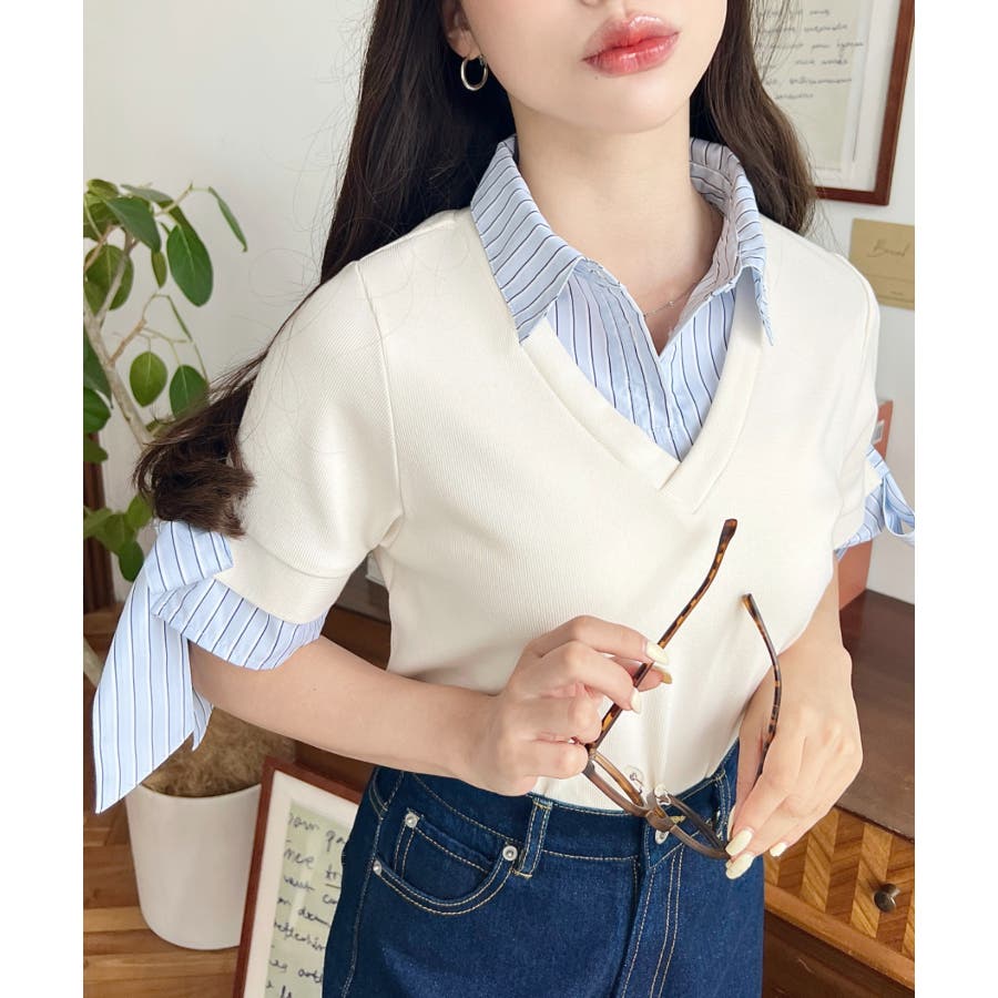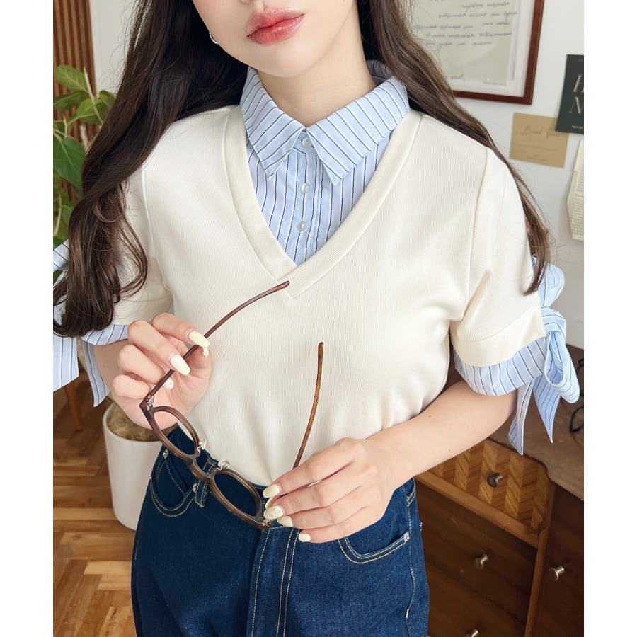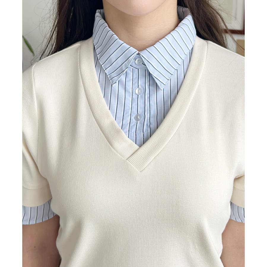 ・リブトップスにシャツがレイヤードされた、一枚で印象的な着映えしお洒落見えします♪