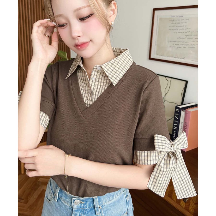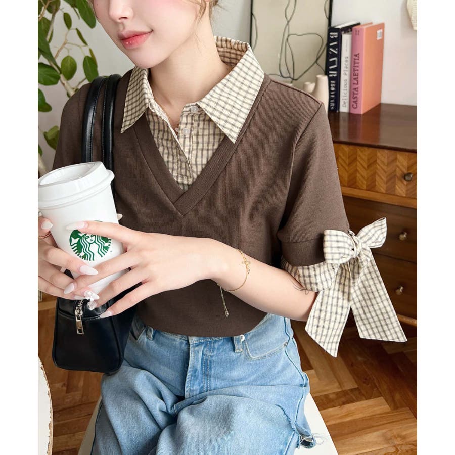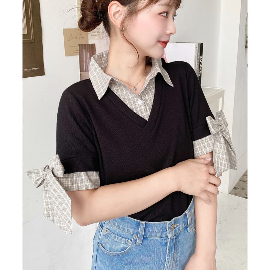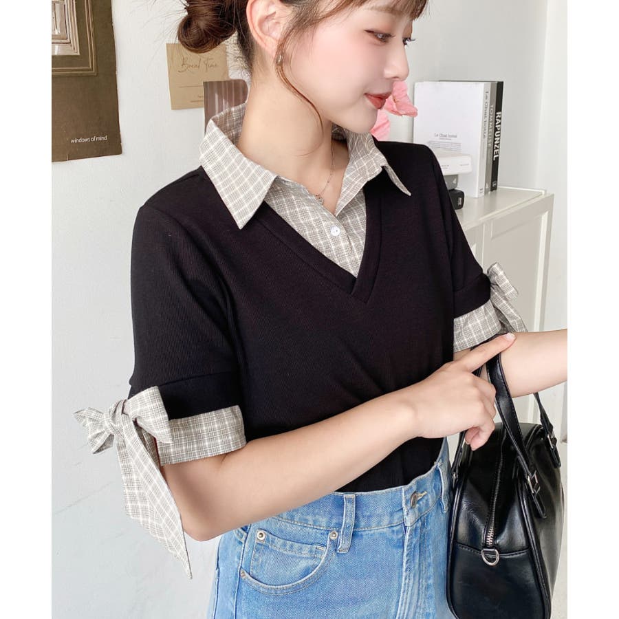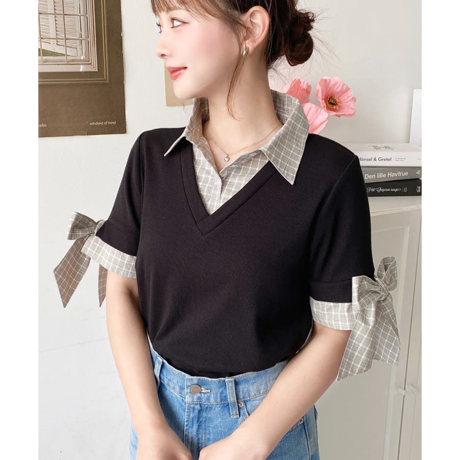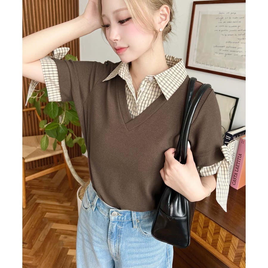【1枚でシャツを重ね着しているようなレイヤード風がお洒落上級者なトレンドトップス♪】