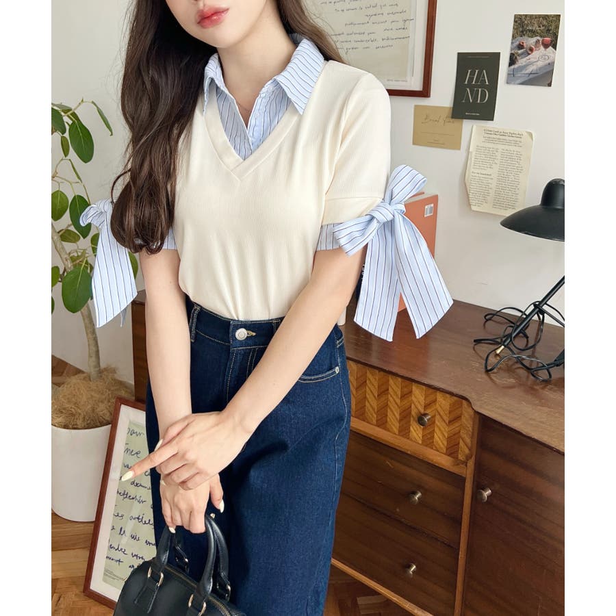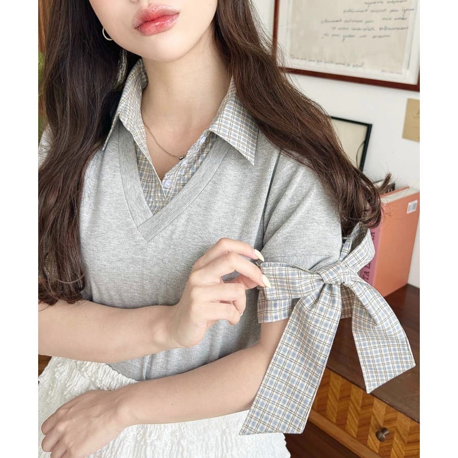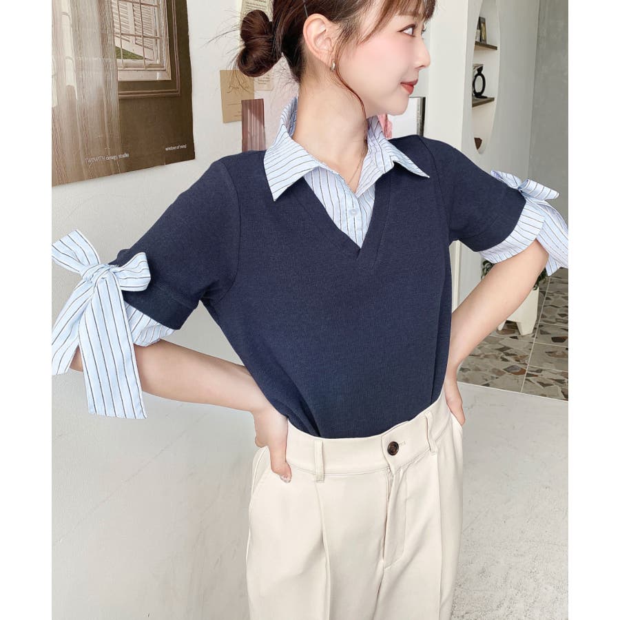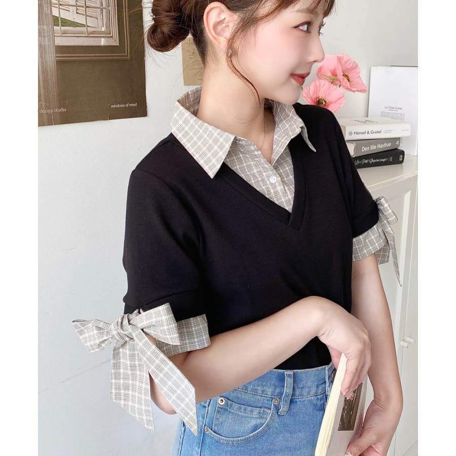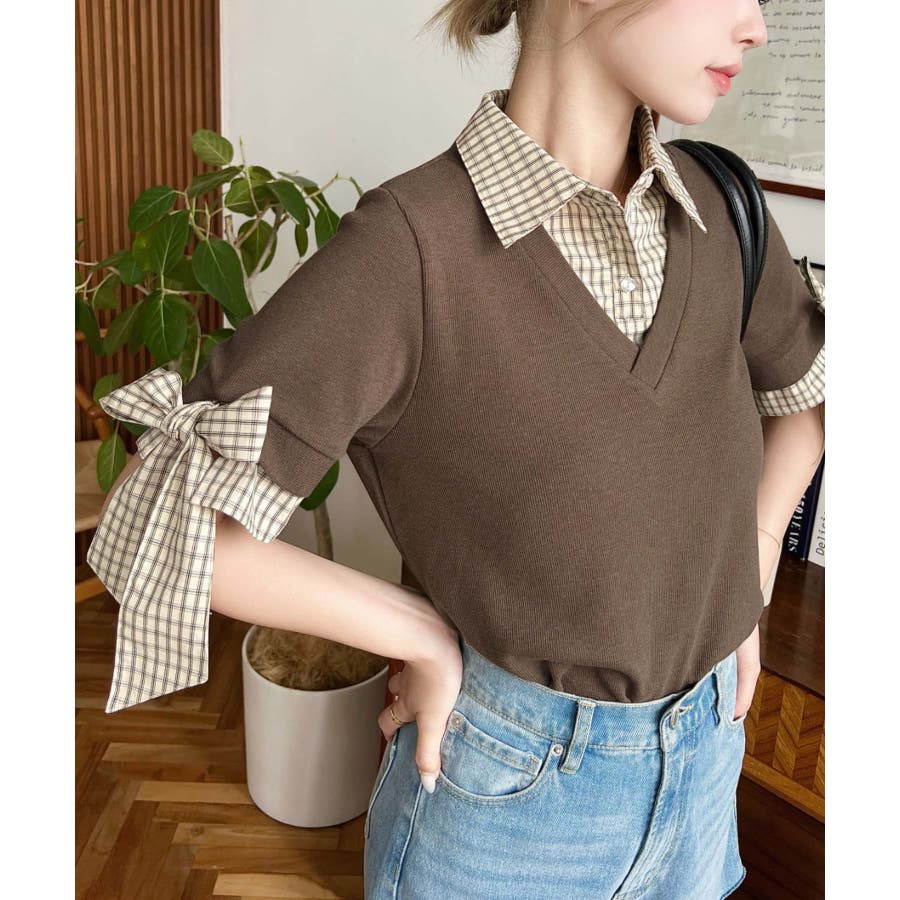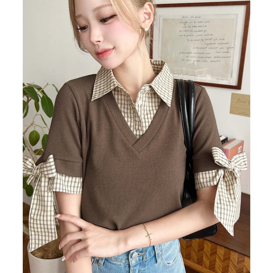 【1枚でシャツを重ね着しているようなレイヤード風がお洒落上級者なトレンドトップス♪】
