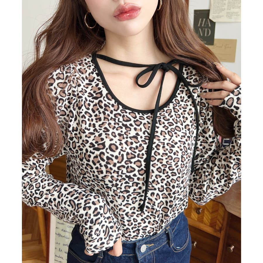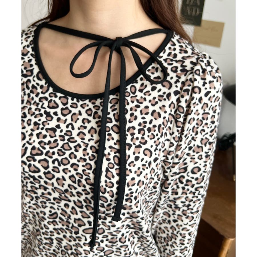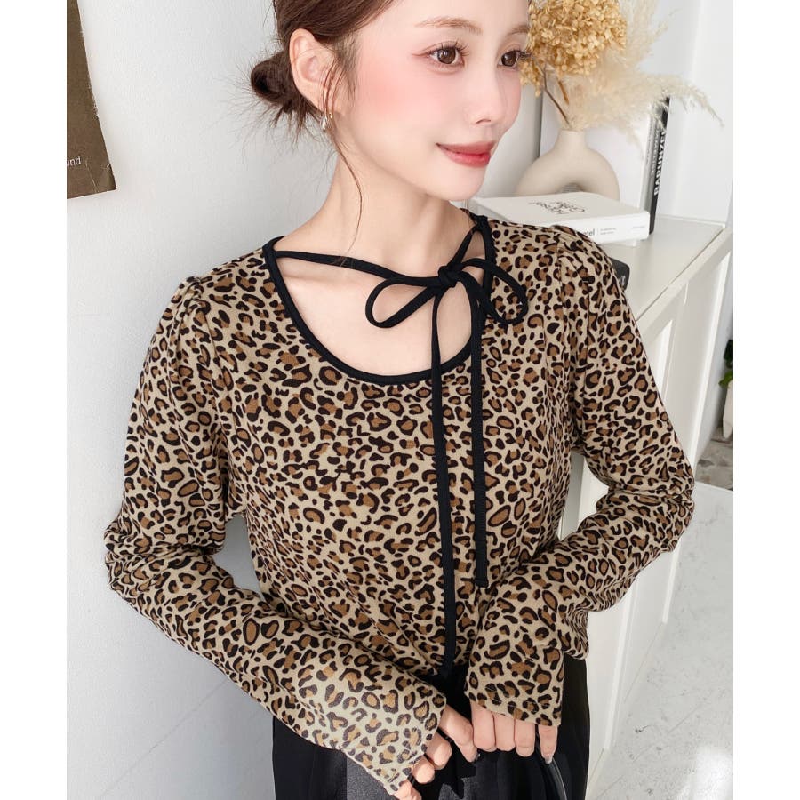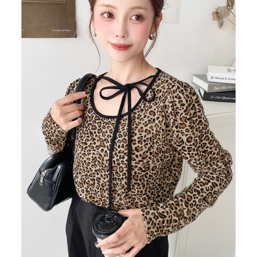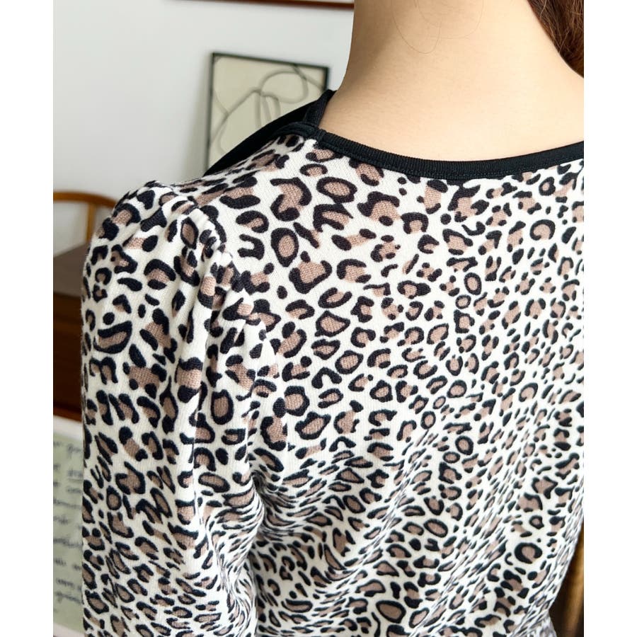 レオパードプリントバレエコアパフスリーブ長袖カットソー