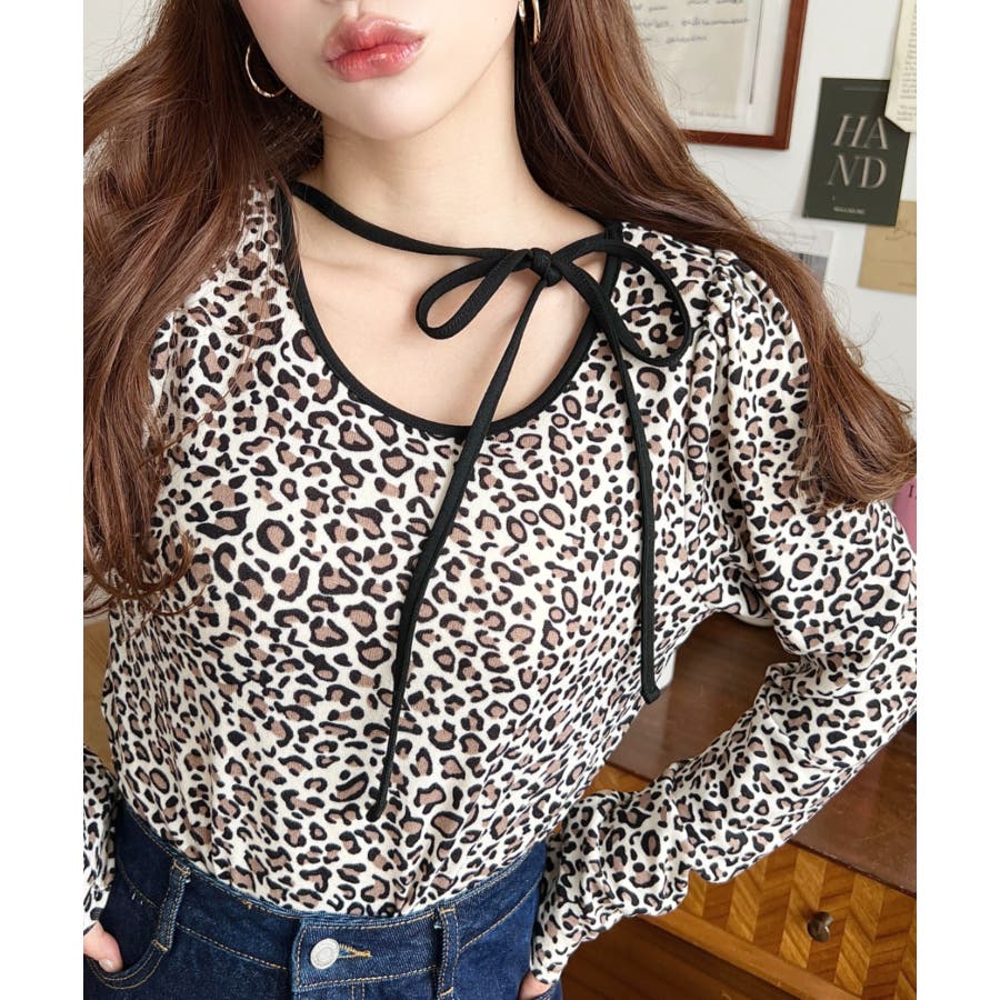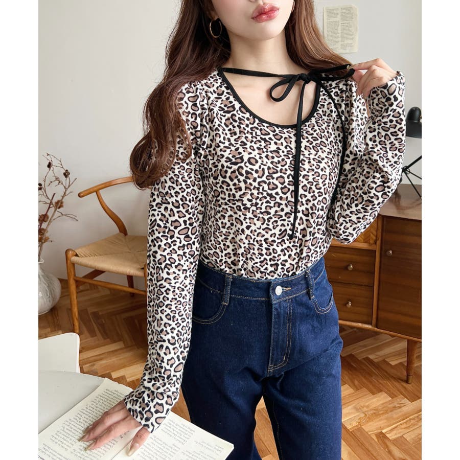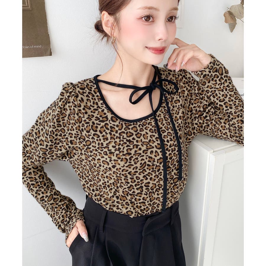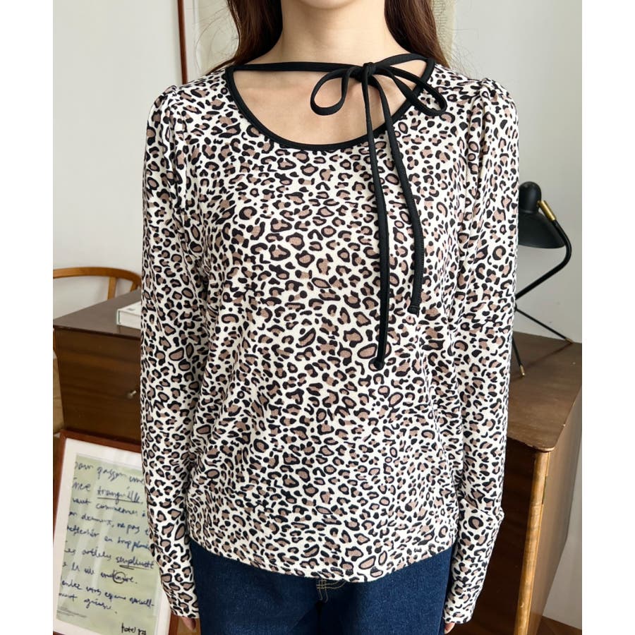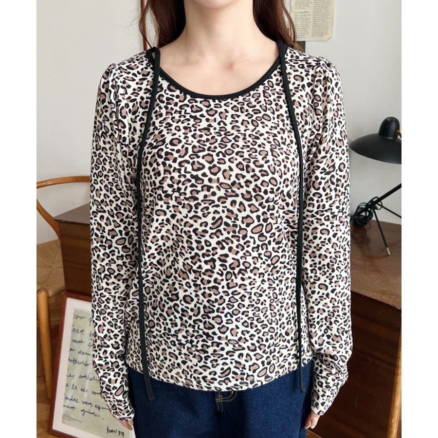 レオパードプリントバレエコアパフスリーブ長袖カットソー
