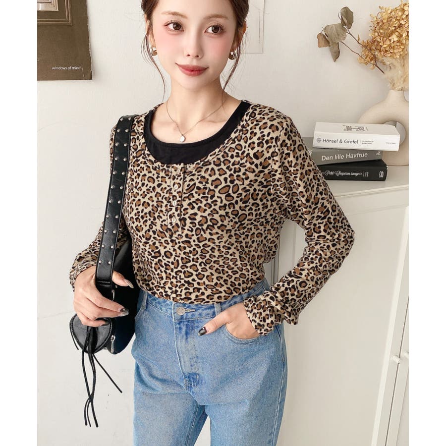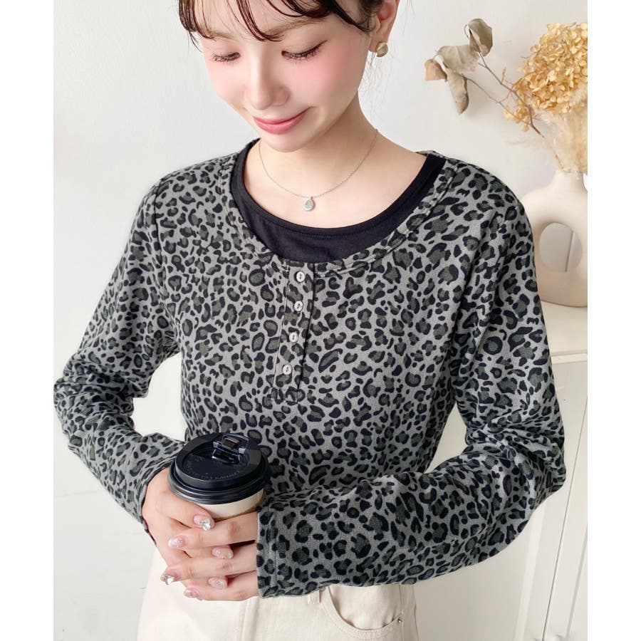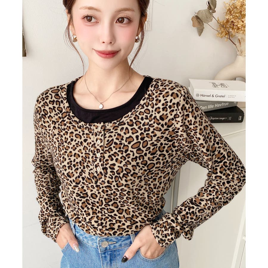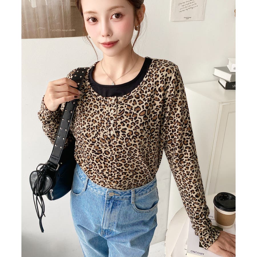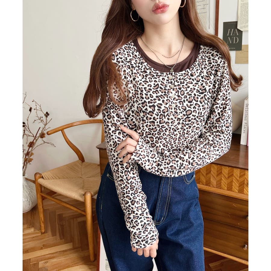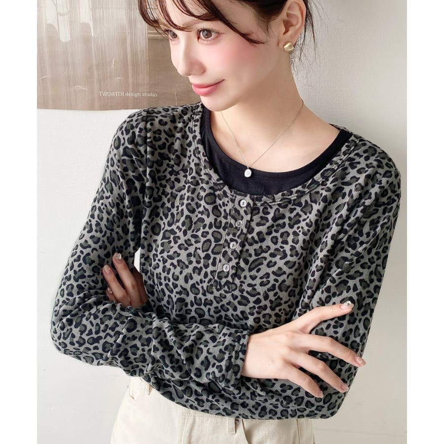 【無地じゃ物足りない日に。レオパードで遊ぶ大人カジュアルな重ね着風ロンTが新登場◎】