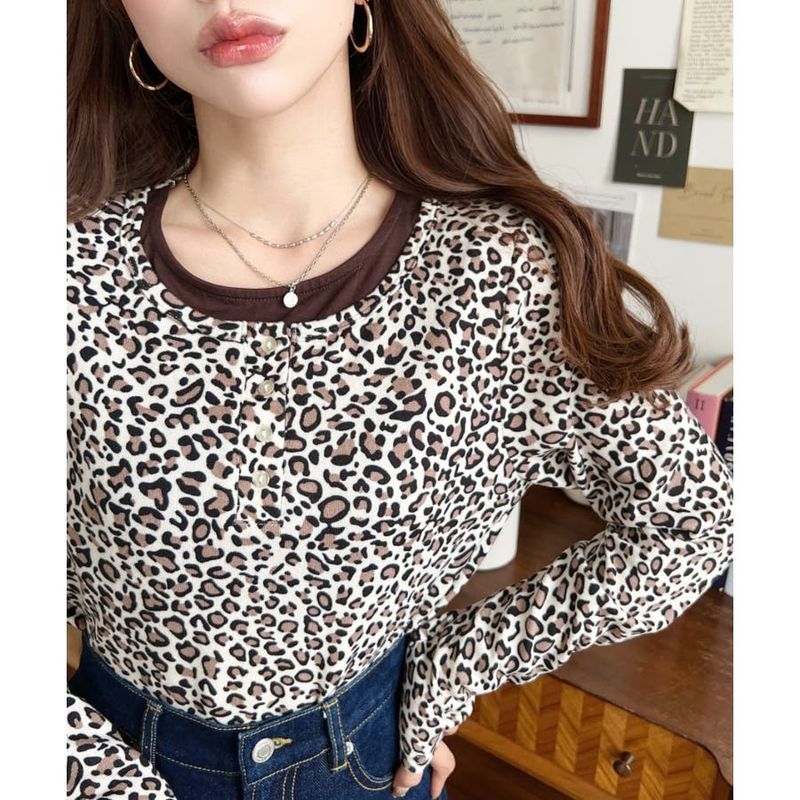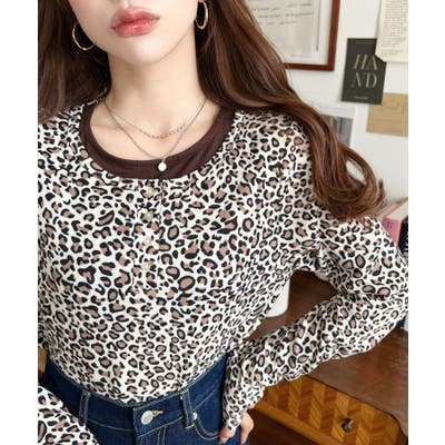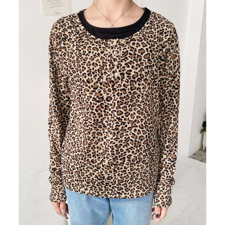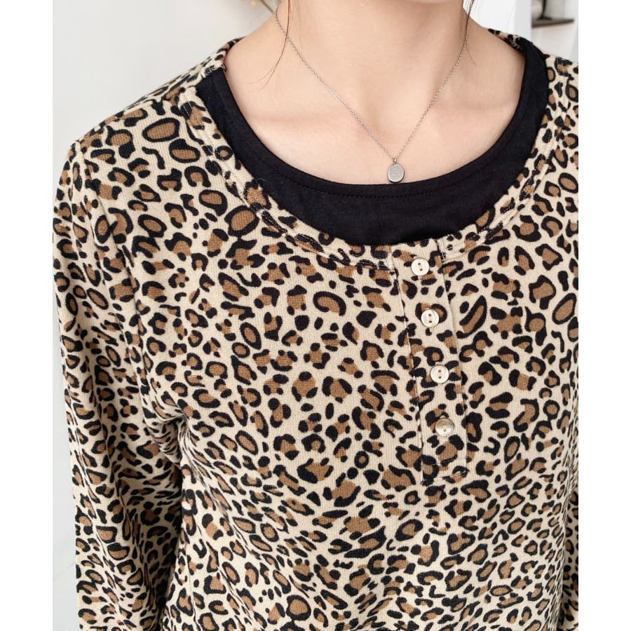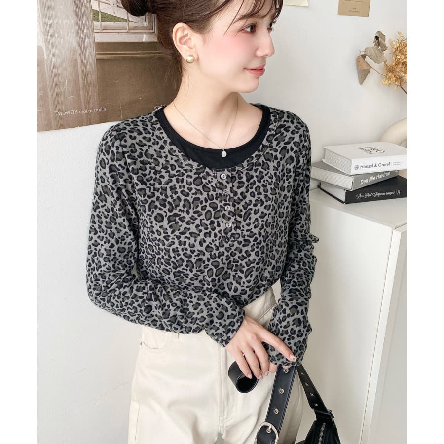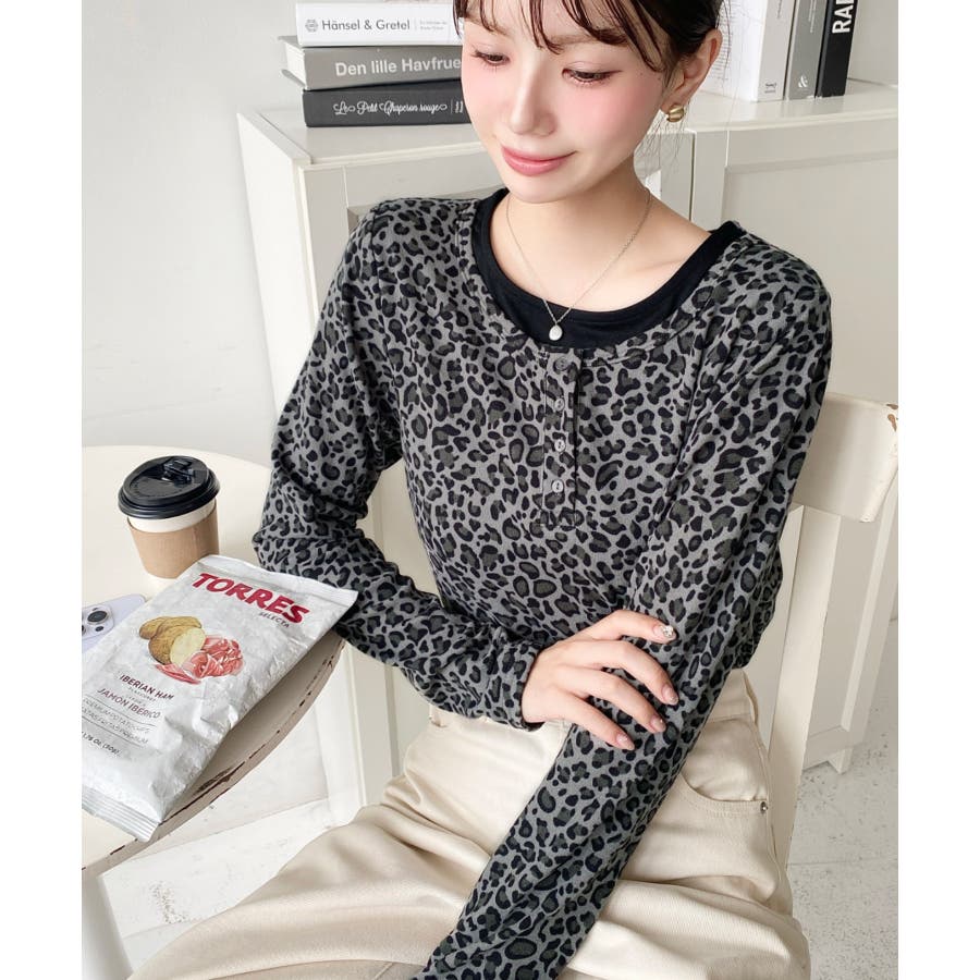 【無地じゃ物足りない日に。レオパードで遊ぶ大人カジュアルな重ね着風ロンTが新登場◎】
