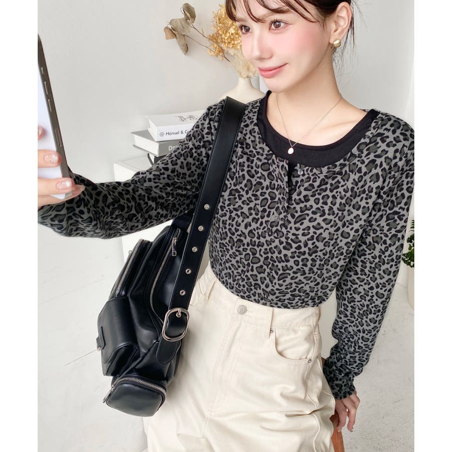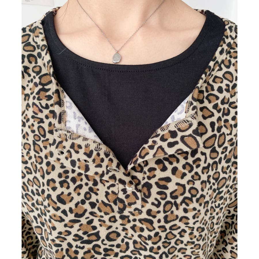 レイヤード風のデザインなので1枚で着るのはもちろん、コートやブルゾンを羽織ってレオパード柄をチラ見せさせるのも可愛いです◎
