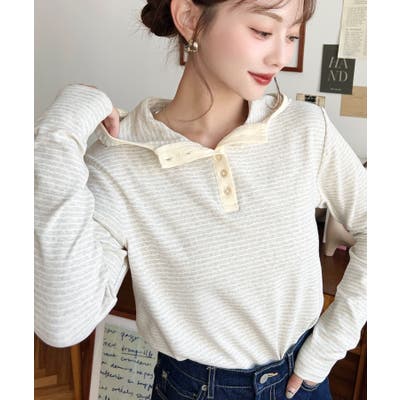 程よくゆとりがあってリラックス感が可愛いです!ヘンリーネックで首元がすっきり見えるのも嬉しい。