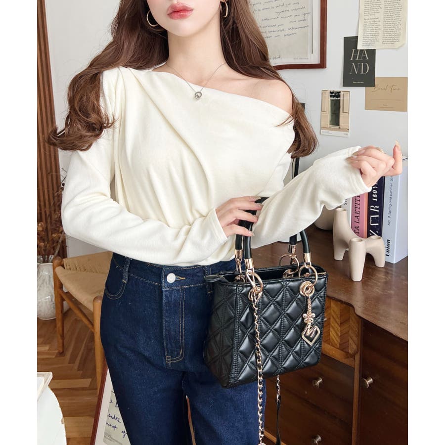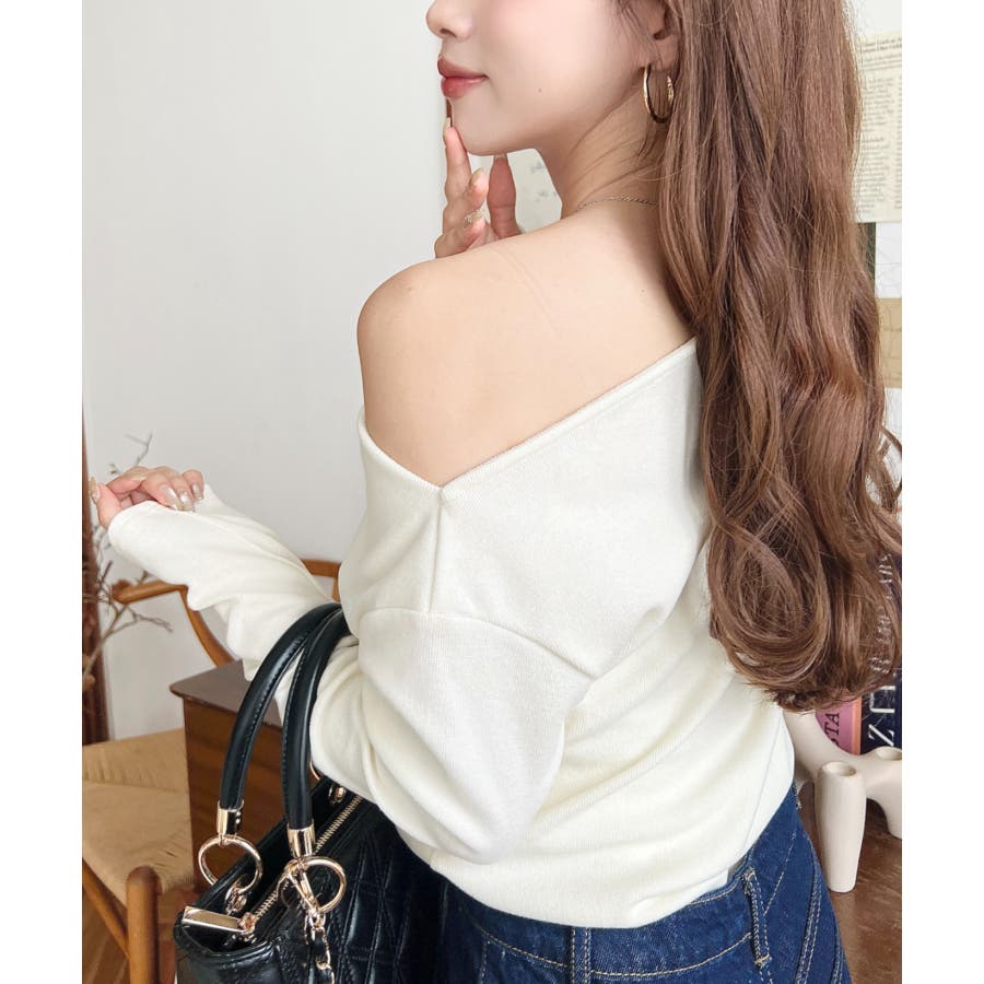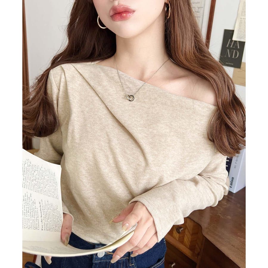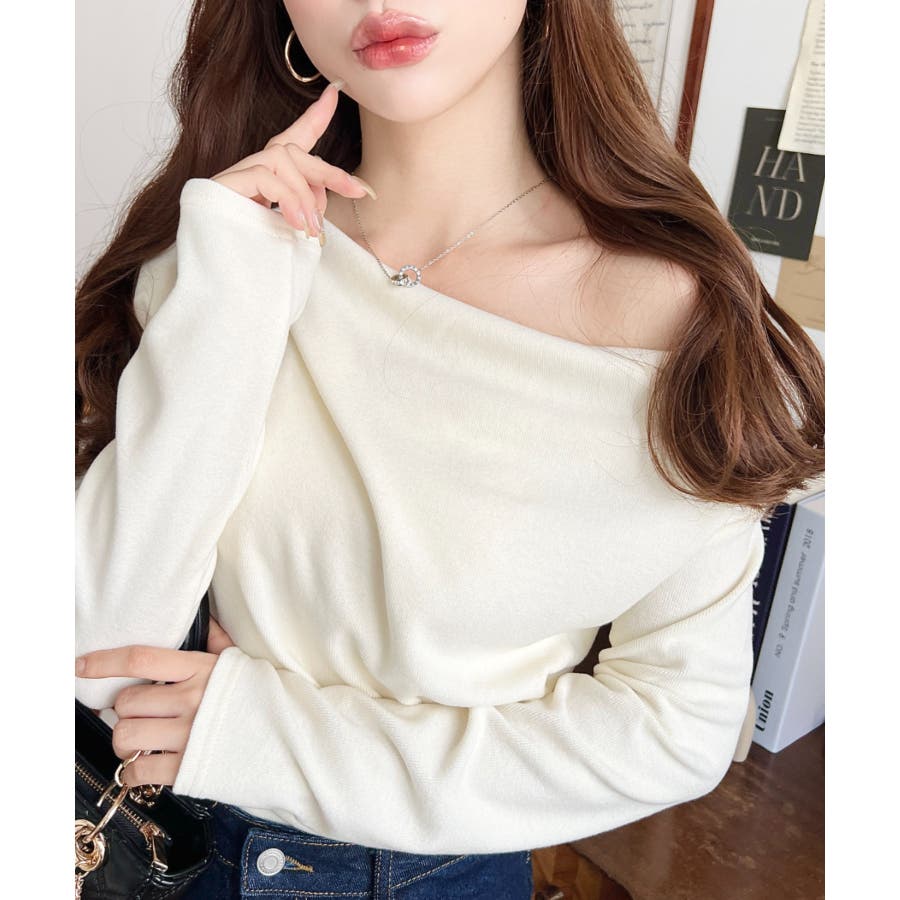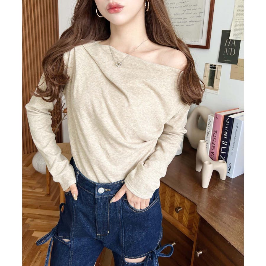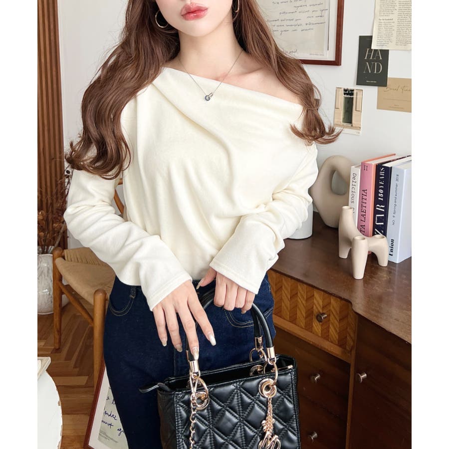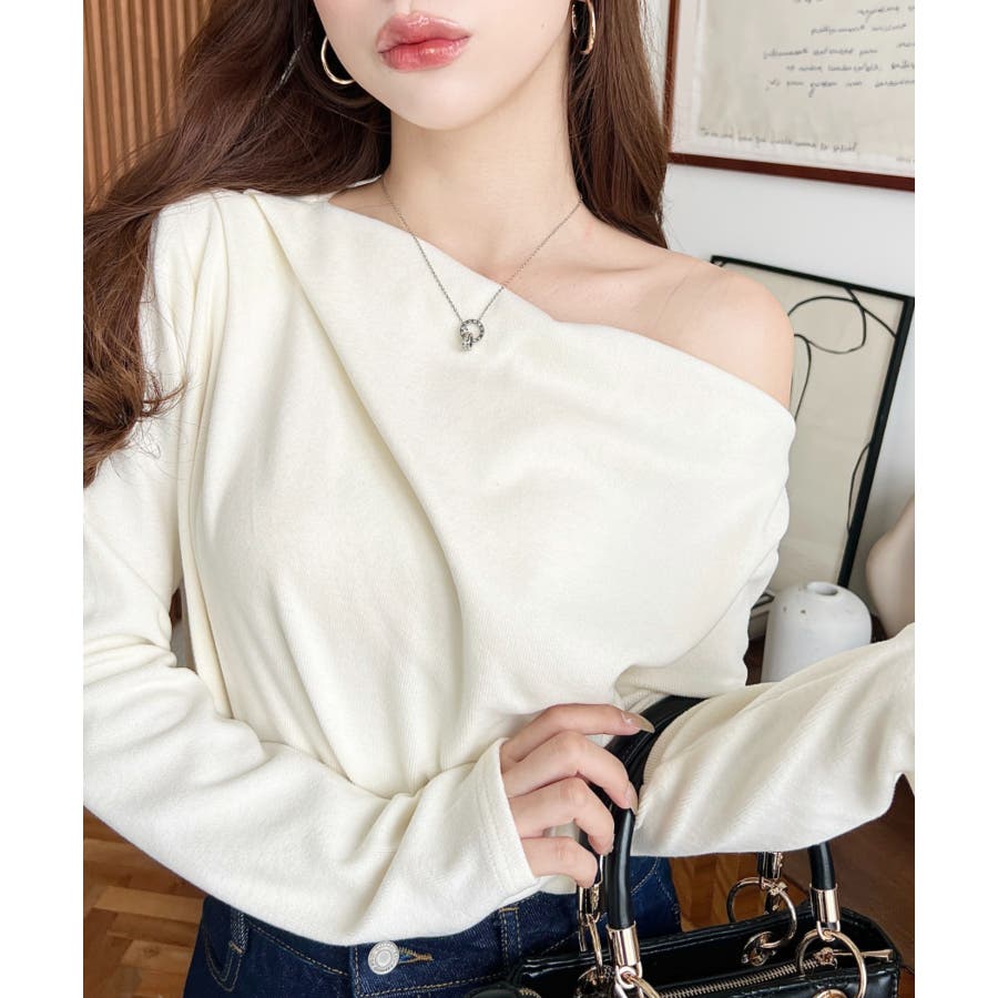 【一枚でフェミニンもカジュアルも楽しめる、ドレープが美しいオフショルニットソー♪】