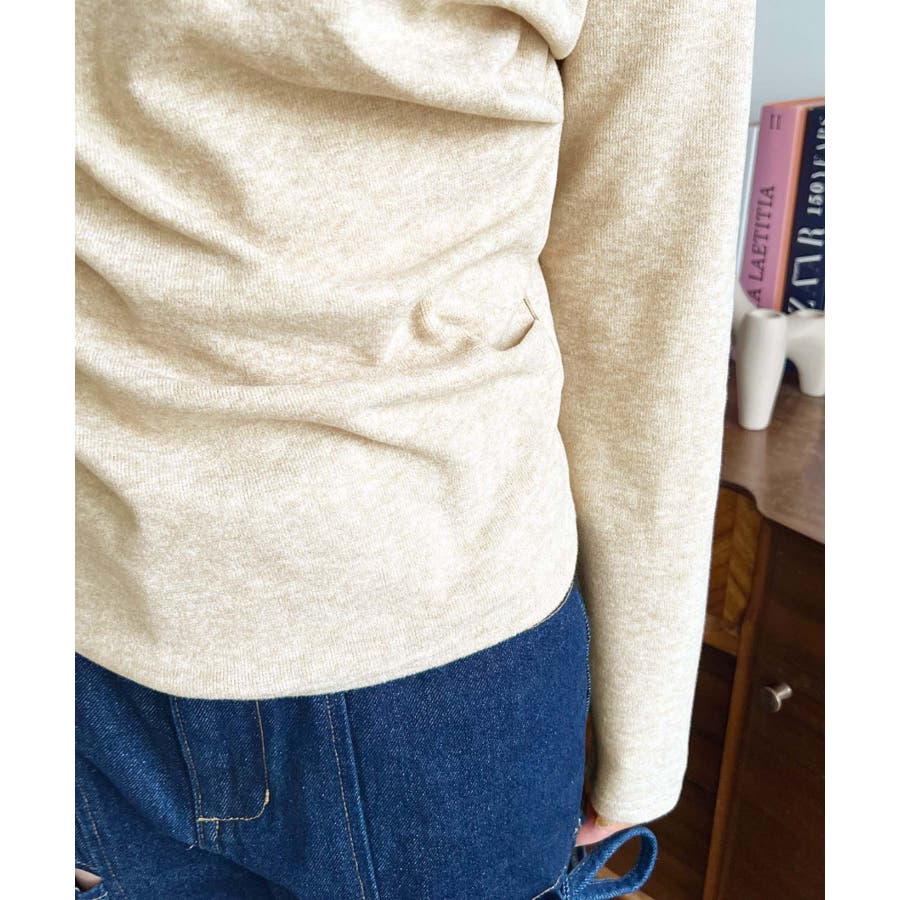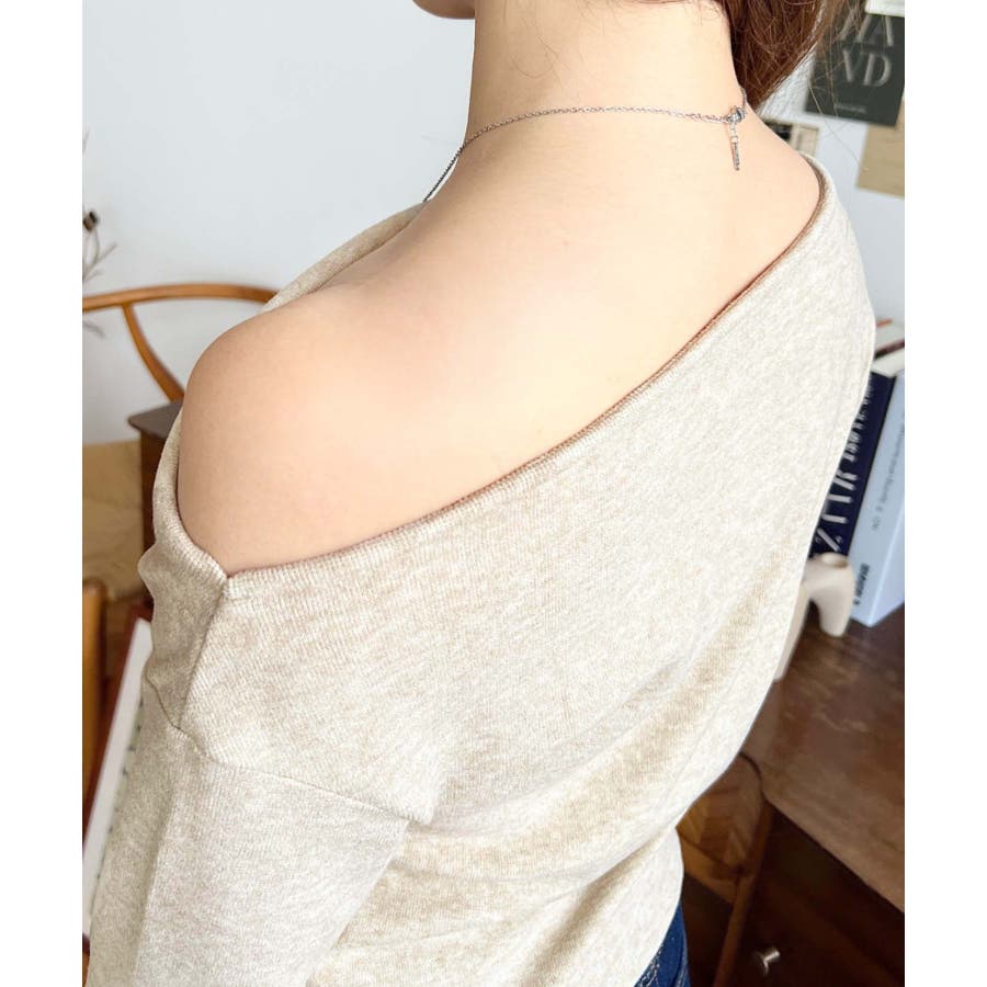 ・肩を大きく開けたオフショルダー仕様に、柔らかなニットソーの落ち感を活かしたドレープデザインが特徴のニットプルオーバー♪