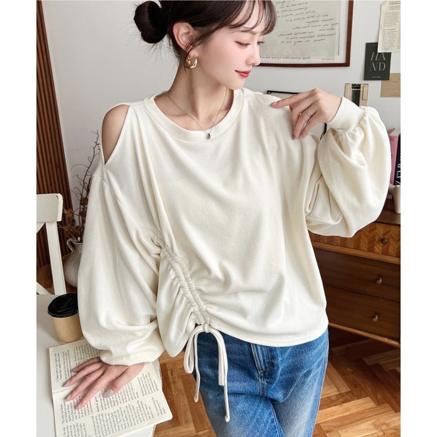 ・裾にドロストデザインを取り入れることで、シルエットを自分好みに調整でき肌見せをアレンジできます◎