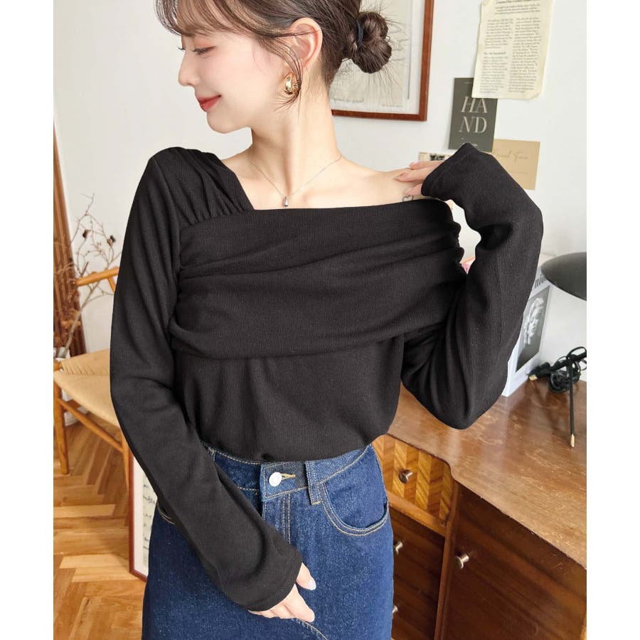・ジャケットやカーディガンの下に着ても、ドレープが美しく浮き立ちコーディネートにアクセントを添えてくれます♪