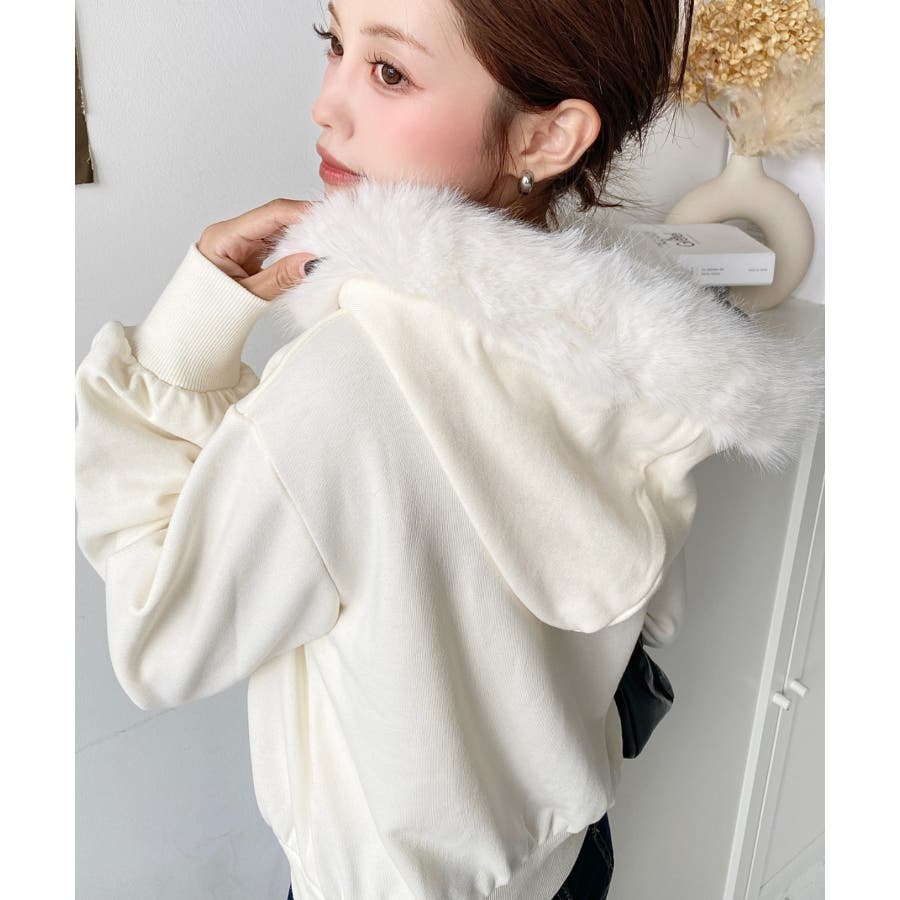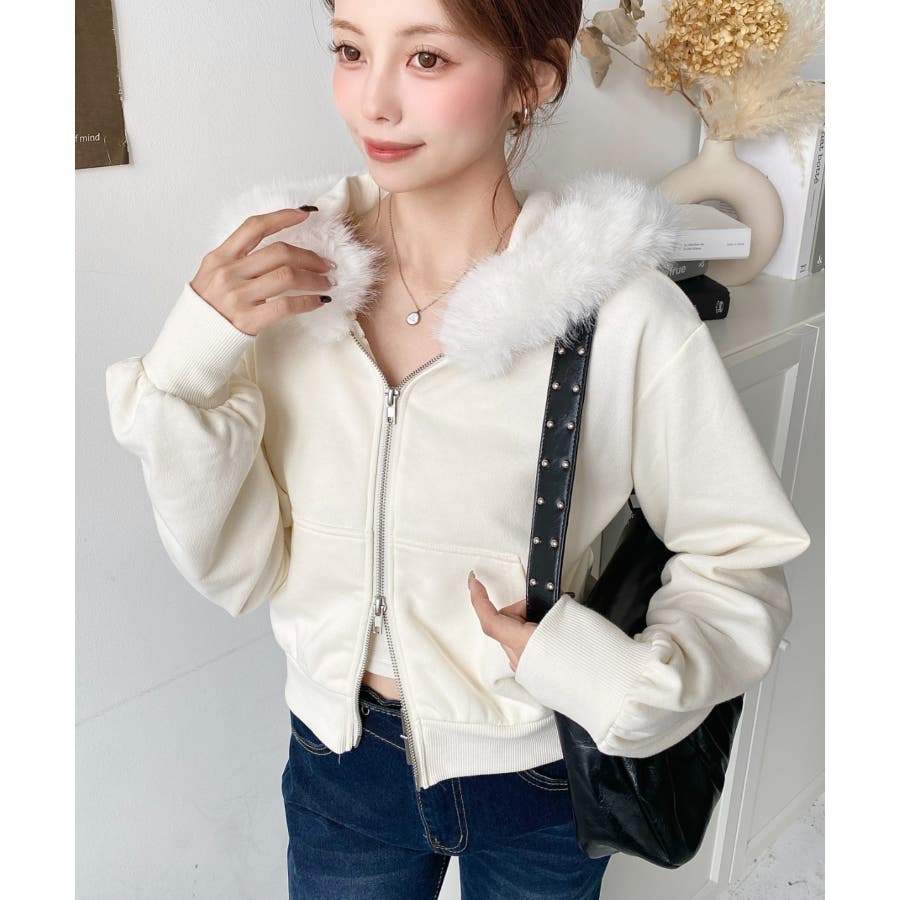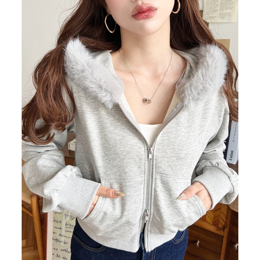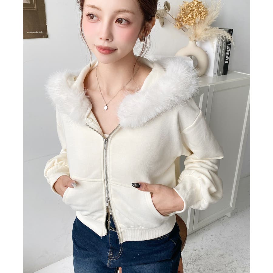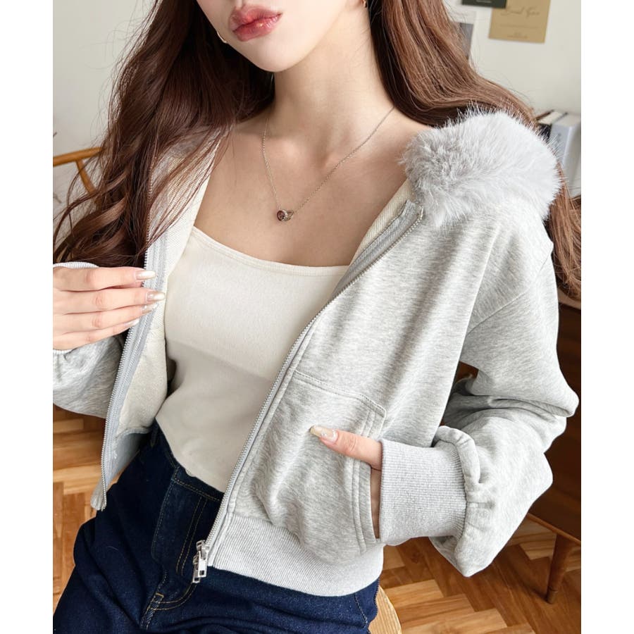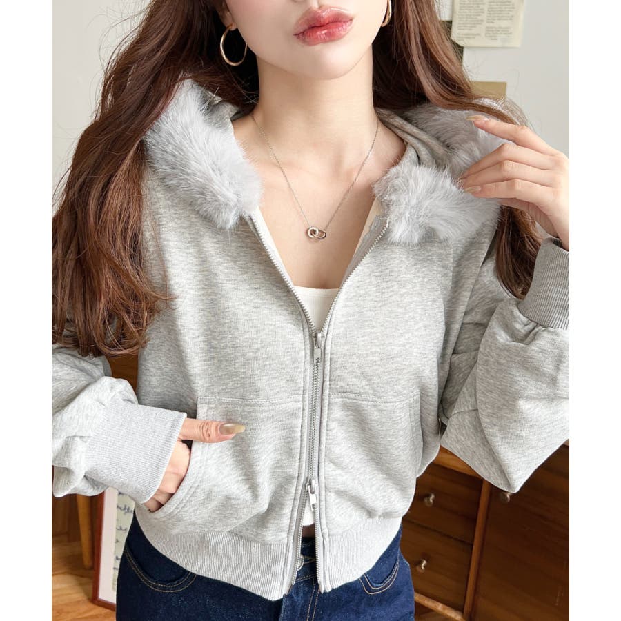 【ふんわりファーが季節感たっぷりな旬のショート丈パーカー◎】