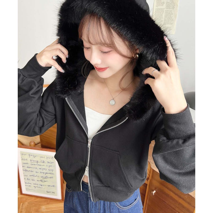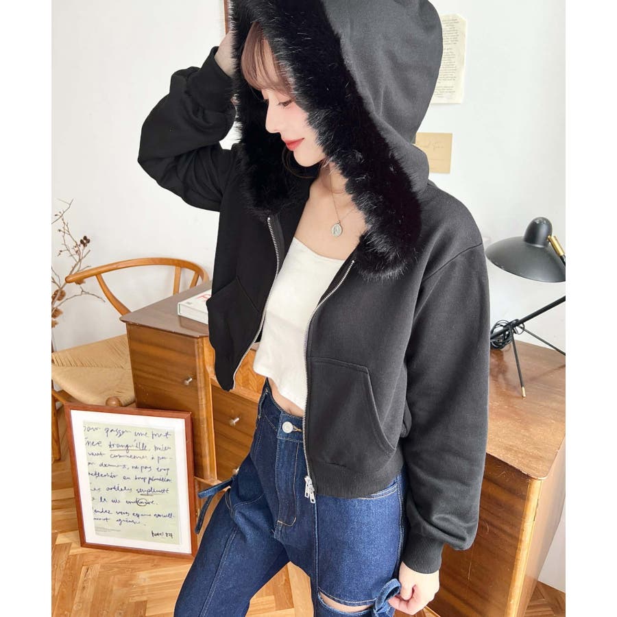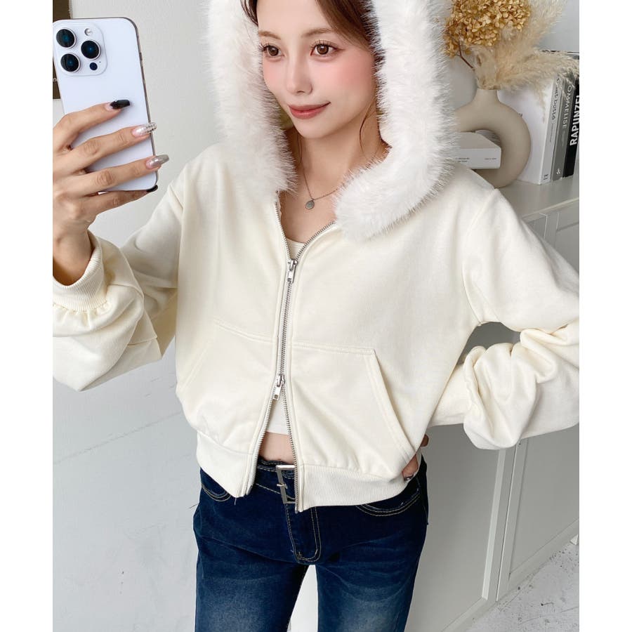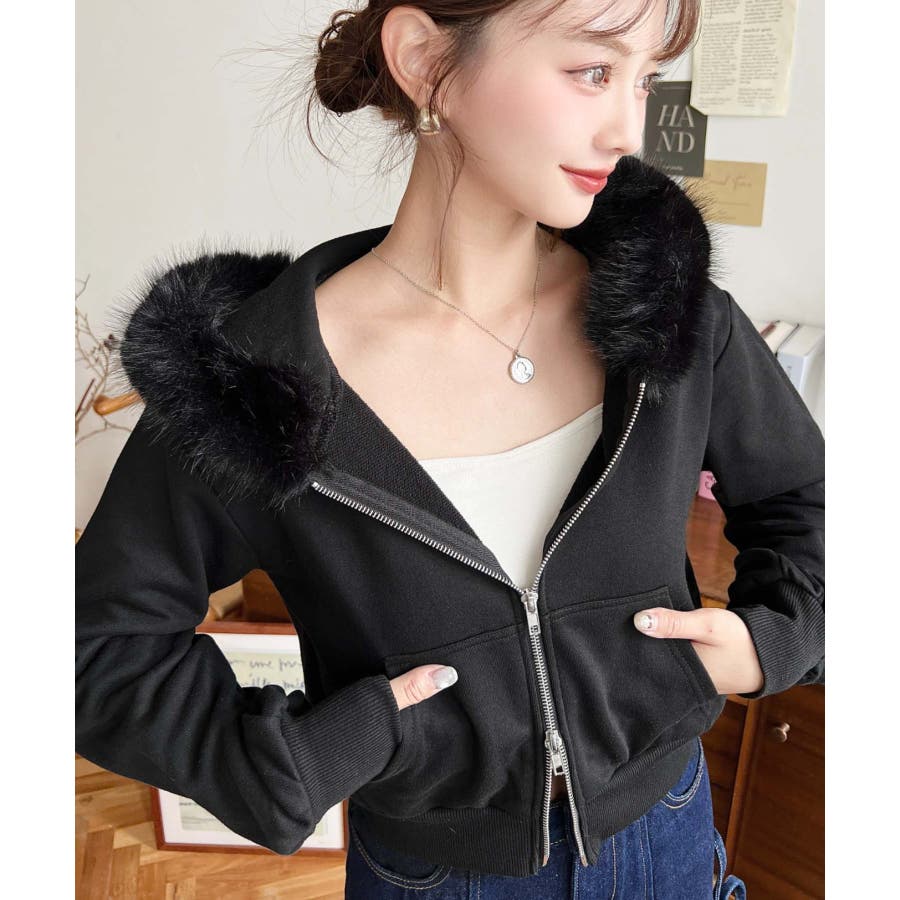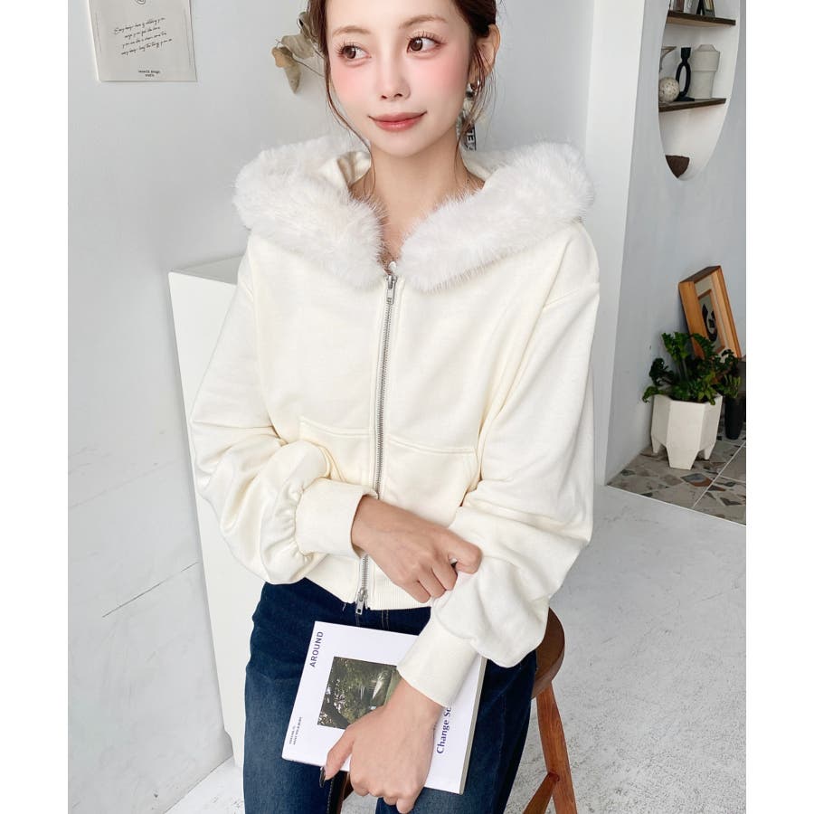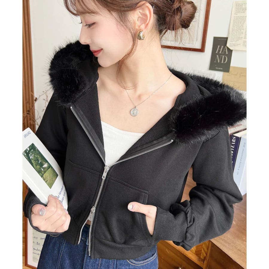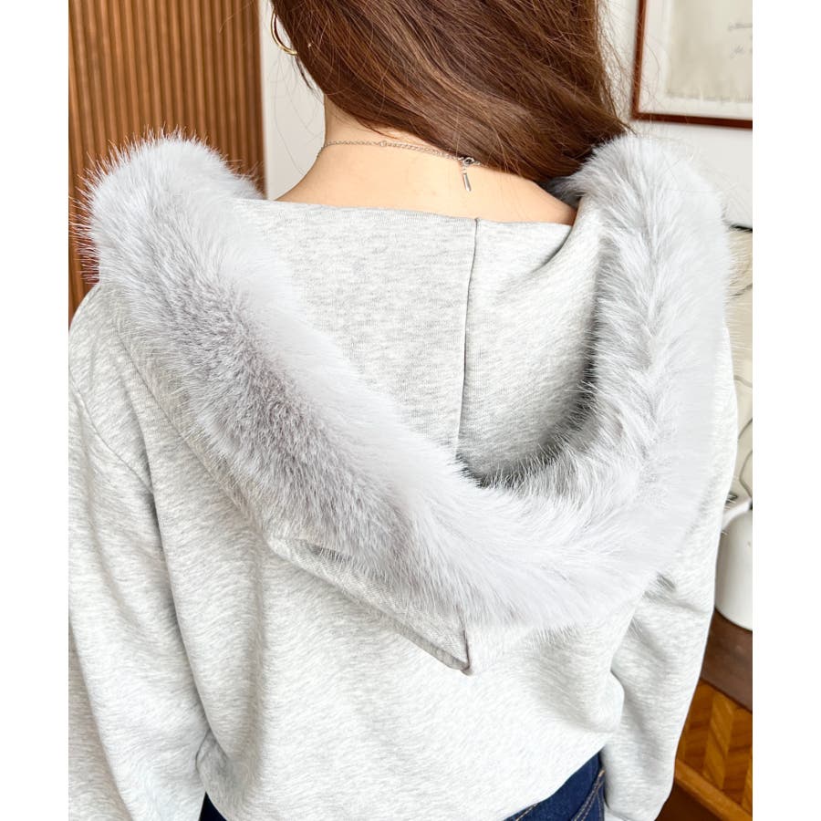 【ふんわりファーが季節感たっぷりな旬のショート丈パーカー◎】