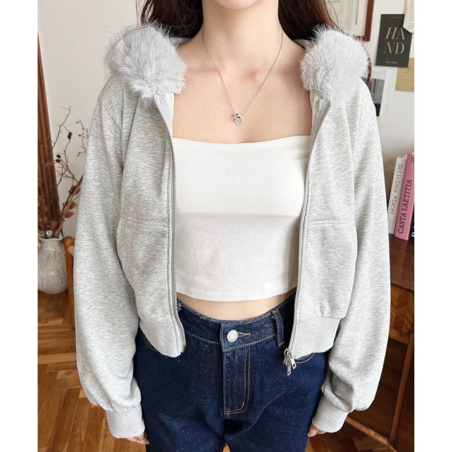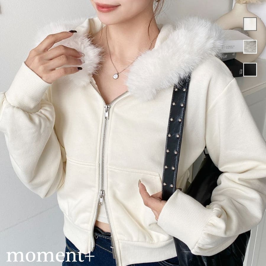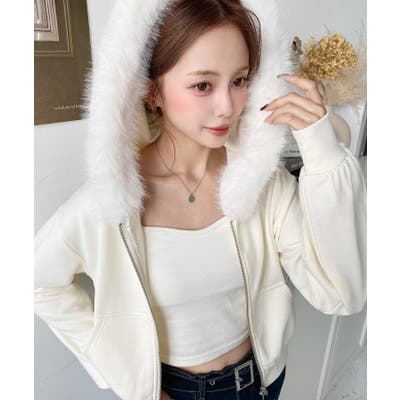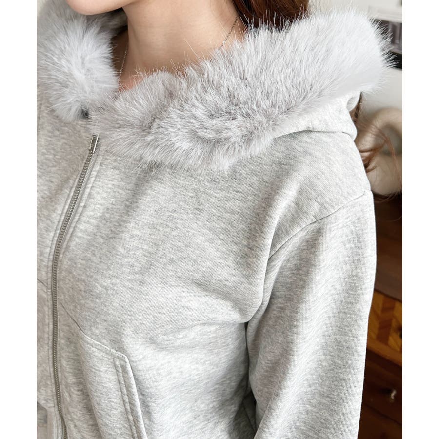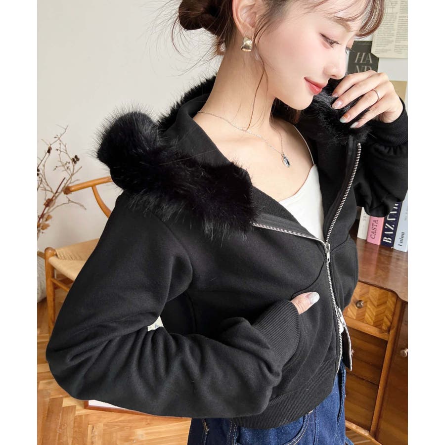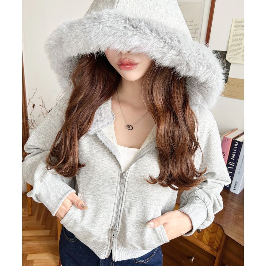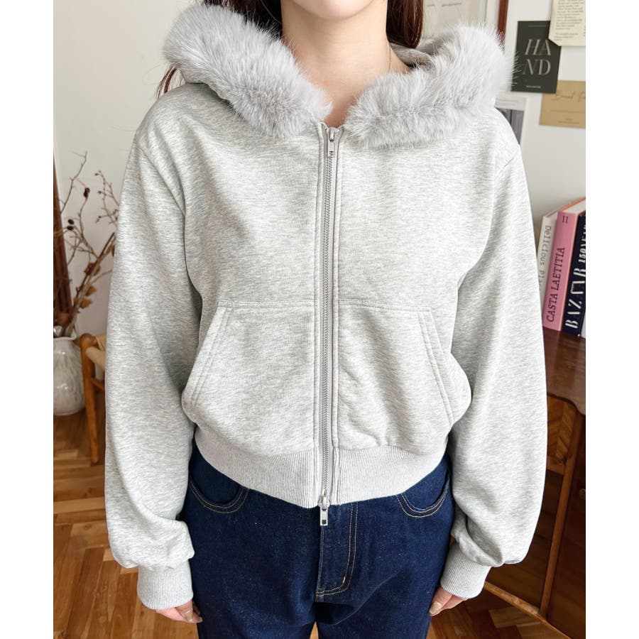 【ふんわりファーが季節感たっぷりな旬のショート丈パーカー◎】