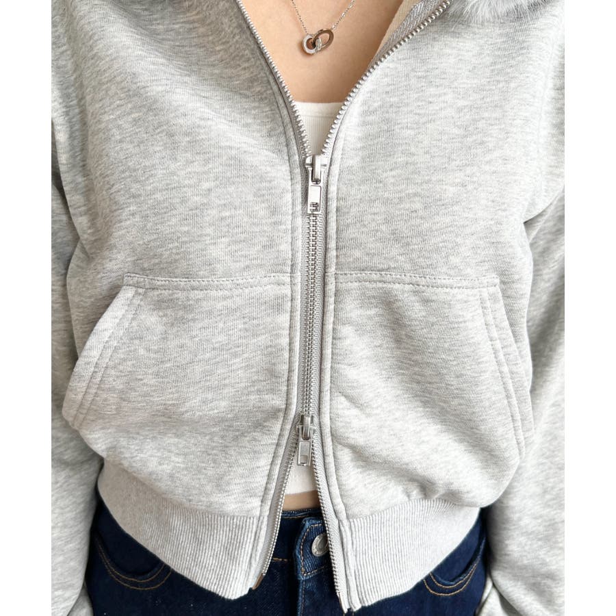 ファーフードダブルジップショートパーカー