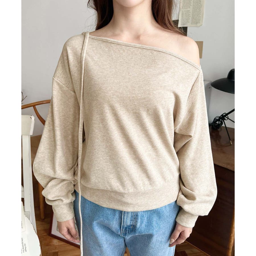 【アシンメトリー×リボンで魅せるワンショルダーニットプルオーバー☆】