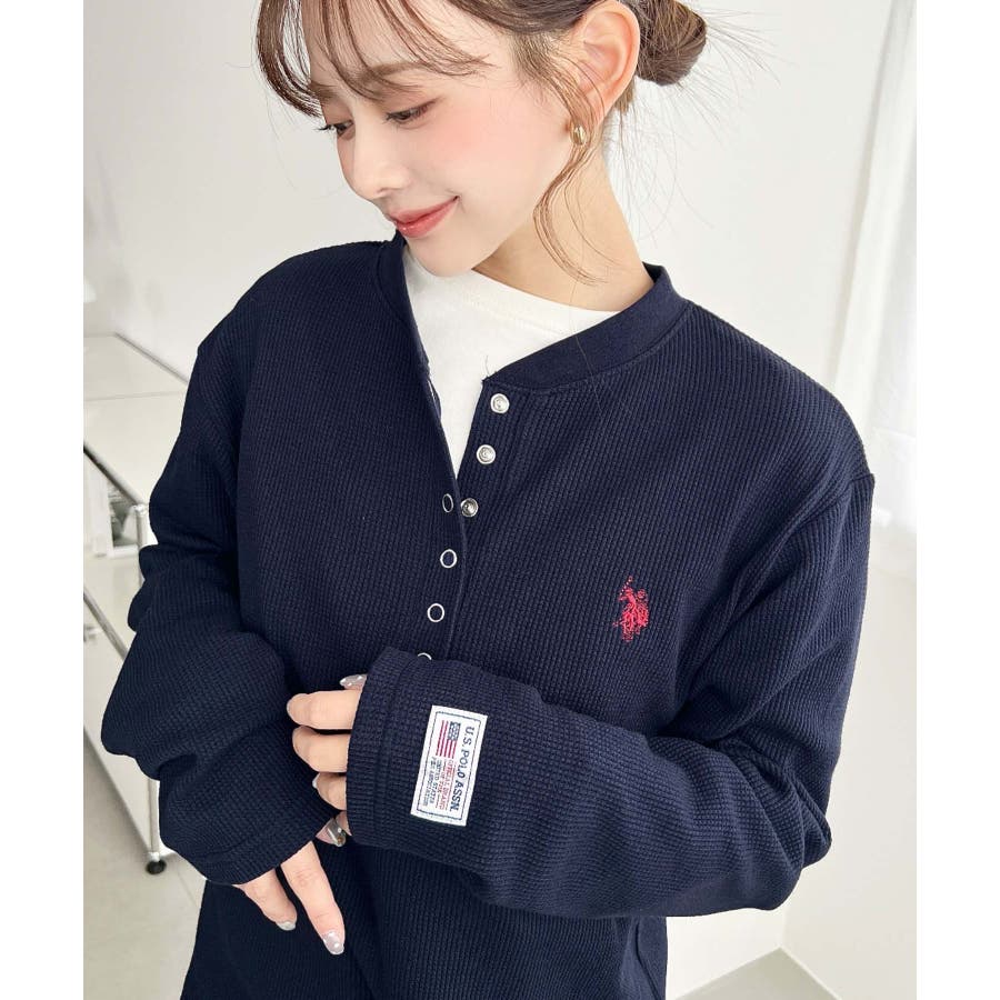 ・U.S.POLO ASSN.らしいワンポイント刺繍を胸元にあしらい、シンプルながらもブランド感をさりげなく楽しめる長袖ワッフルヘンリーネックプルオーバー。