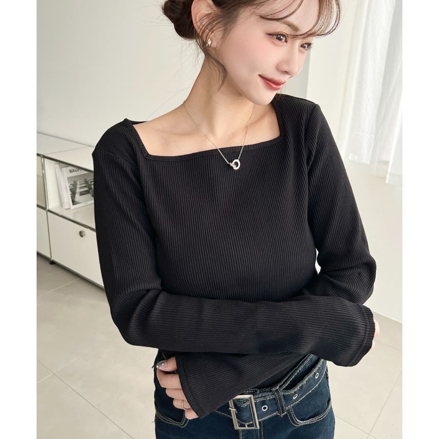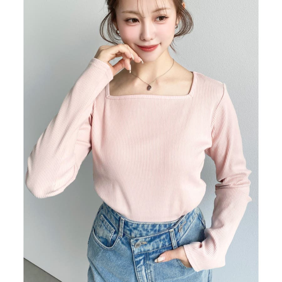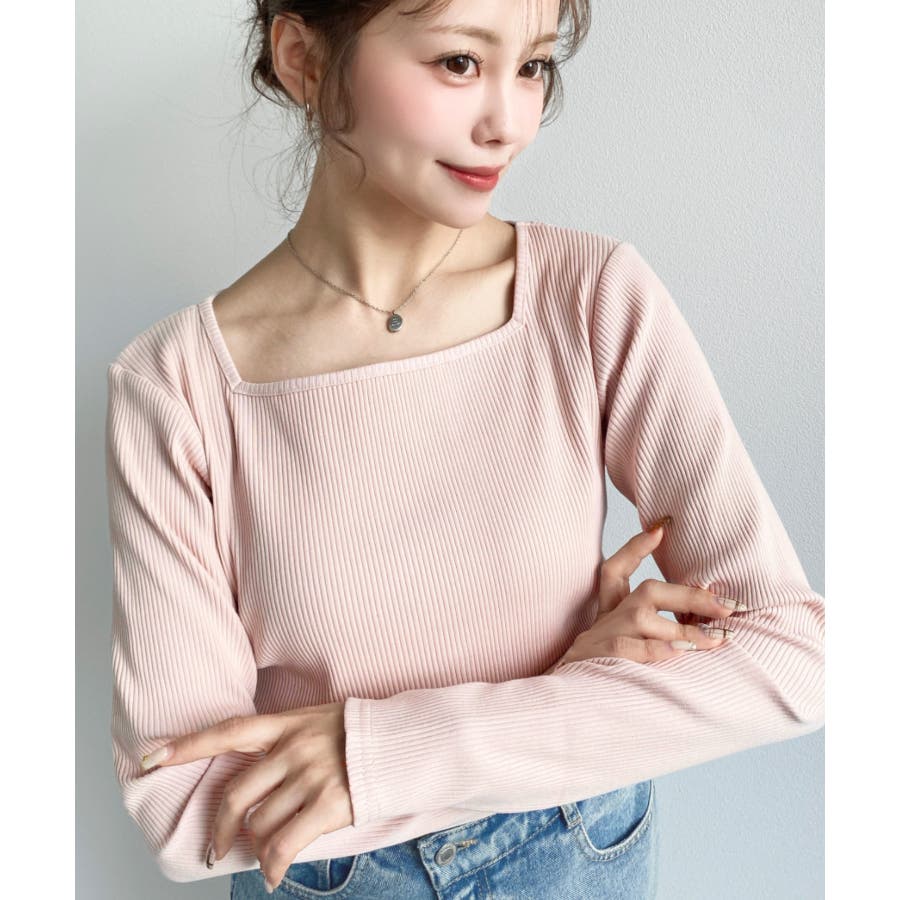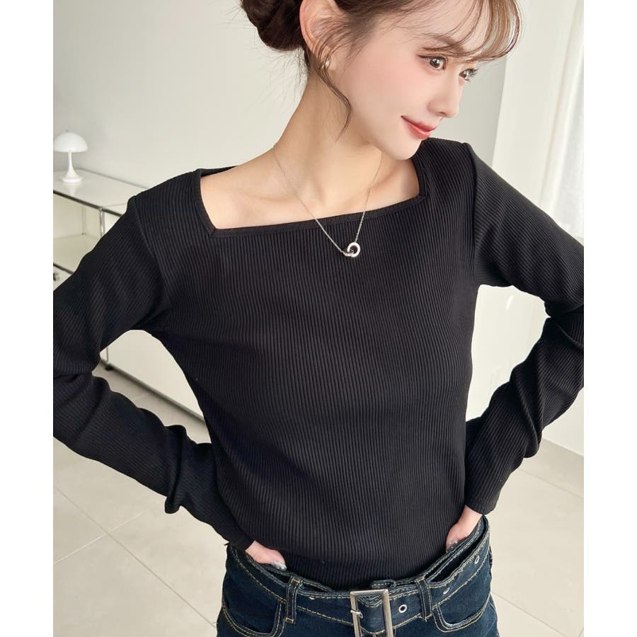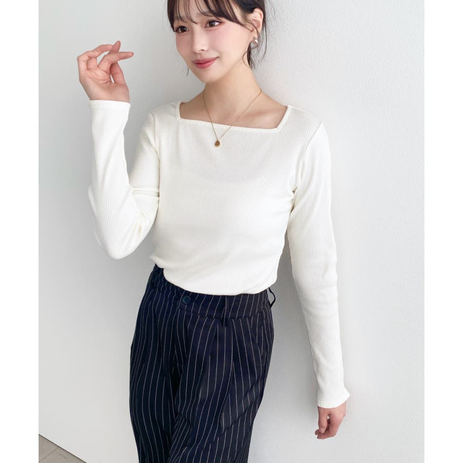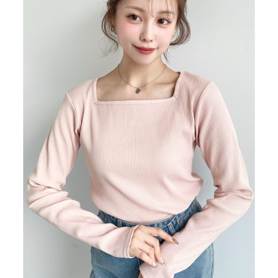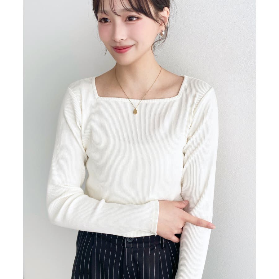 ・スクエアネックがデコルテラインを美しく引き立て、顔まわりをすっきりと見せてくれる長袖リブトップス◎