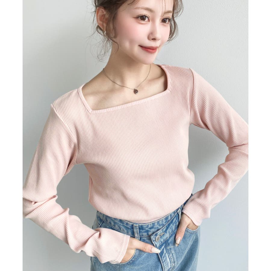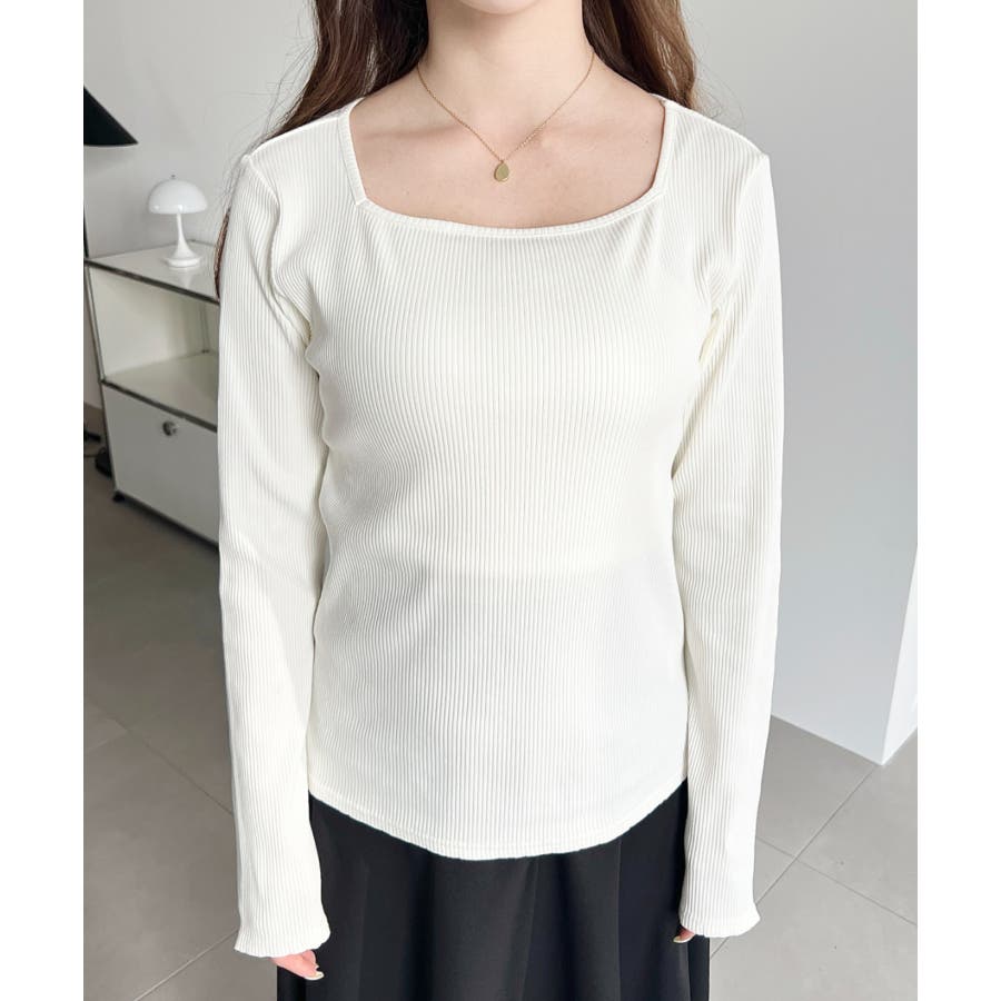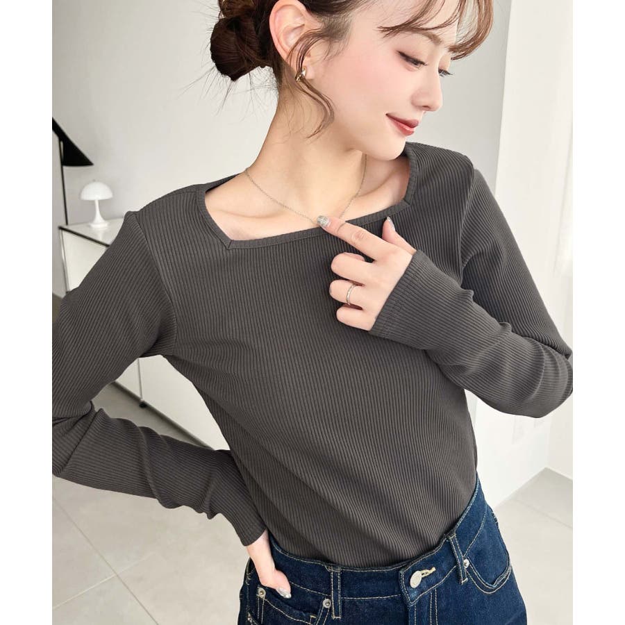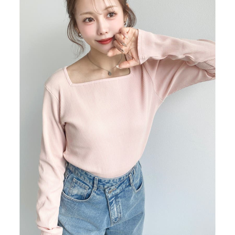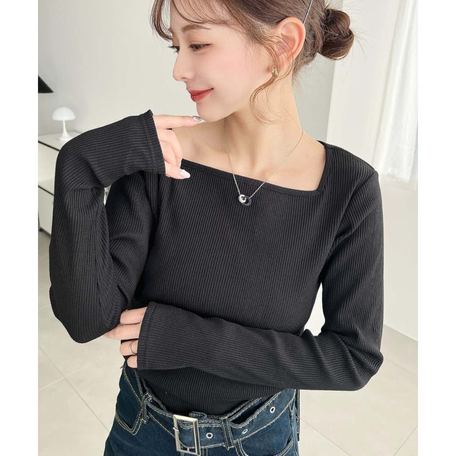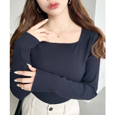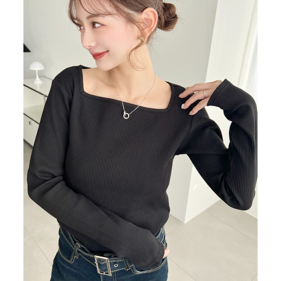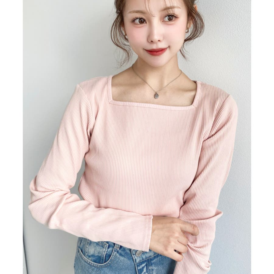 ・スクエアネックがデコルテラインを美しく引き立て、顔まわりをすっきりと見せてくれる長袖リブトップス◎