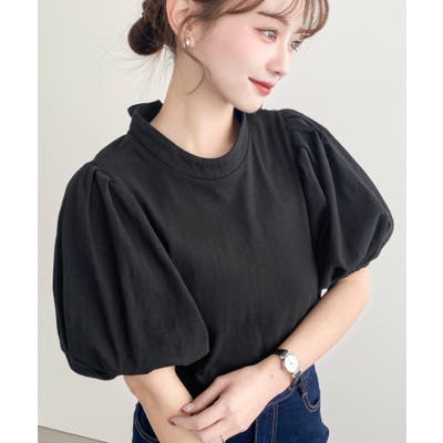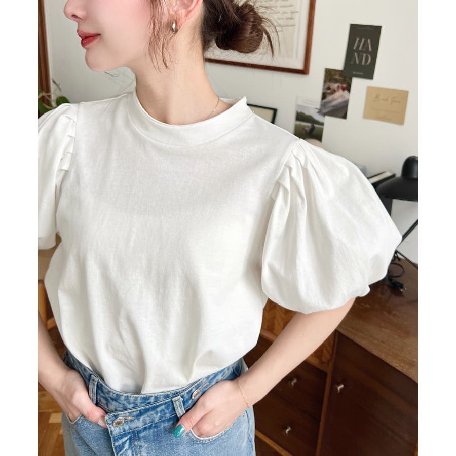 【大人カジュアルに甘さをプラス♪スタンドカラーパフスリーブtee】